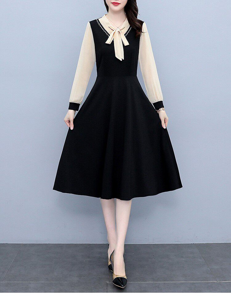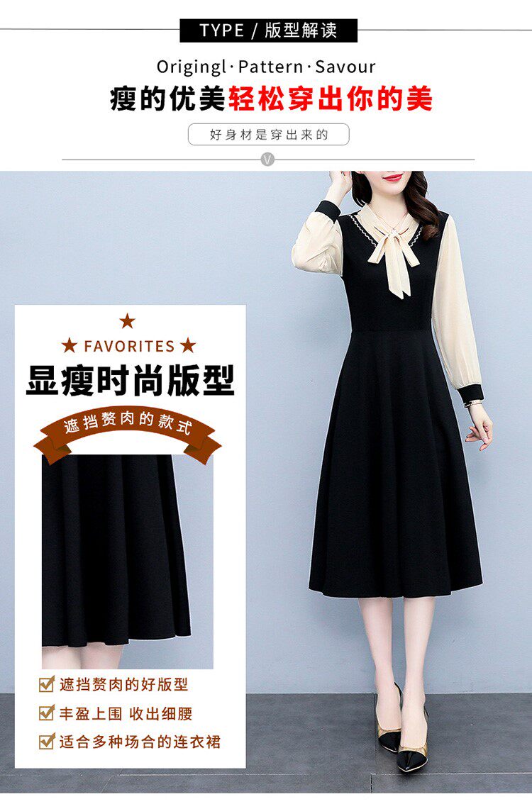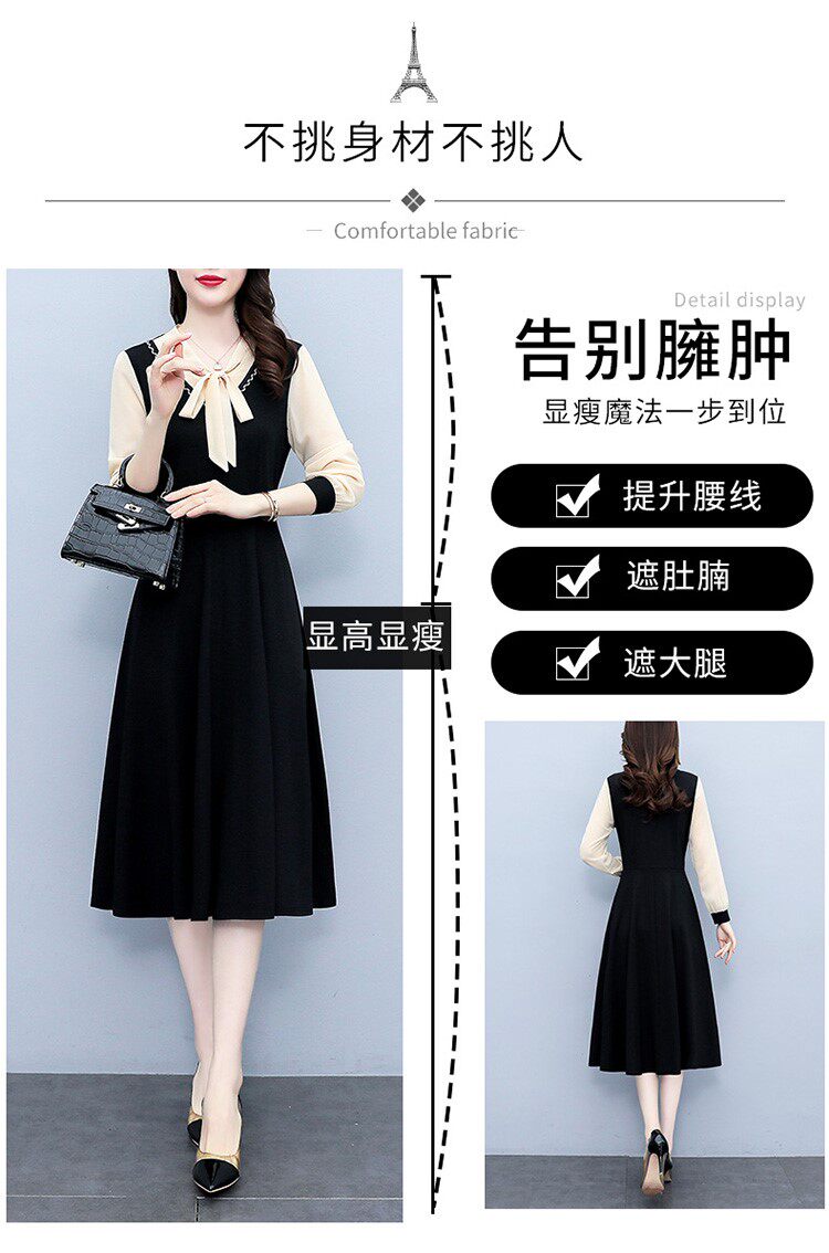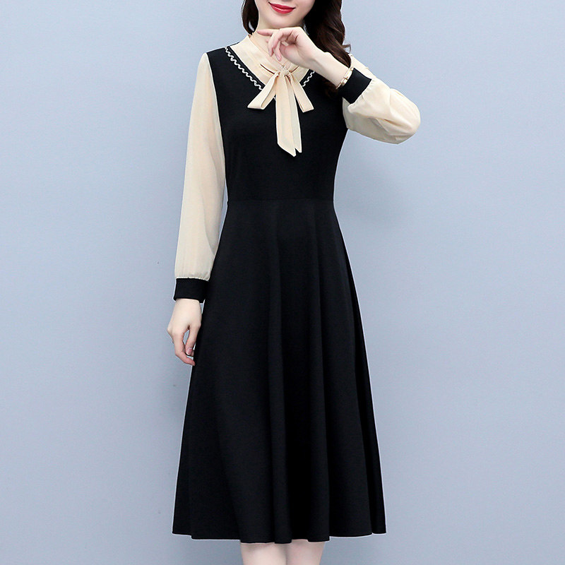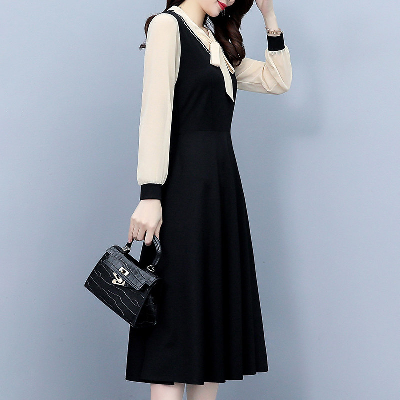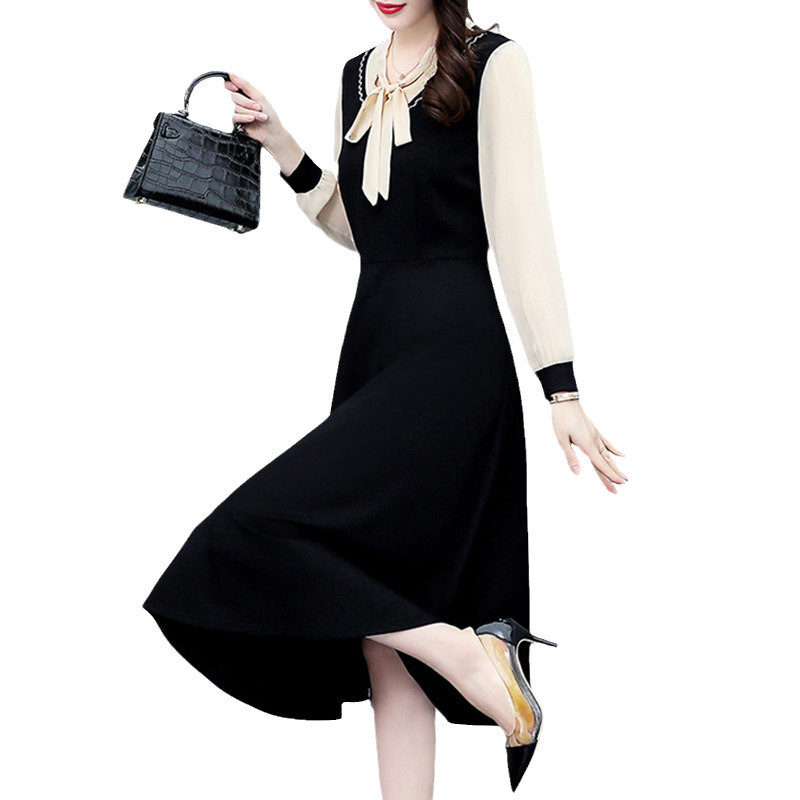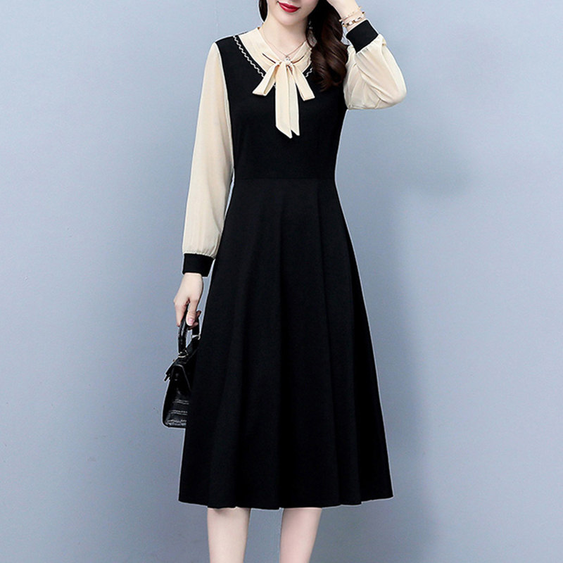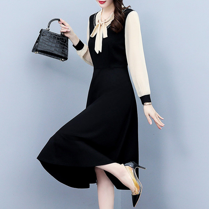 Весеннее осеннее платье, длинная юбка, коллекция 2023, большой размер, подходит для подростков, в западном стиле, по фигуре, средней длины