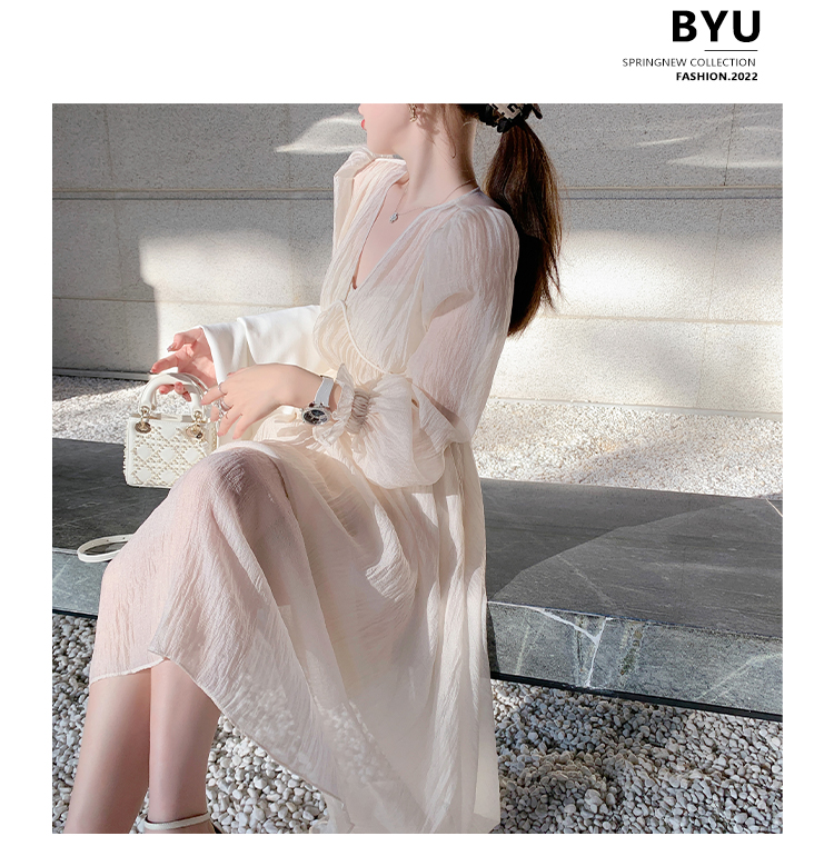 Весенний лонгслив, длинное платье, юбка, корсет, платье-комбинация, V-образный вырез, цвета шампанского