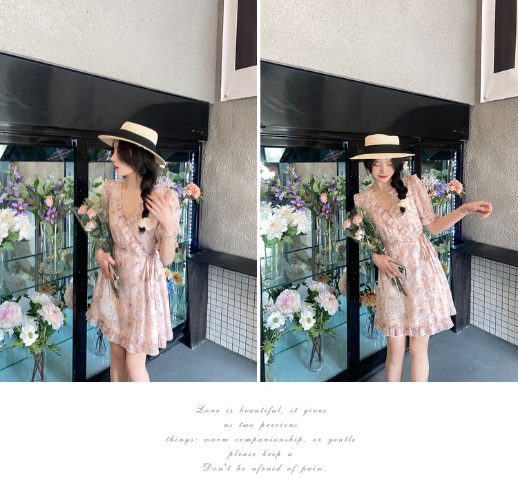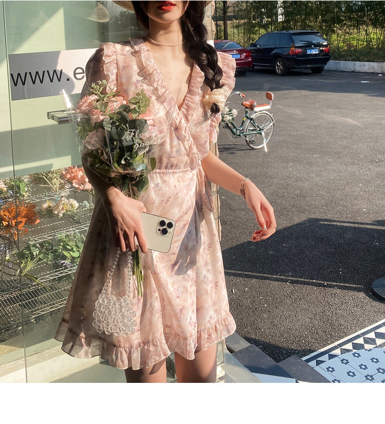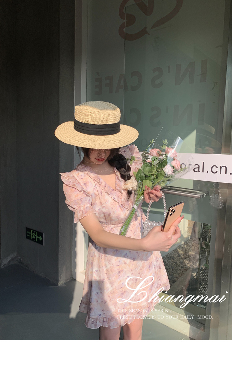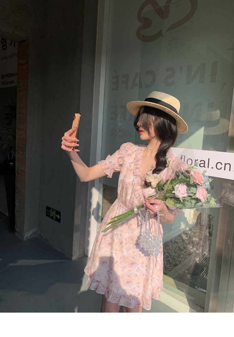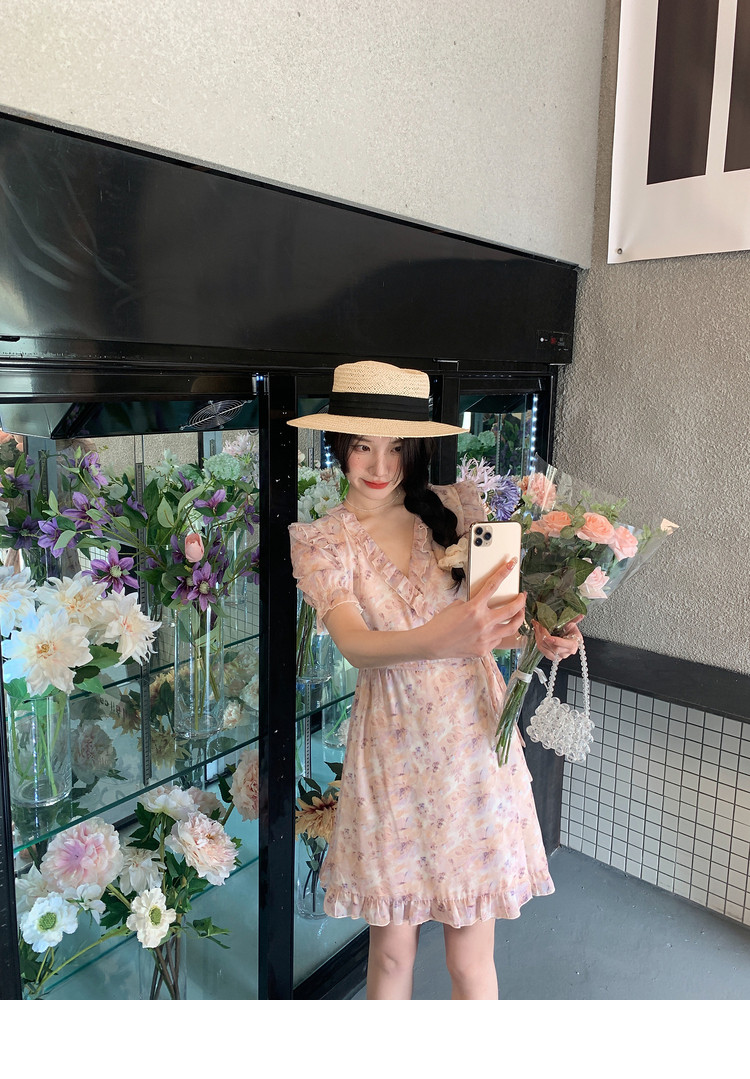 Летнее платье, в цветочек, V-образный вырез