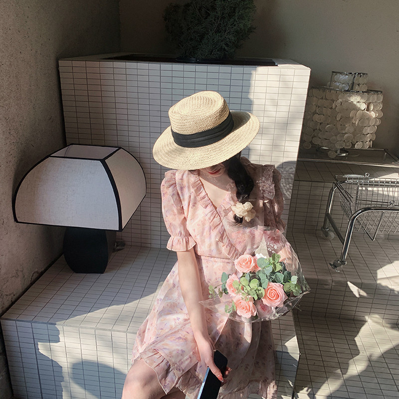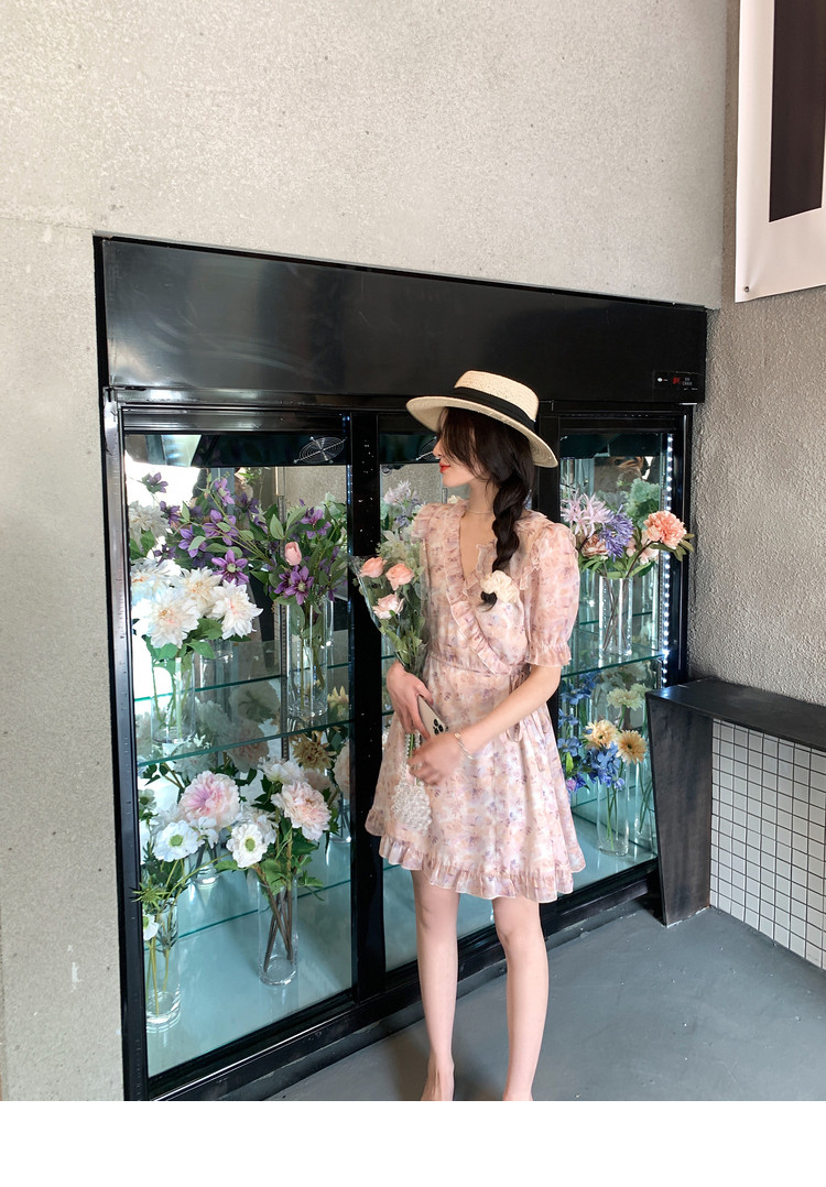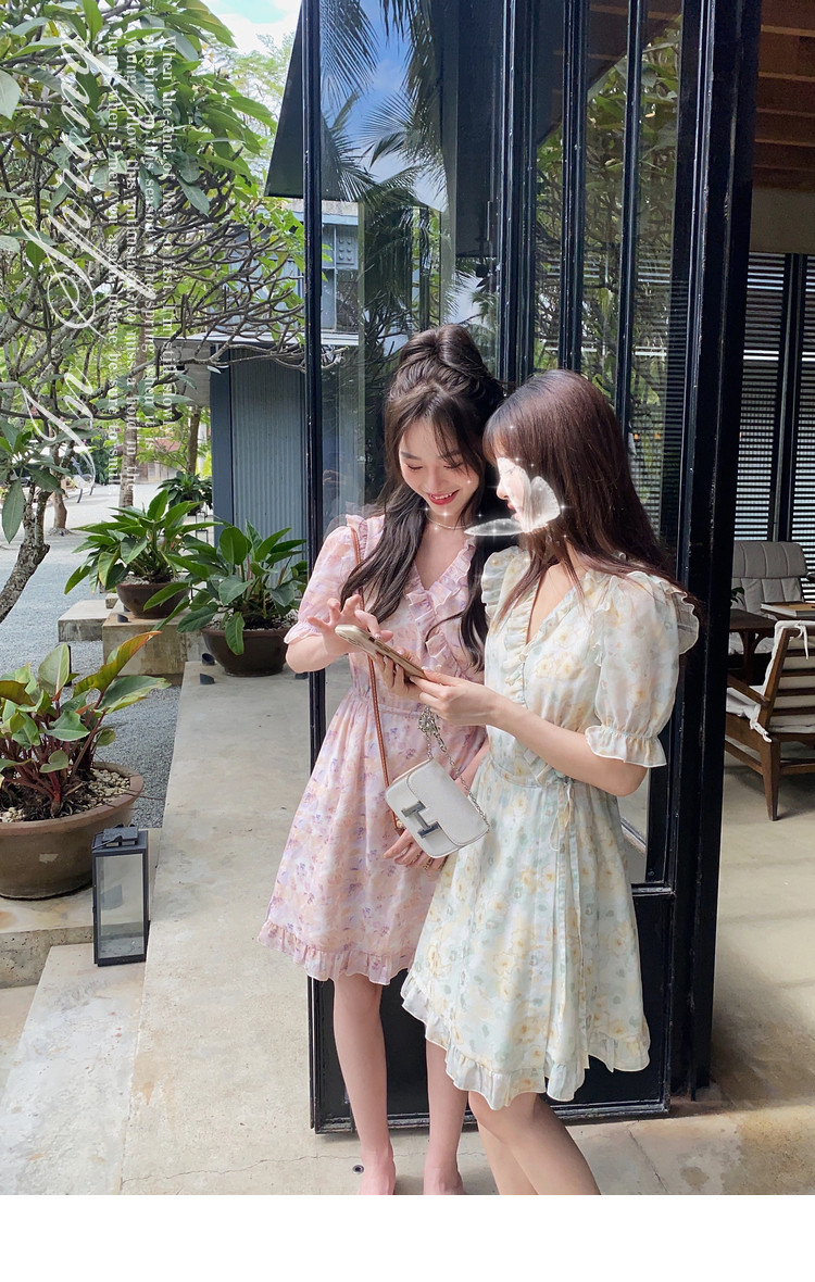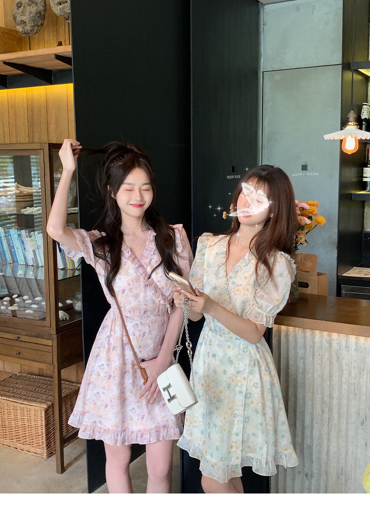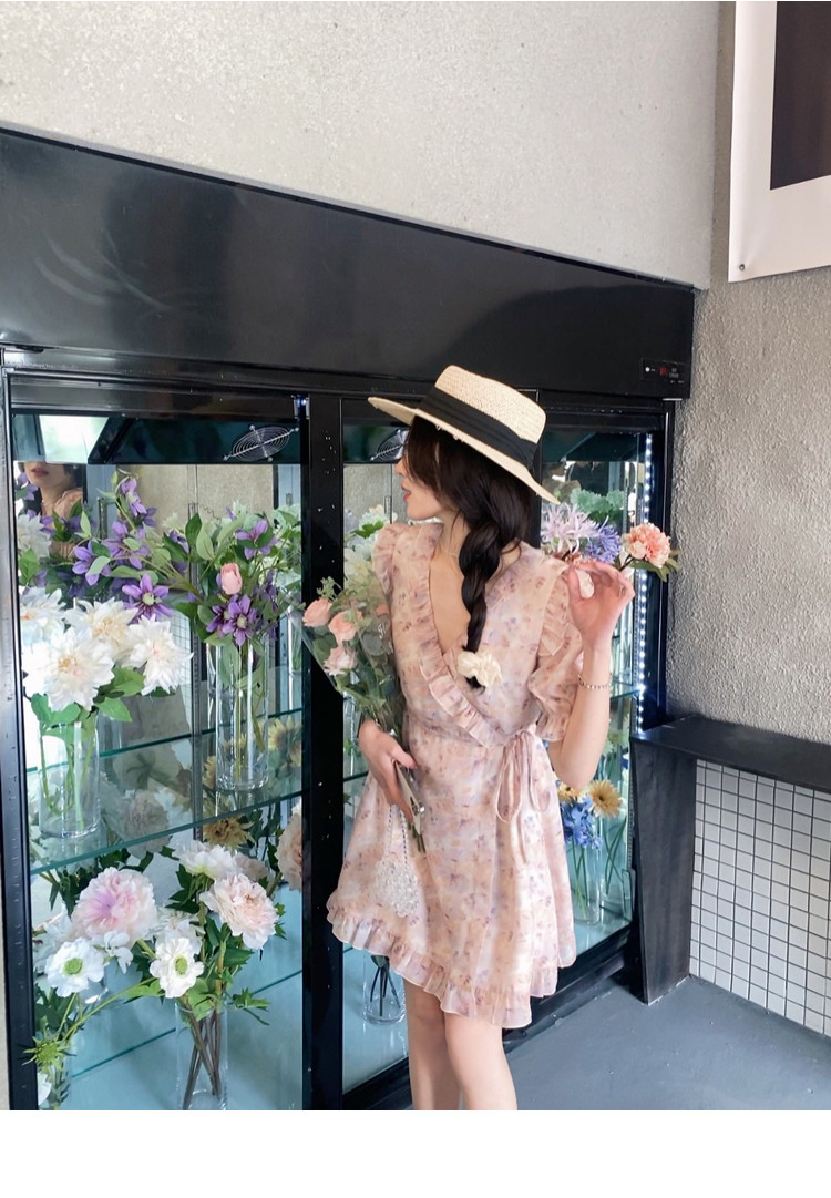 Летнее платье, в цветочек, V-образный вырез