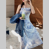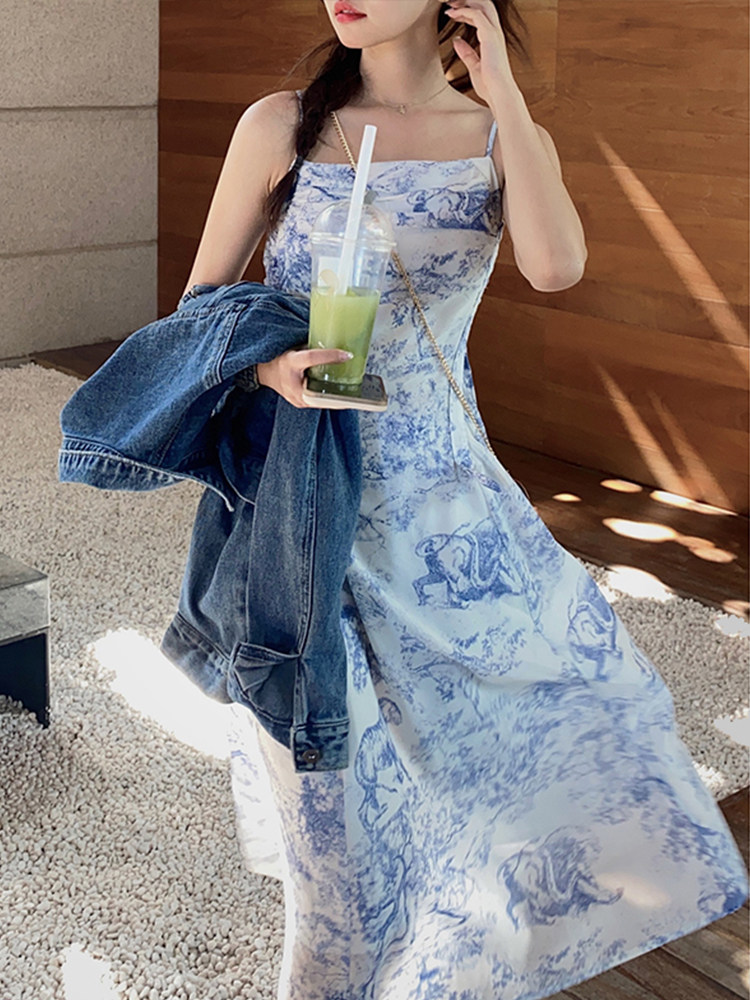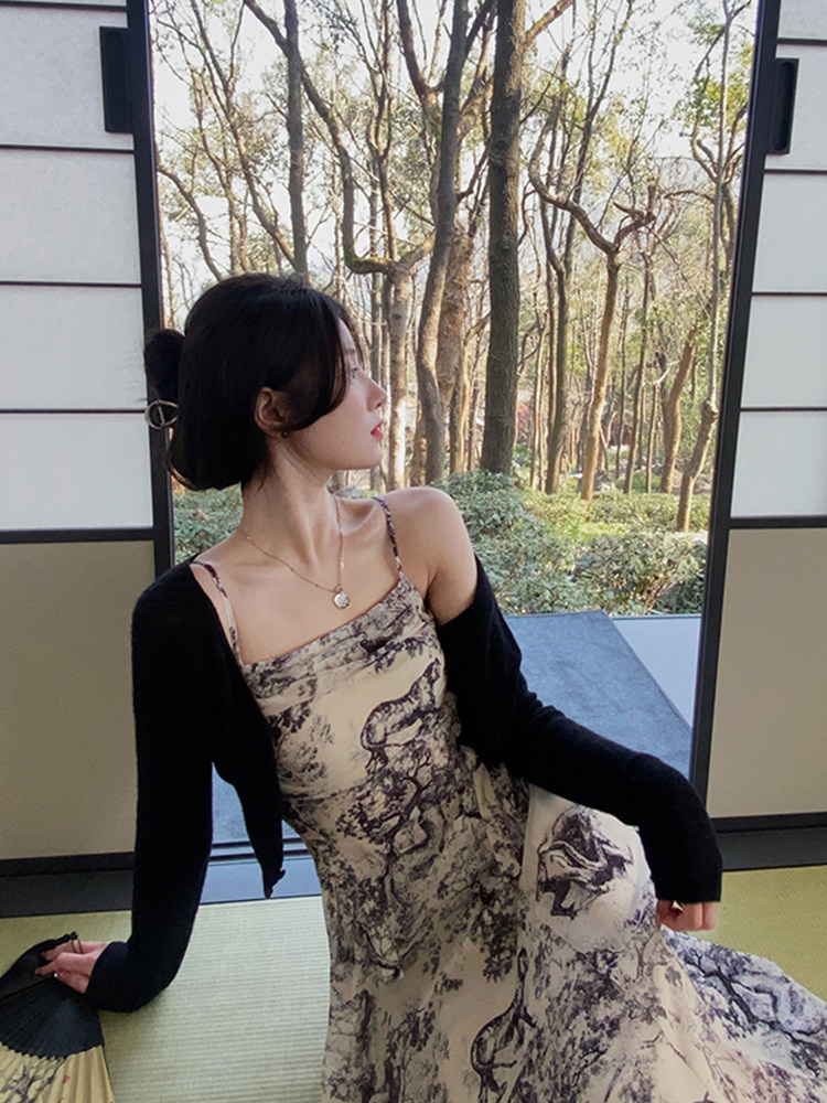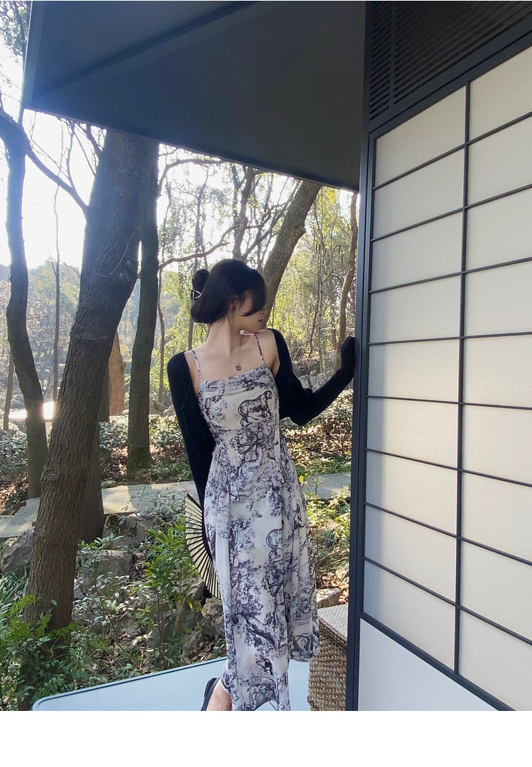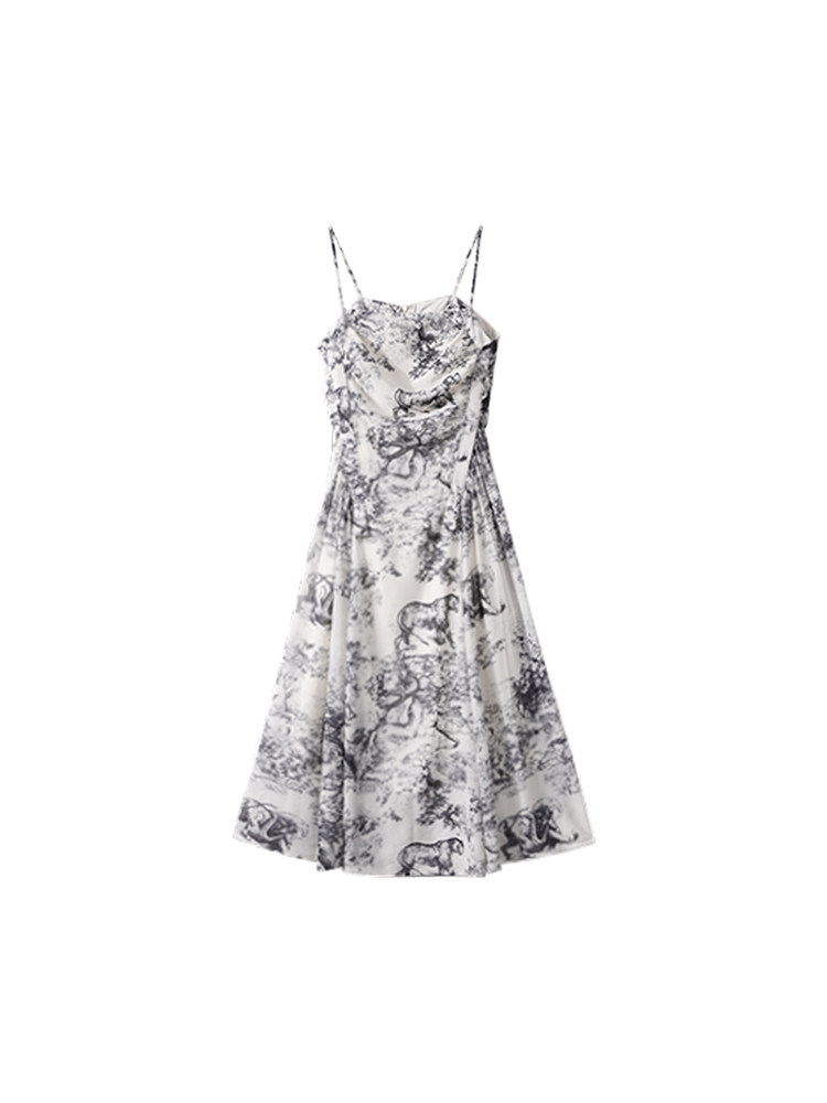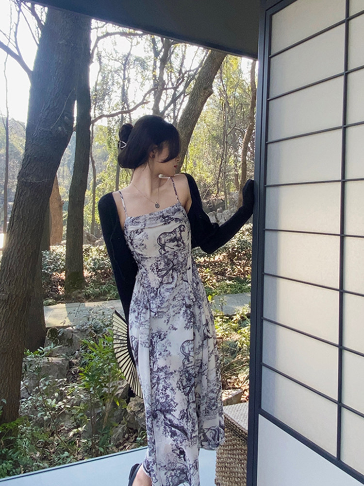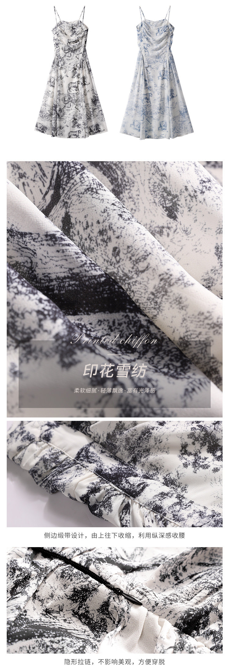 Дизайнерское платье-комбинация, юбка, шифоновое летнее платье, тренд сезона, шифоновое с принтом, А-силуэт