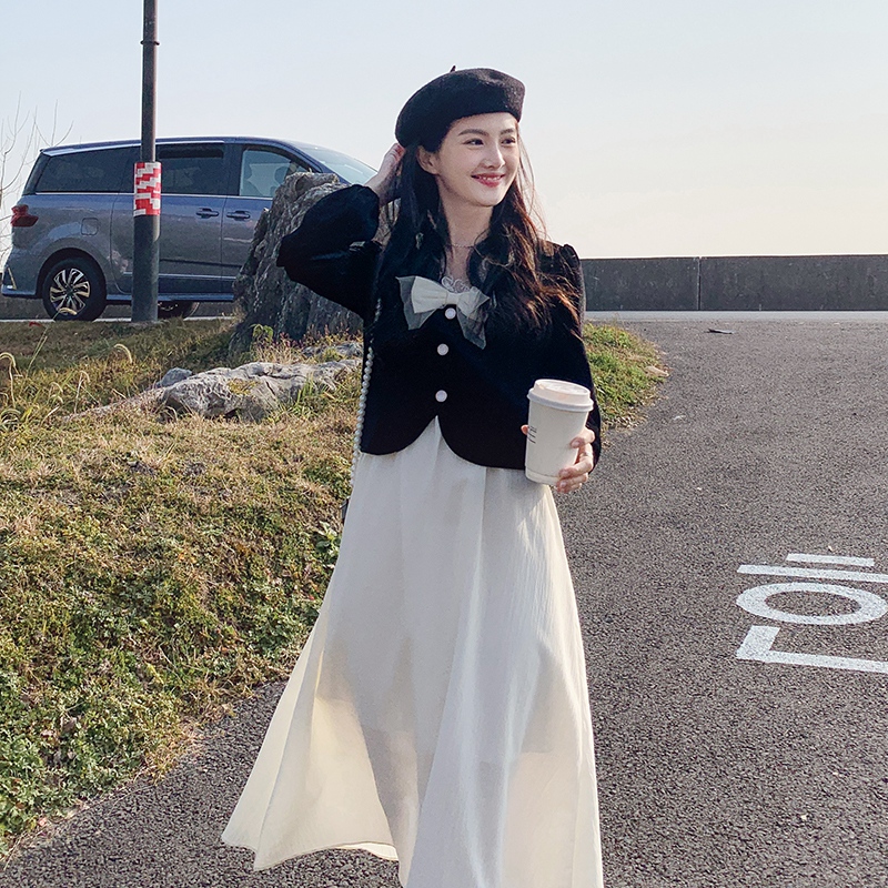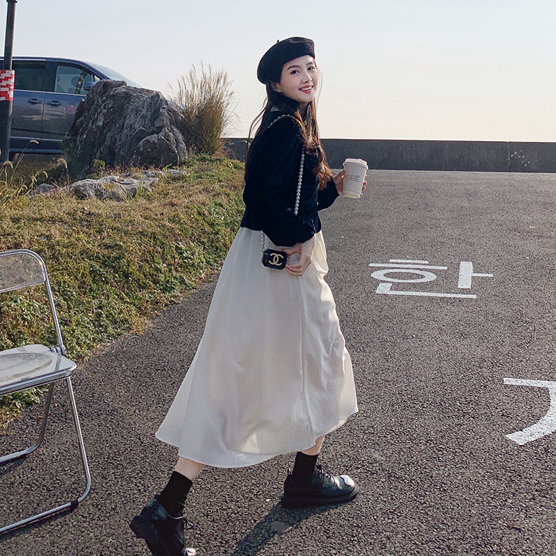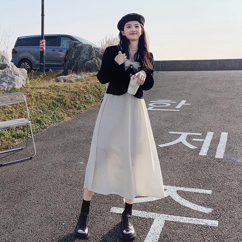 Длинное весеннее осеннее платье, комплект, юбка, средней длины, коллекция 2022, французский стиль, изысканный стиль