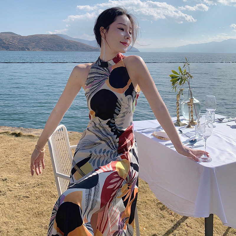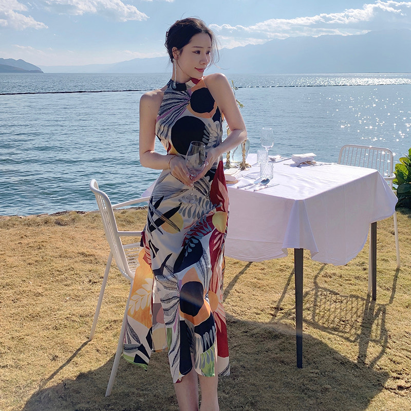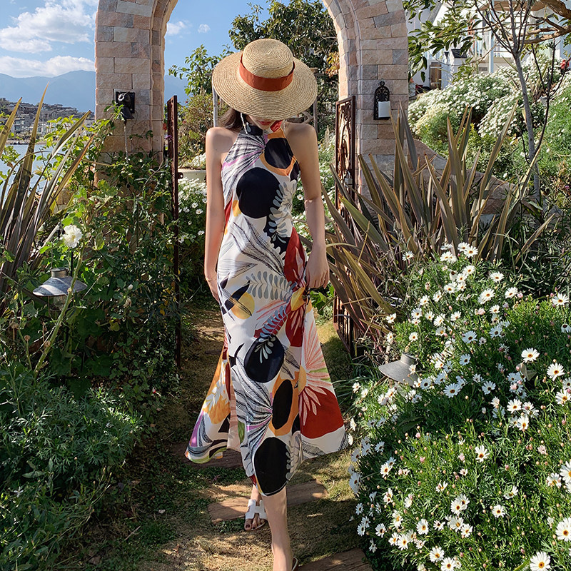 Ретро длинная юбка с бантиком, пляжное платье, с открытой спиной, французский стиль, А-силуэт