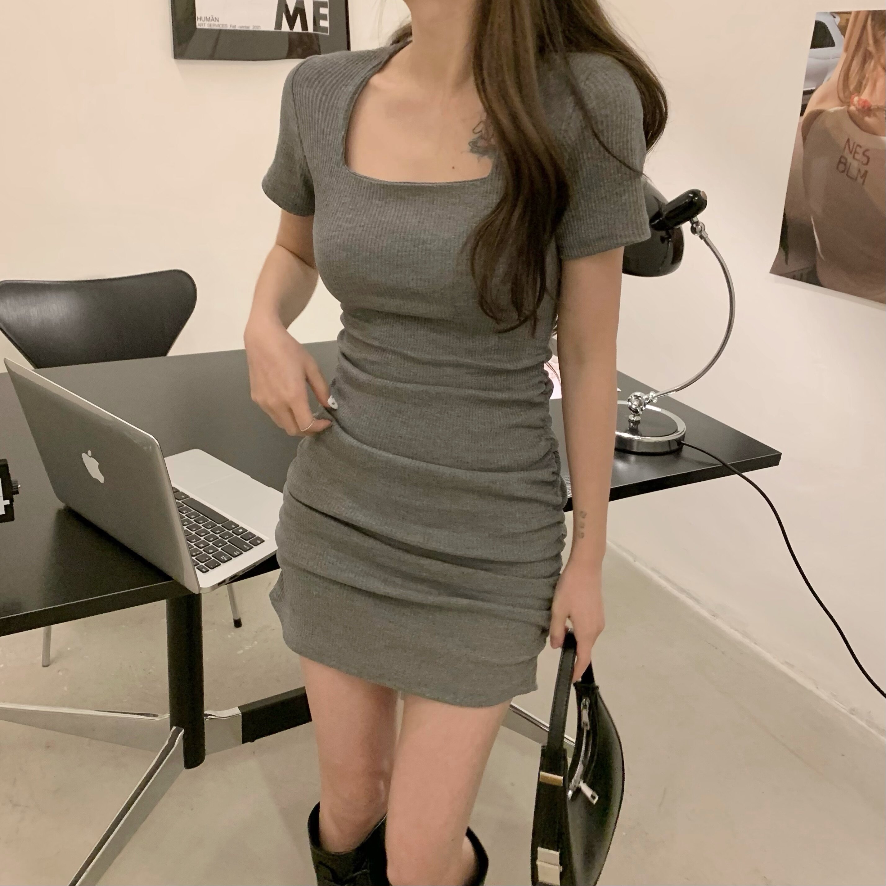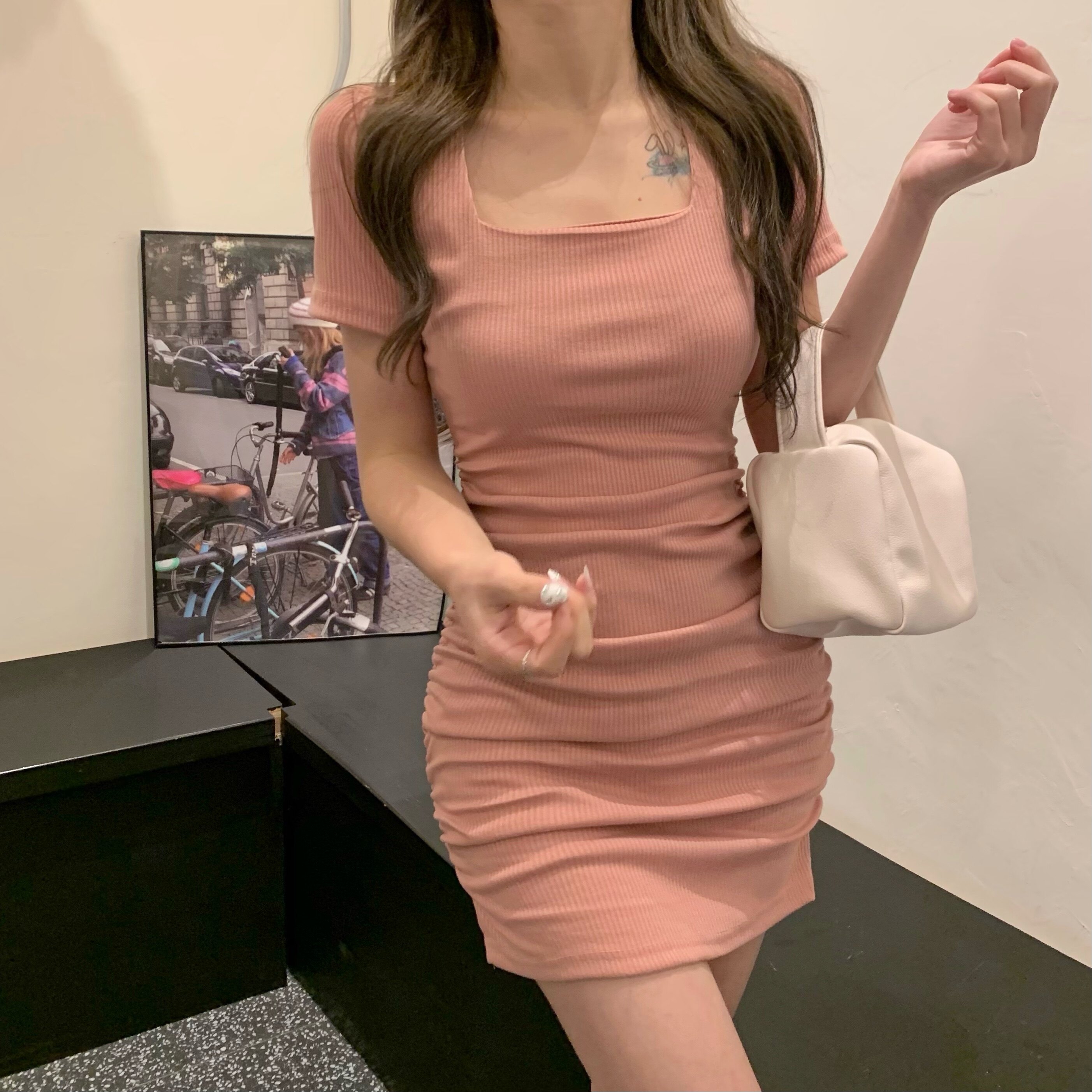 Приталенная мини-юбка, юбка, приталенный корсет, розовое платье, французский стиль, квадратный вырез