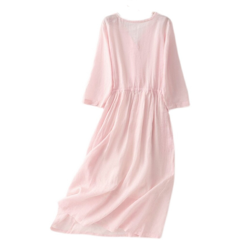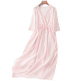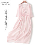 Внешняя торговля, экспорт, распродажа женской одежды известных брендов, вывоз шкафов, срезание этикеток, японское азиатское платье из рами с V-образным вырезом, длинная юбка большого размера