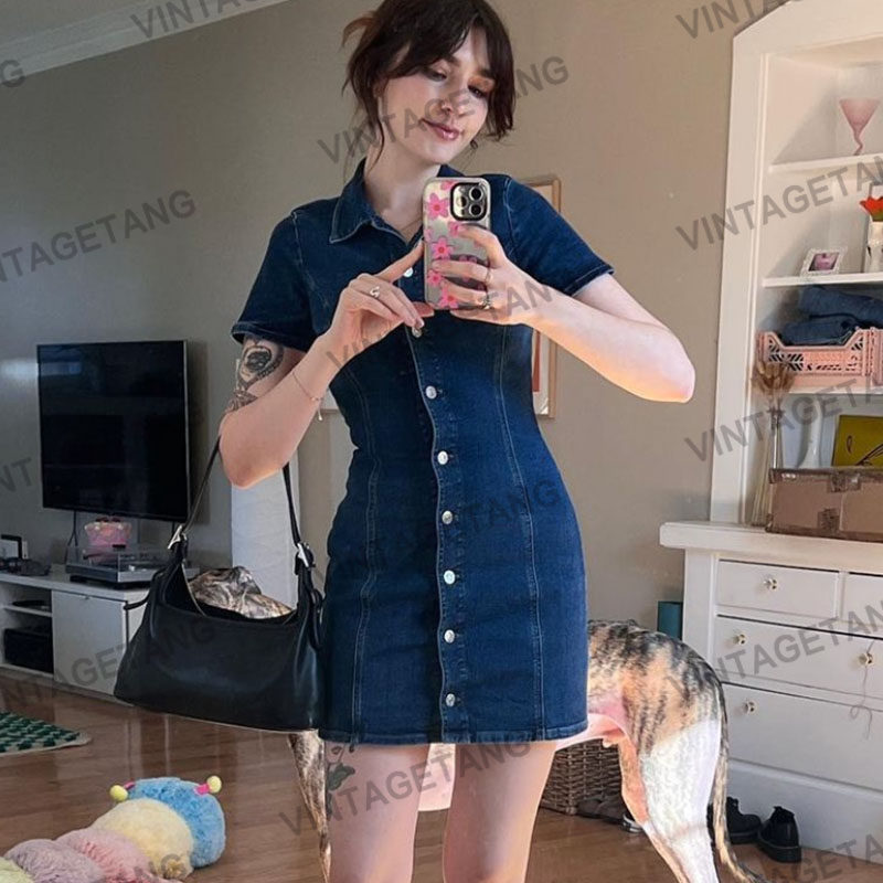 Ретро комбинезон, джинсовая юбка, платье, мини-юбка, в американском стиле, высокая талия