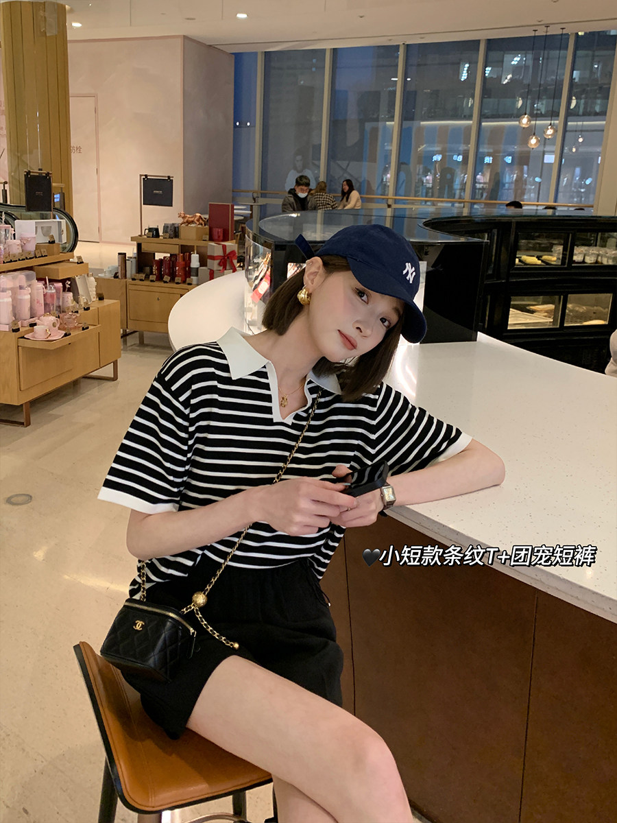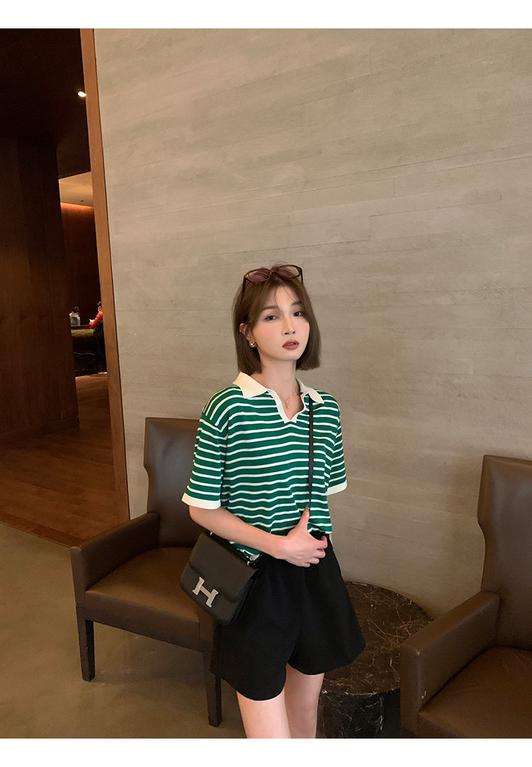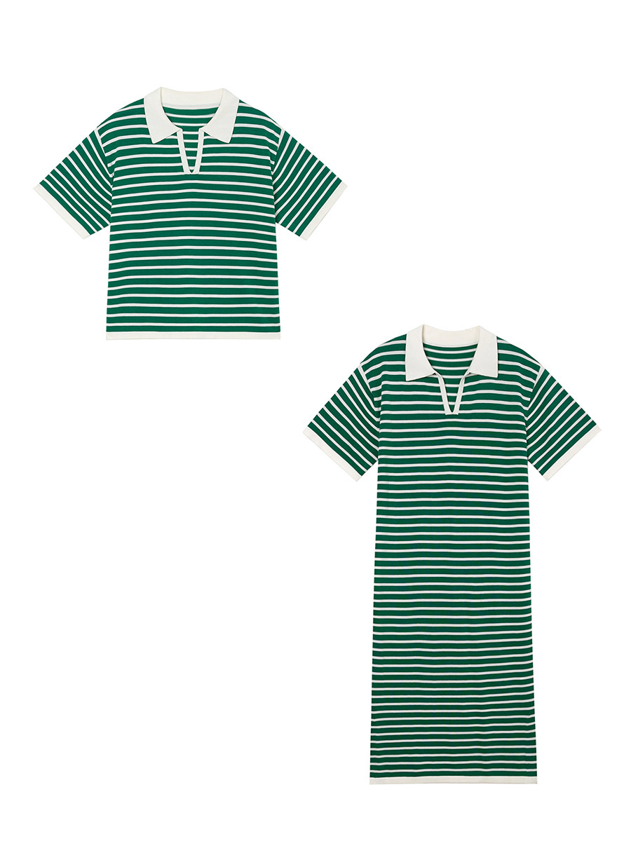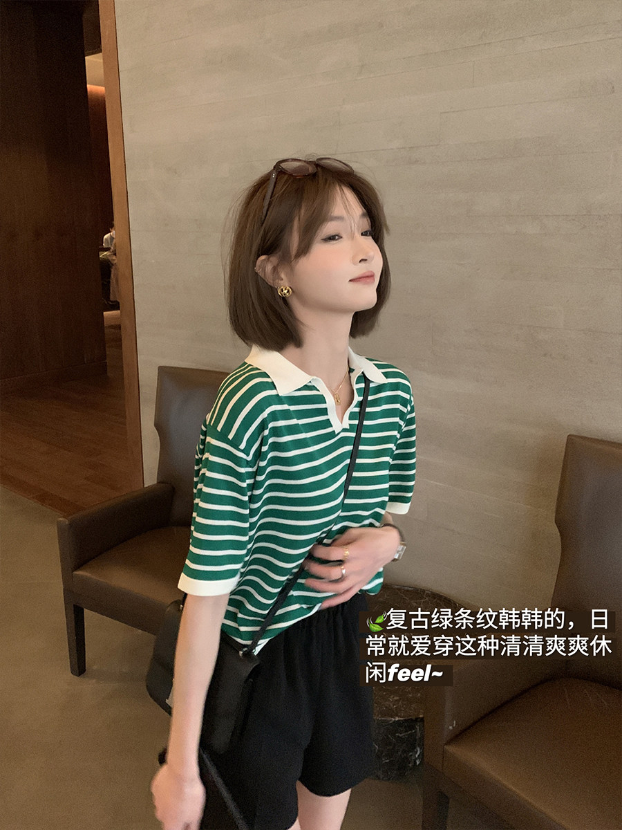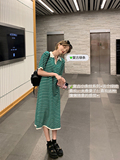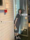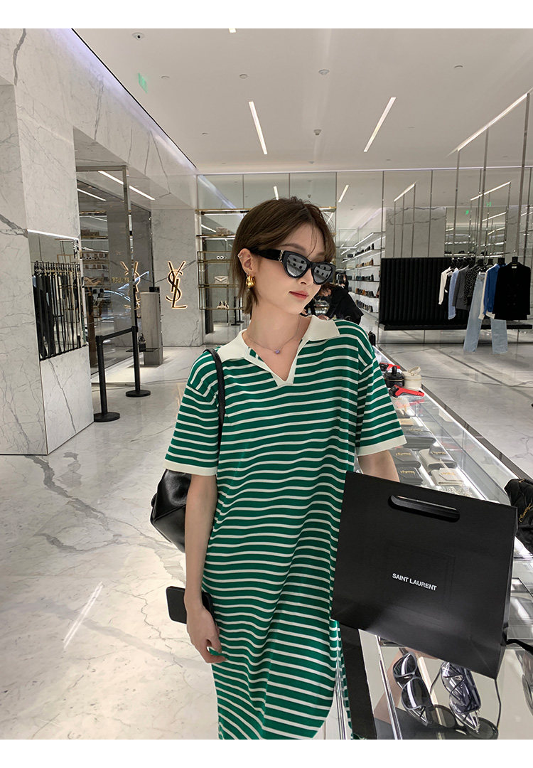Ретро трикотажная футболка с коротким рукавом, длинное платье, юбка, воротник поло, свободный крой, средней длины