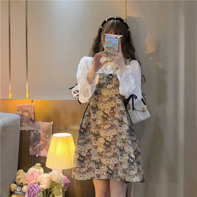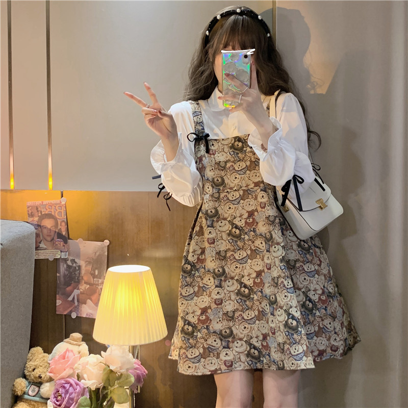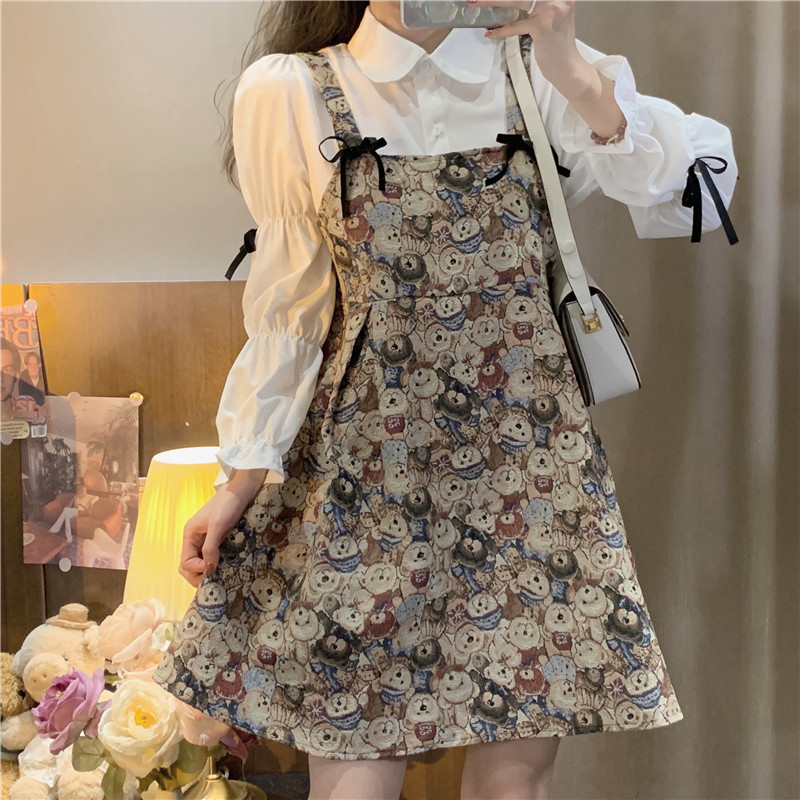 Ретро весеннее платье, сексуальное платье-комбинация, юбка, с медвежатами, подходит для подростков