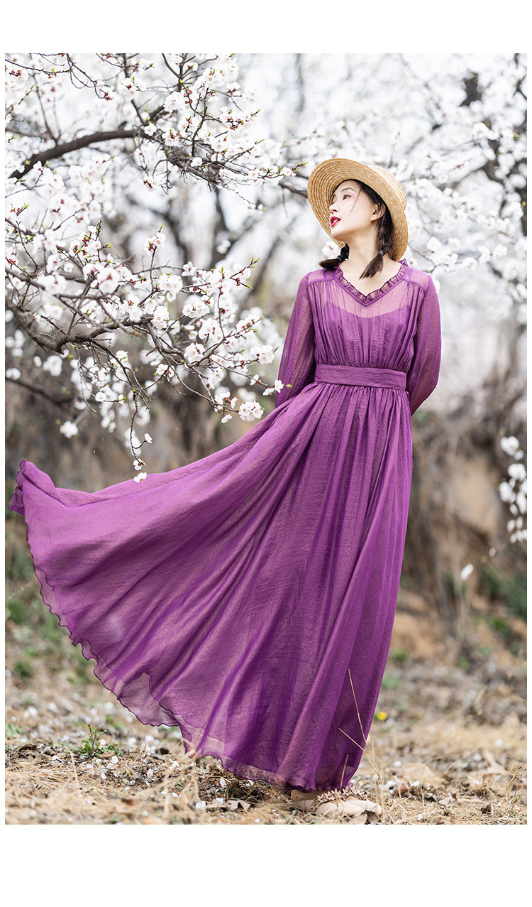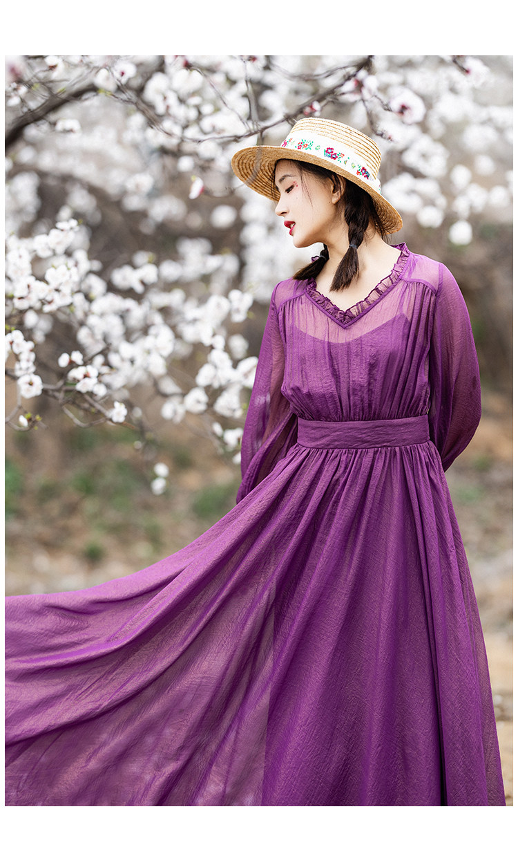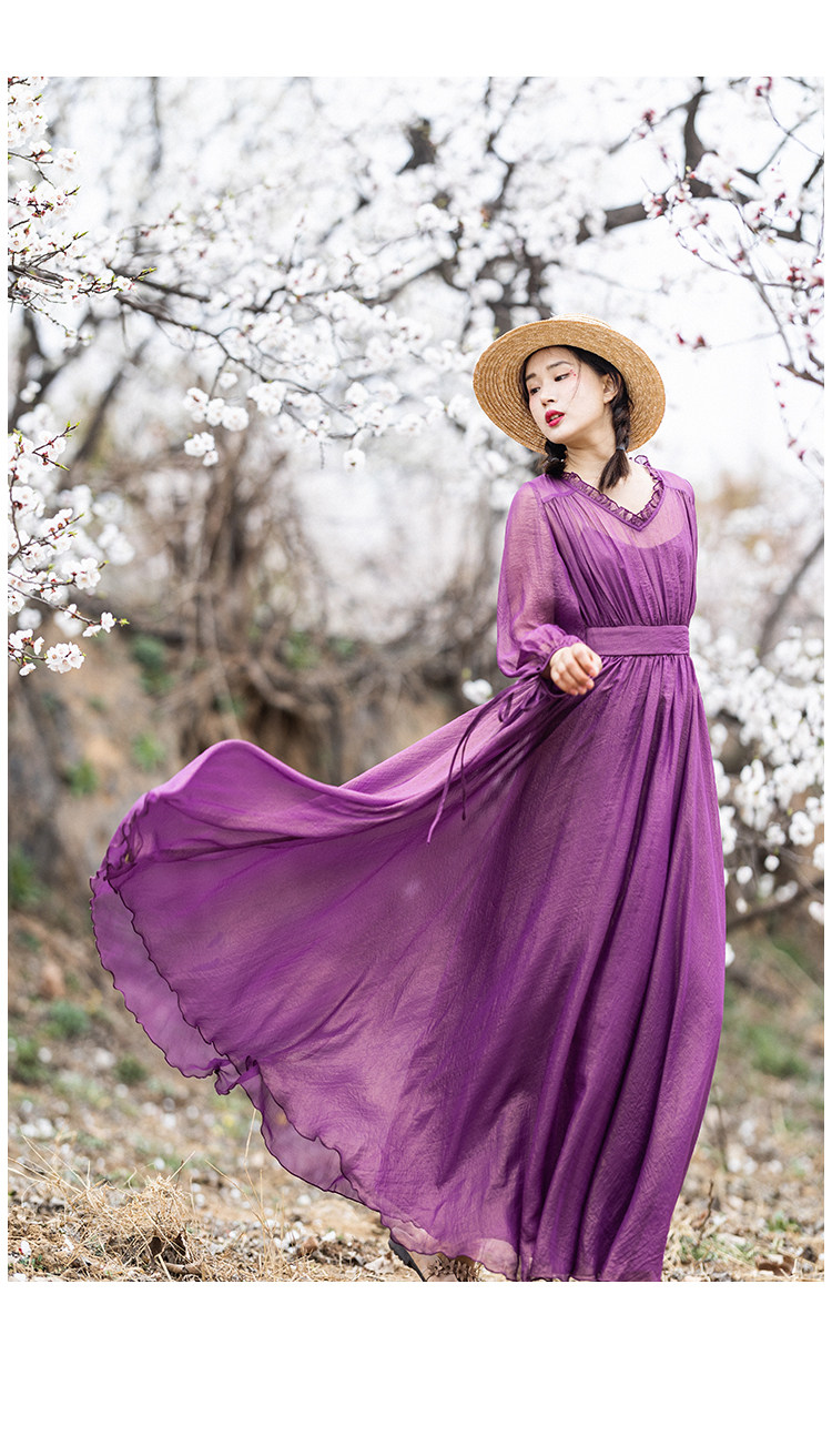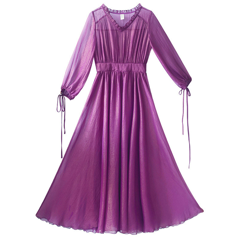 Шифоновое летнее платье, сиреневая длинная юбка, коллекция 2022, V-образный вырез
