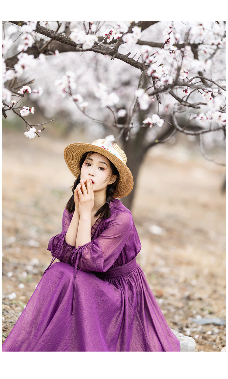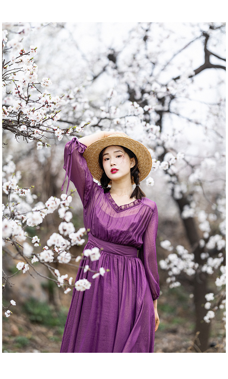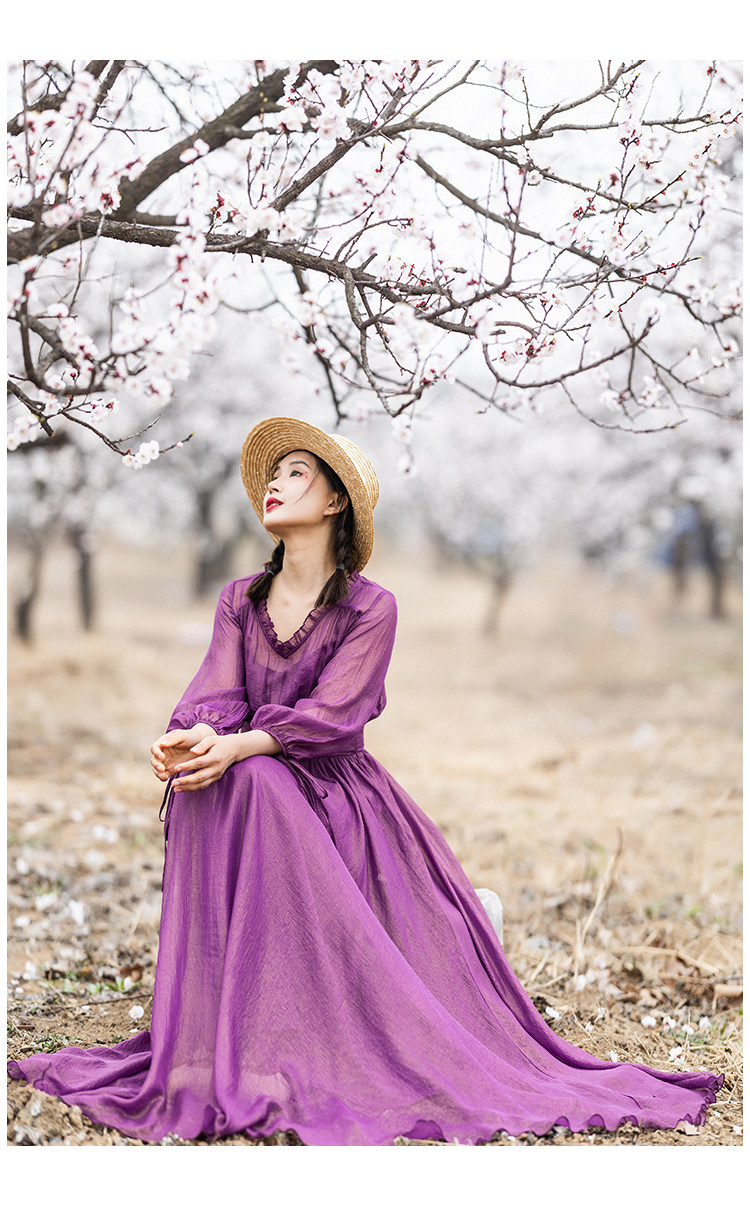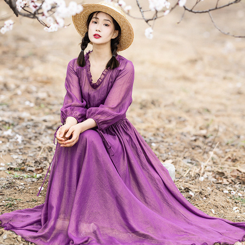 Шифоновое летнее платье, сиреневая длинная юбка, коллекция 2022, V-образный вырез