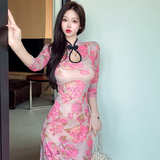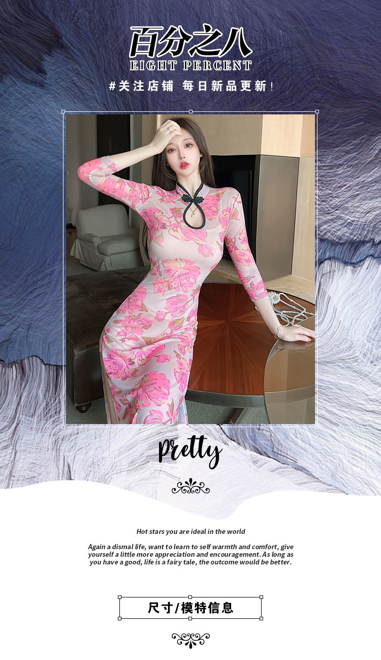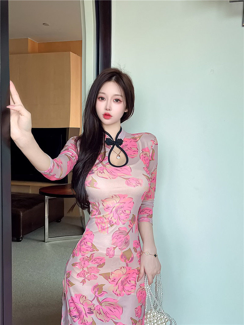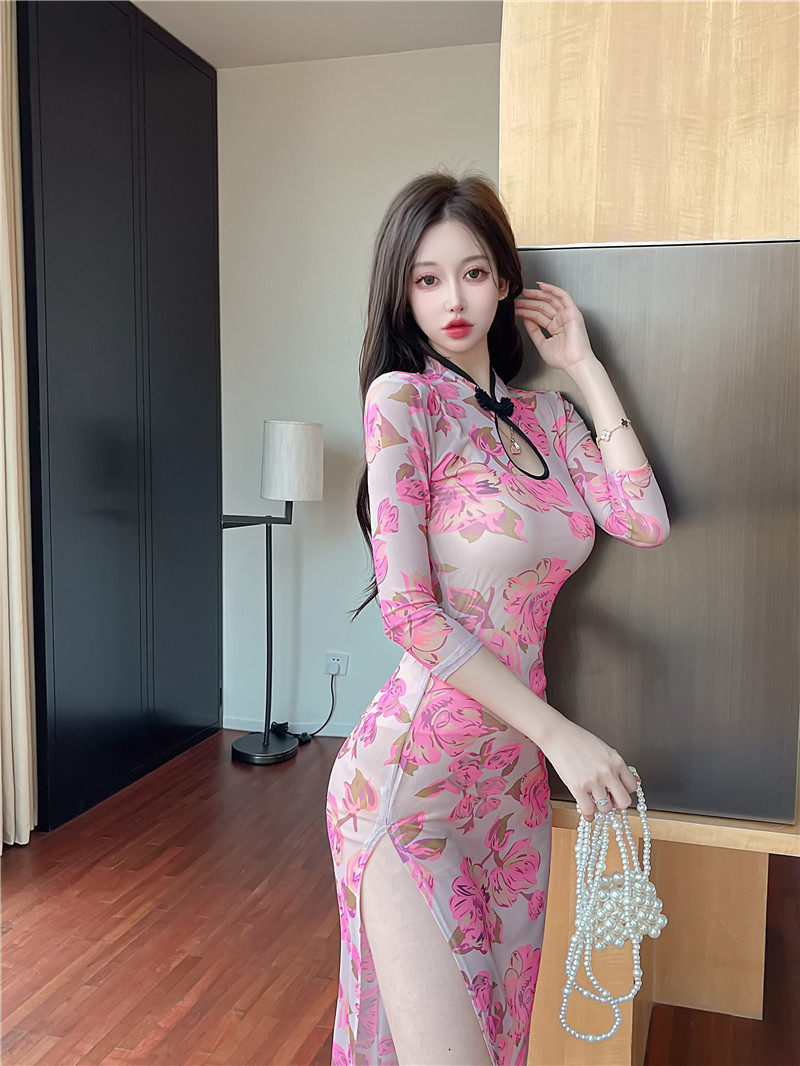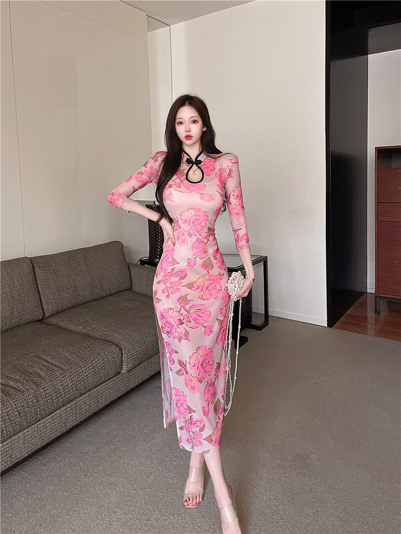 Сексуальное женское приталенное ципао, длинная юбка, платье с рукавами, яркий броский стиль, с акцентом на бедрах