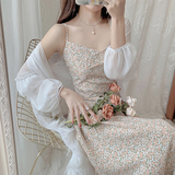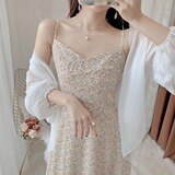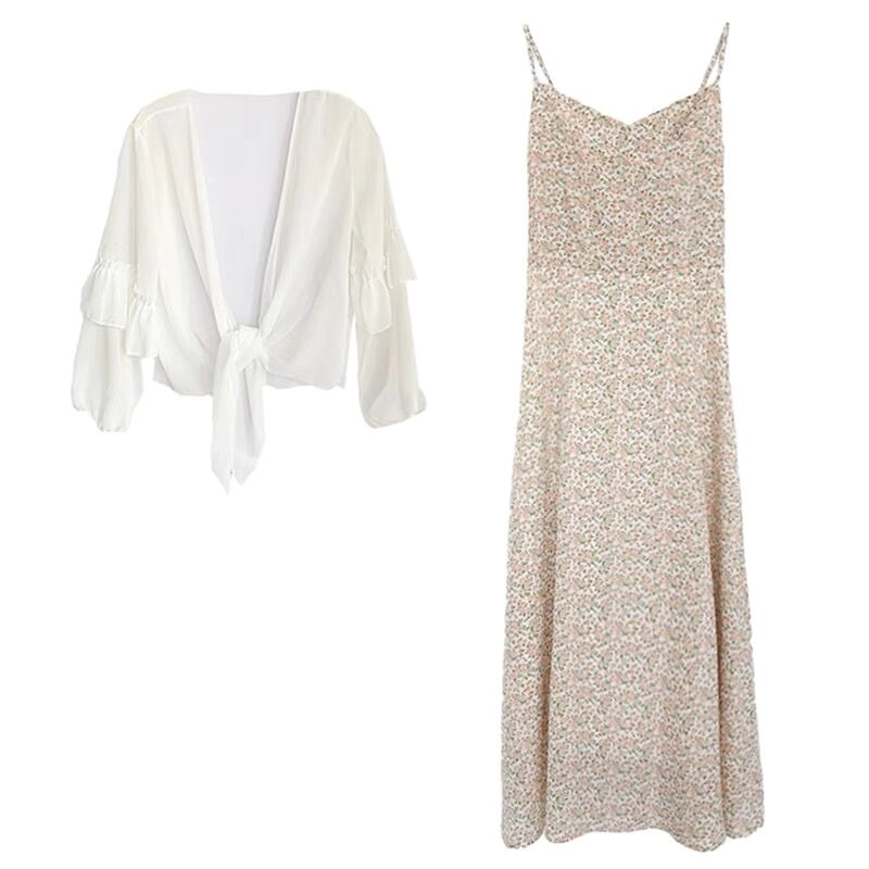 Летнее шифоновое платье, комплект, в цветочек