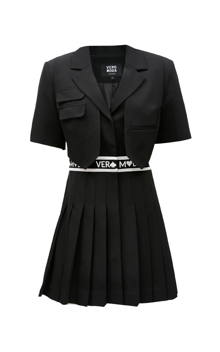 Vero moda, ретро приталенное платье, пиджак классического кроя, высокая талия, короткий рукав