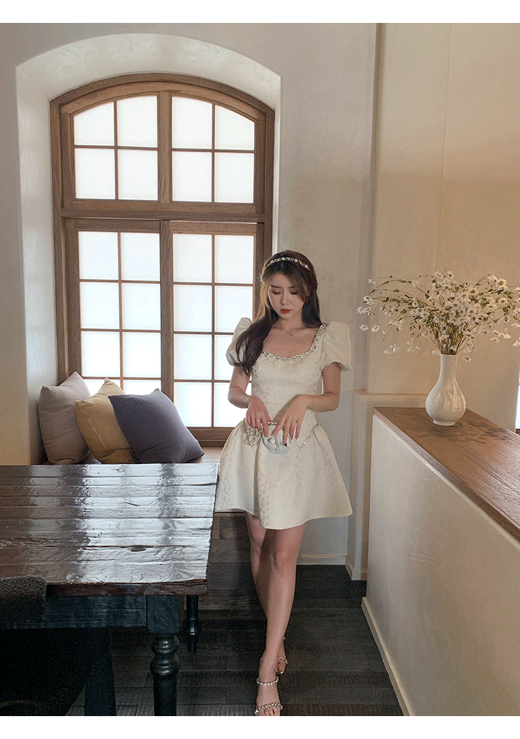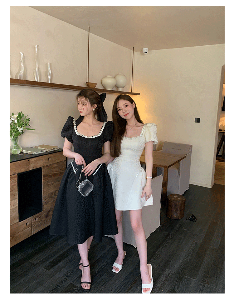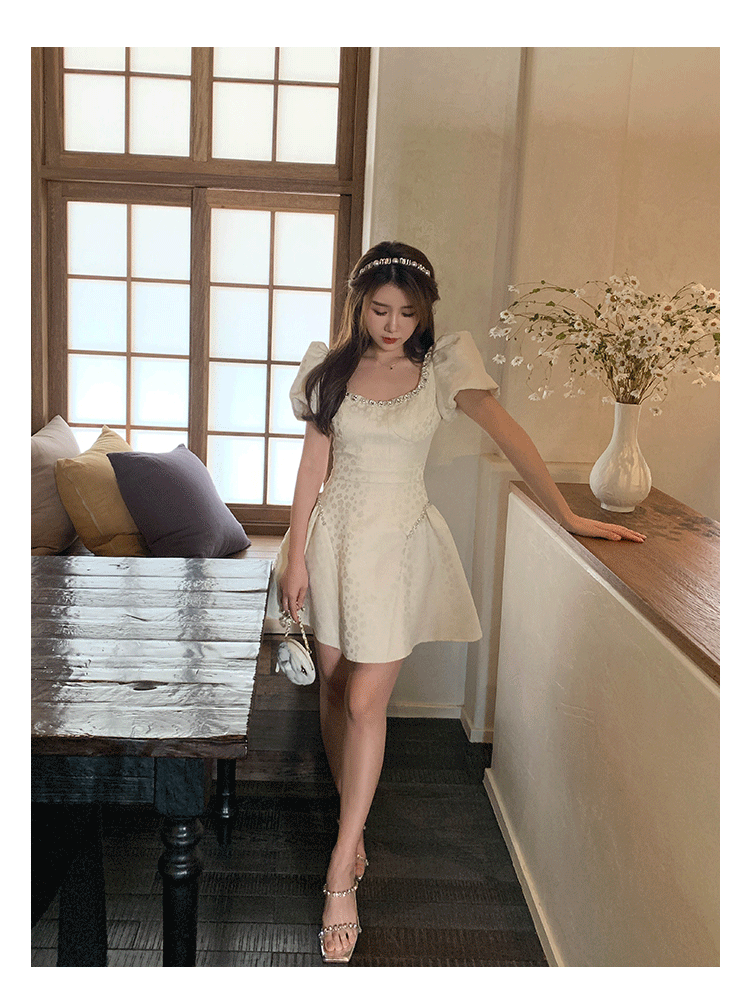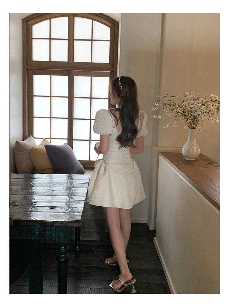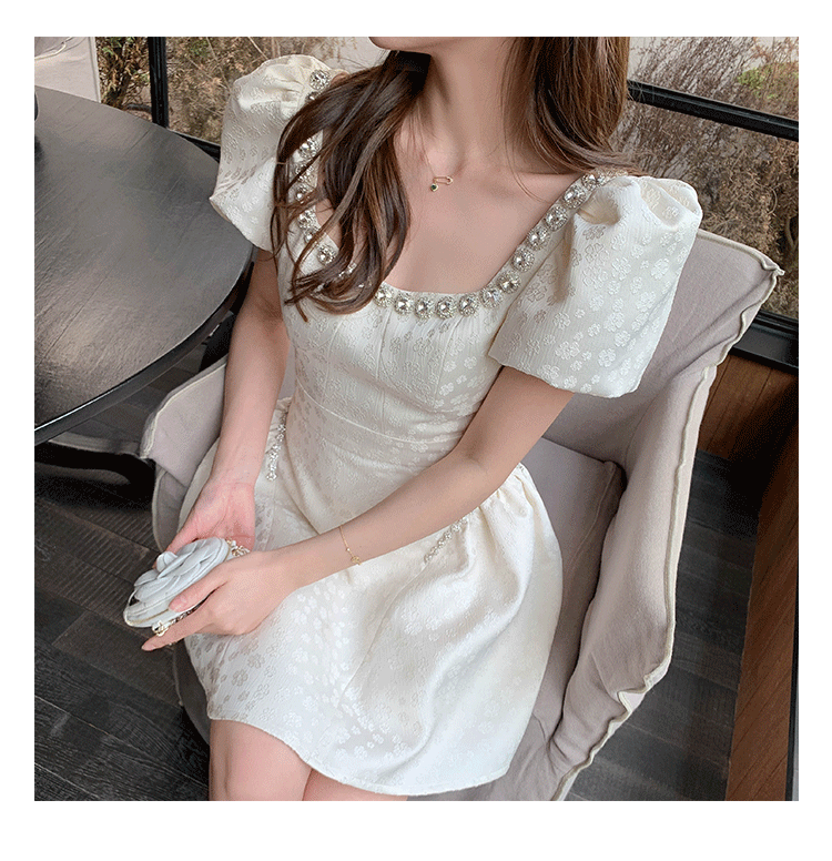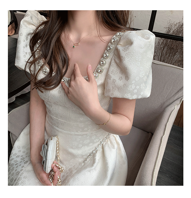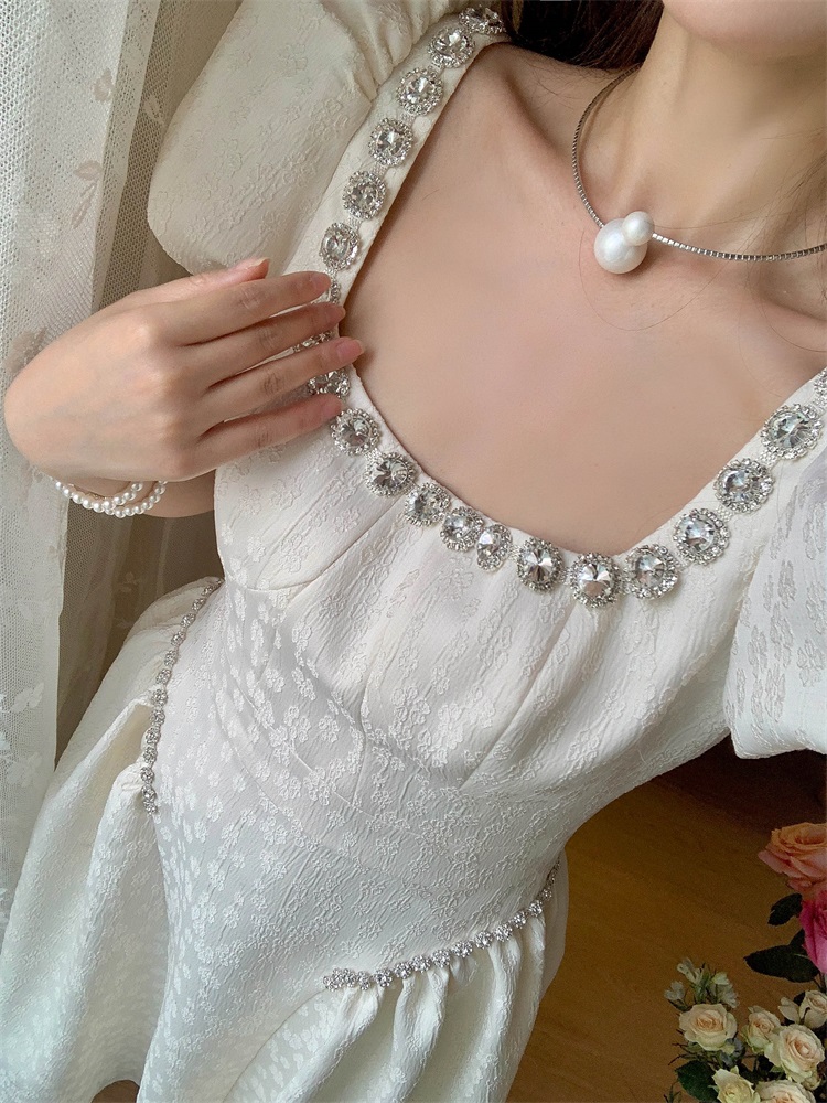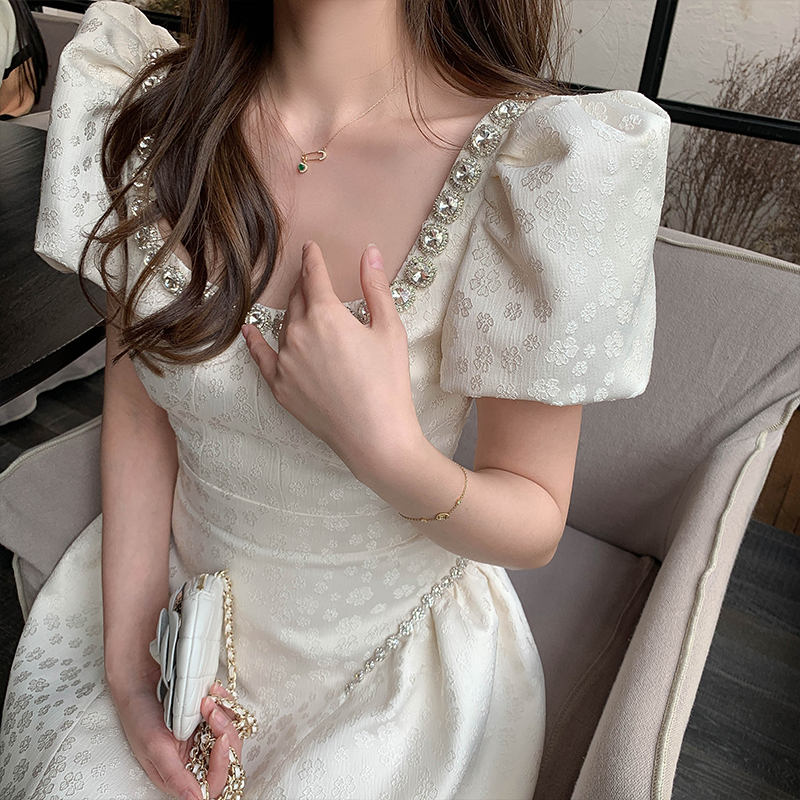 Французский элегантный квадратный воротник выделяет ключицу
