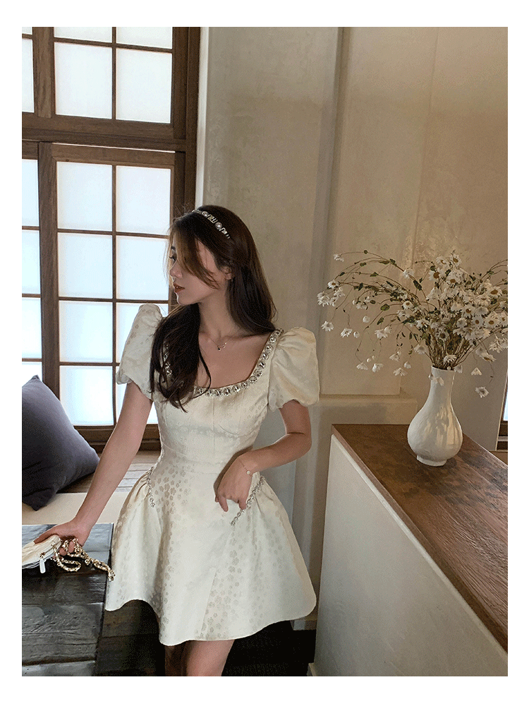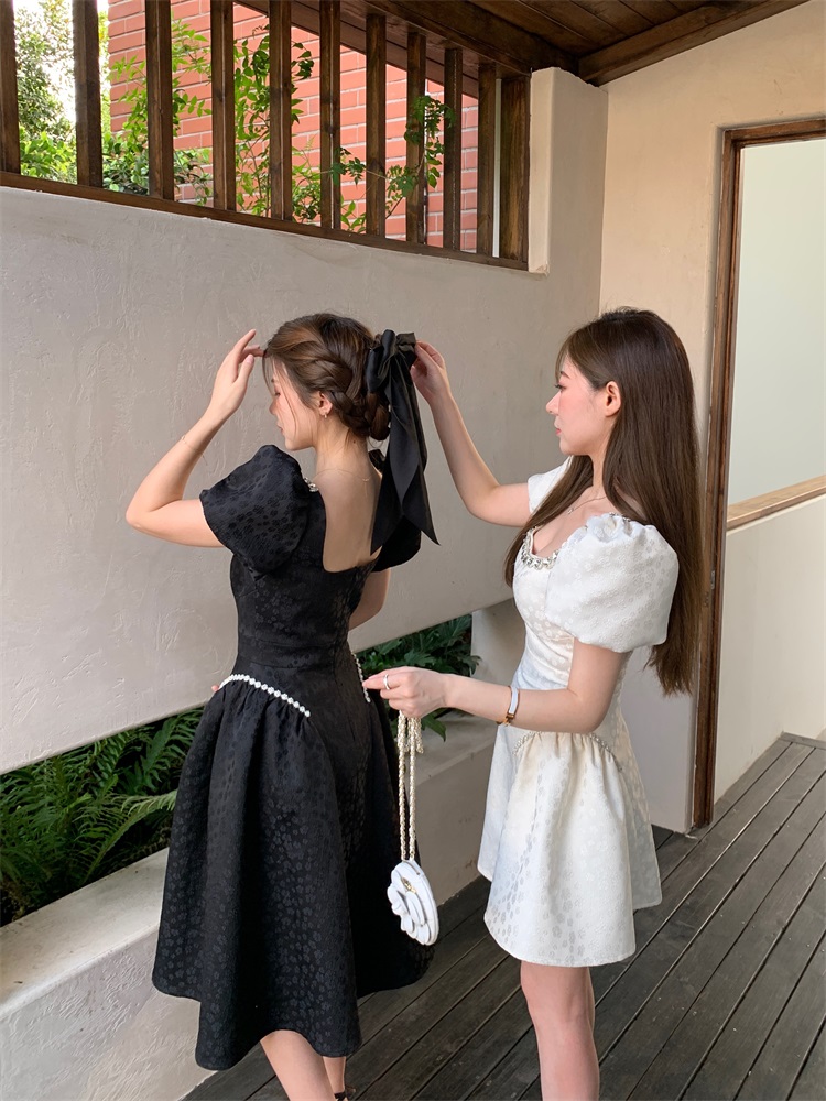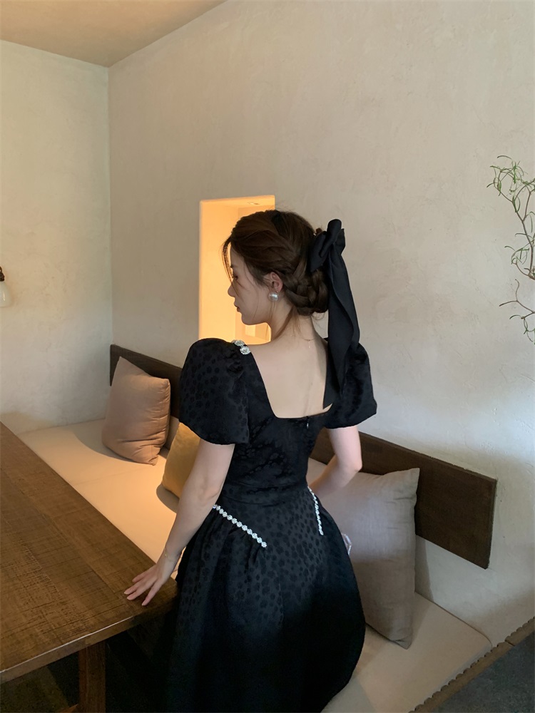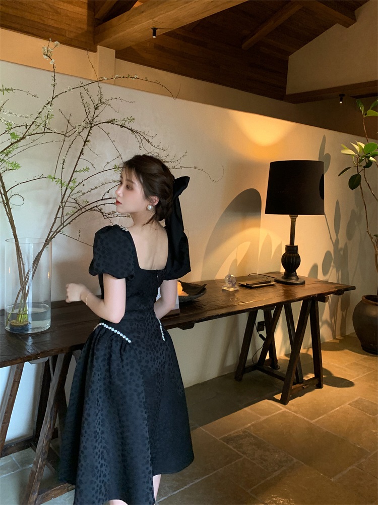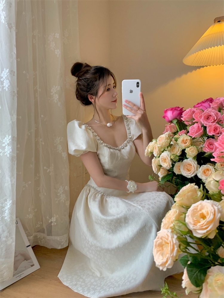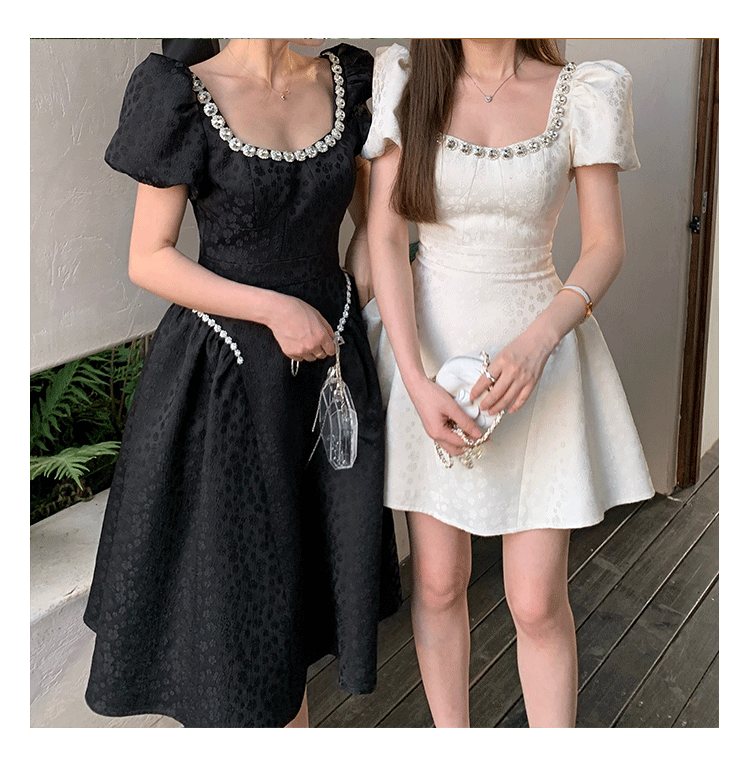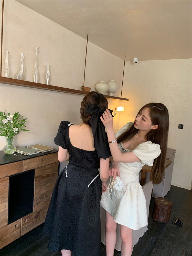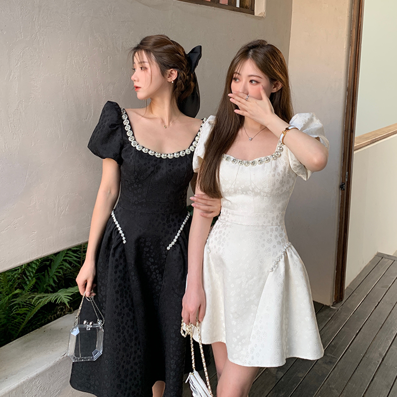 Французский элегантный квадратный воротник выделяет ключицу
