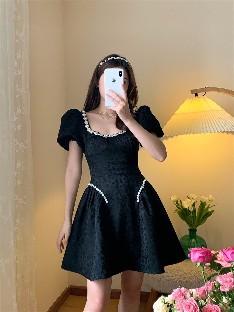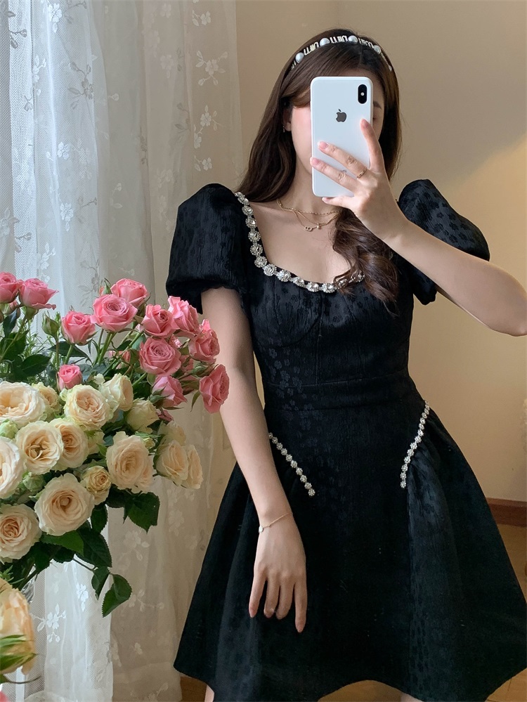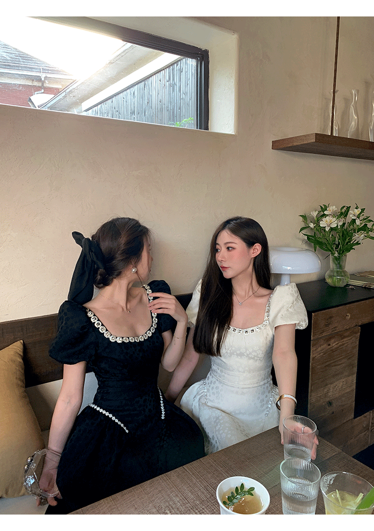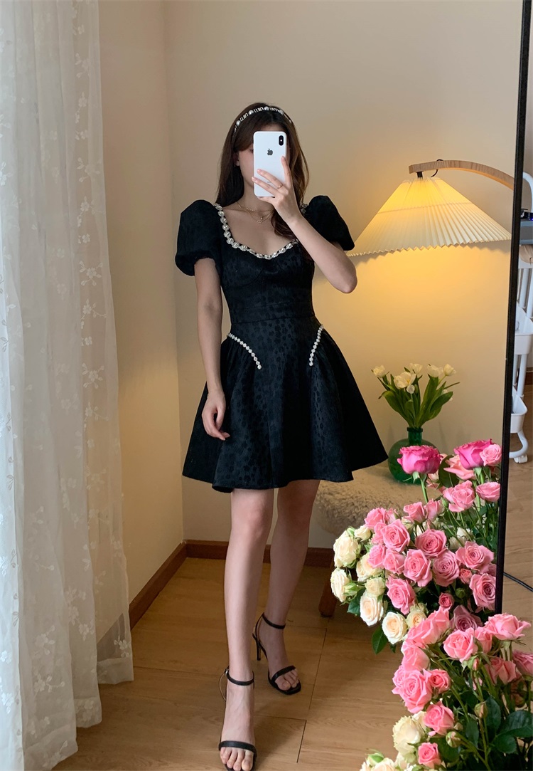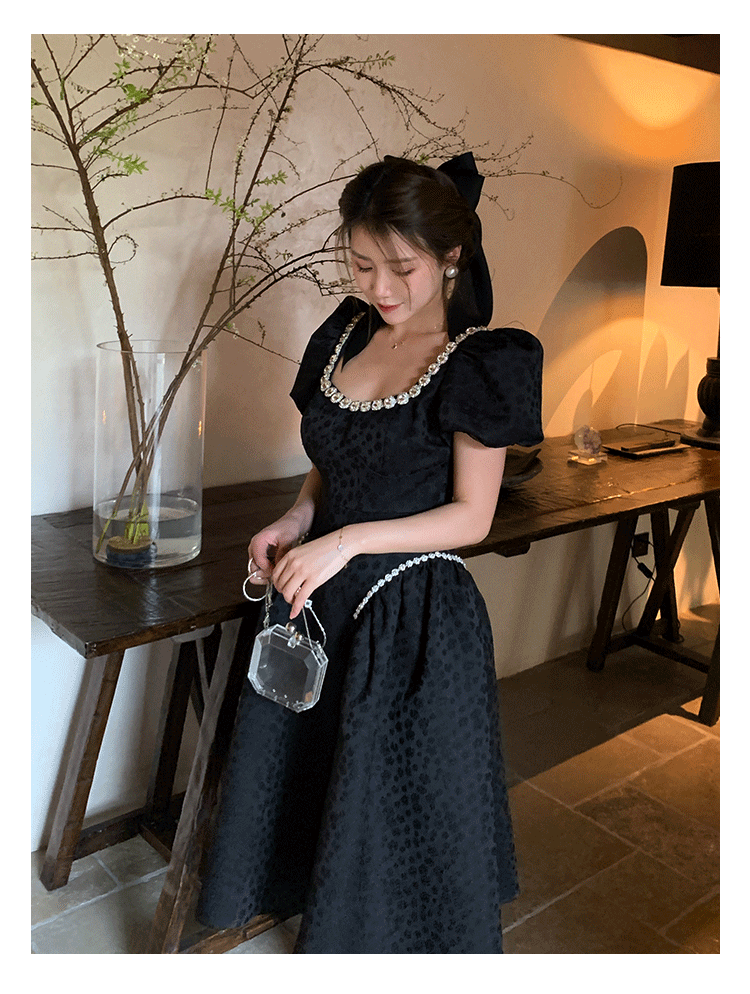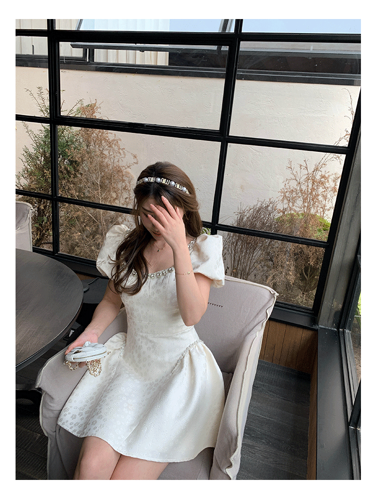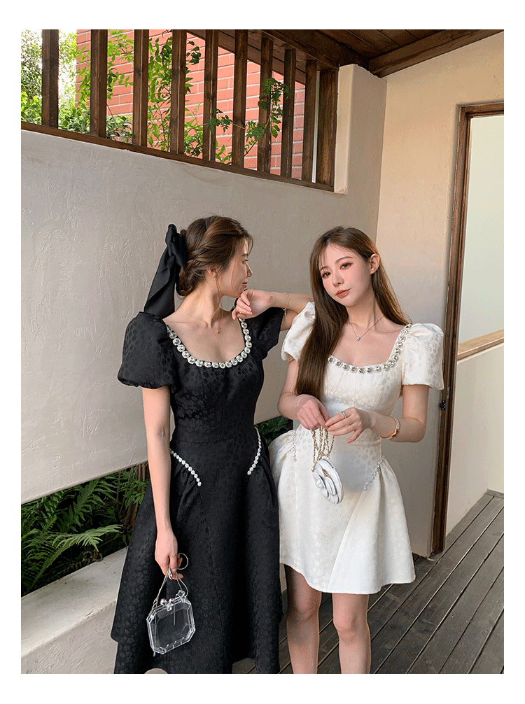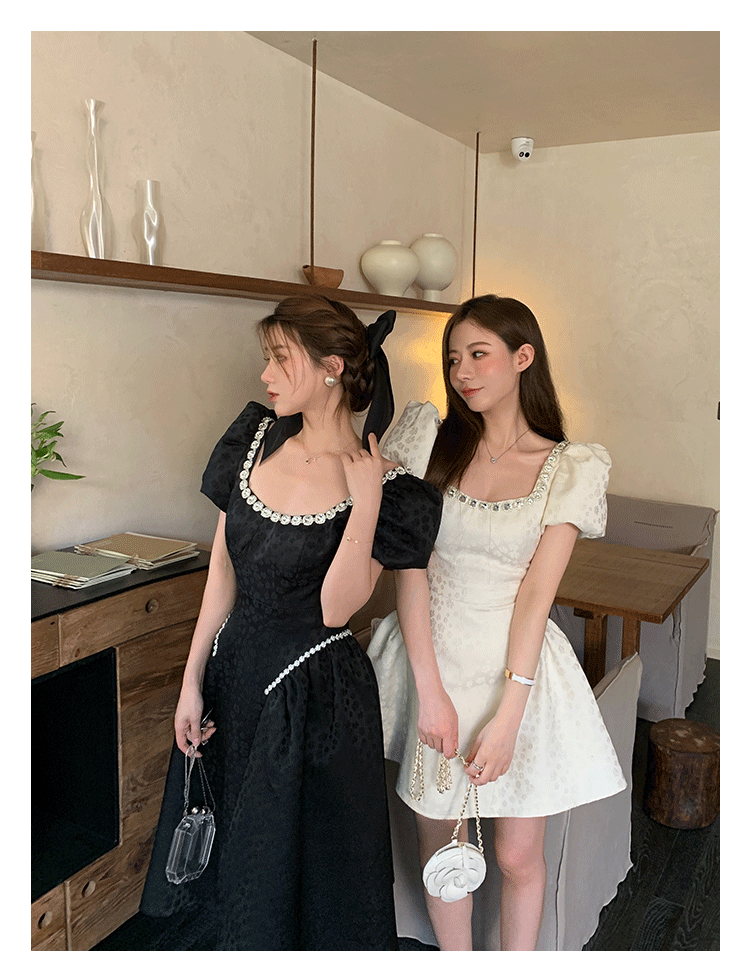 Французский элегантный квадратный воротник выделяет ключицу