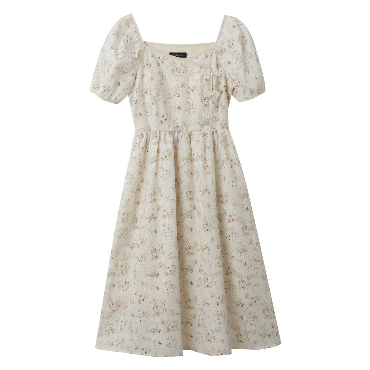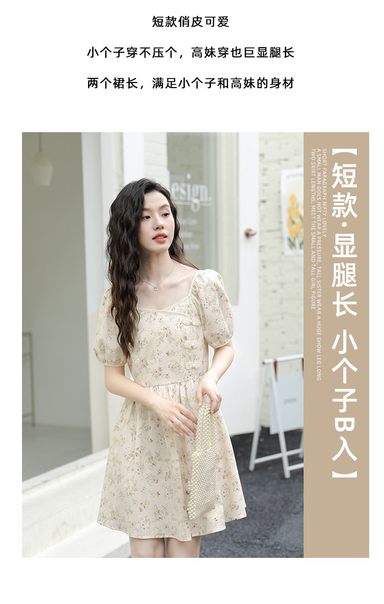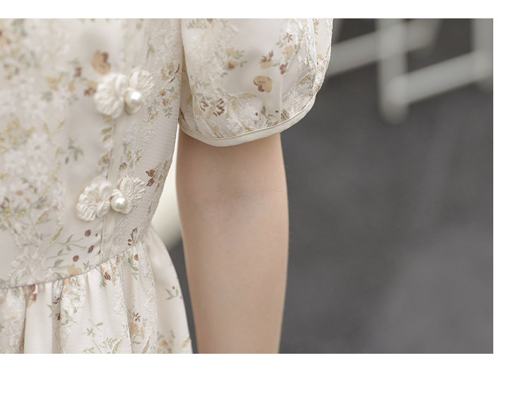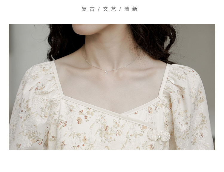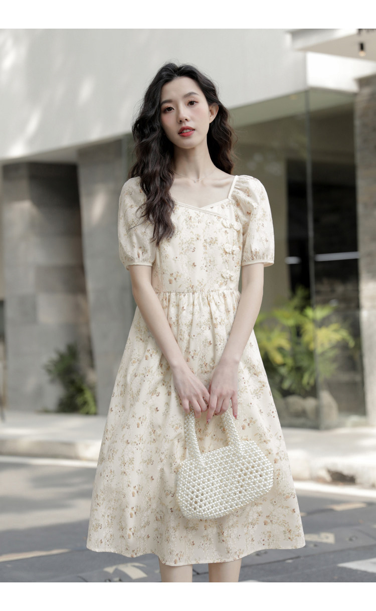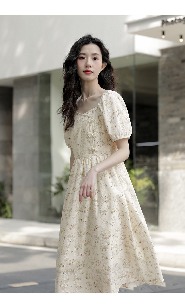 Ципао, небольшое дизайнерское платье, китайский стиль, французский стиль, квадратный вырез, в цветочек