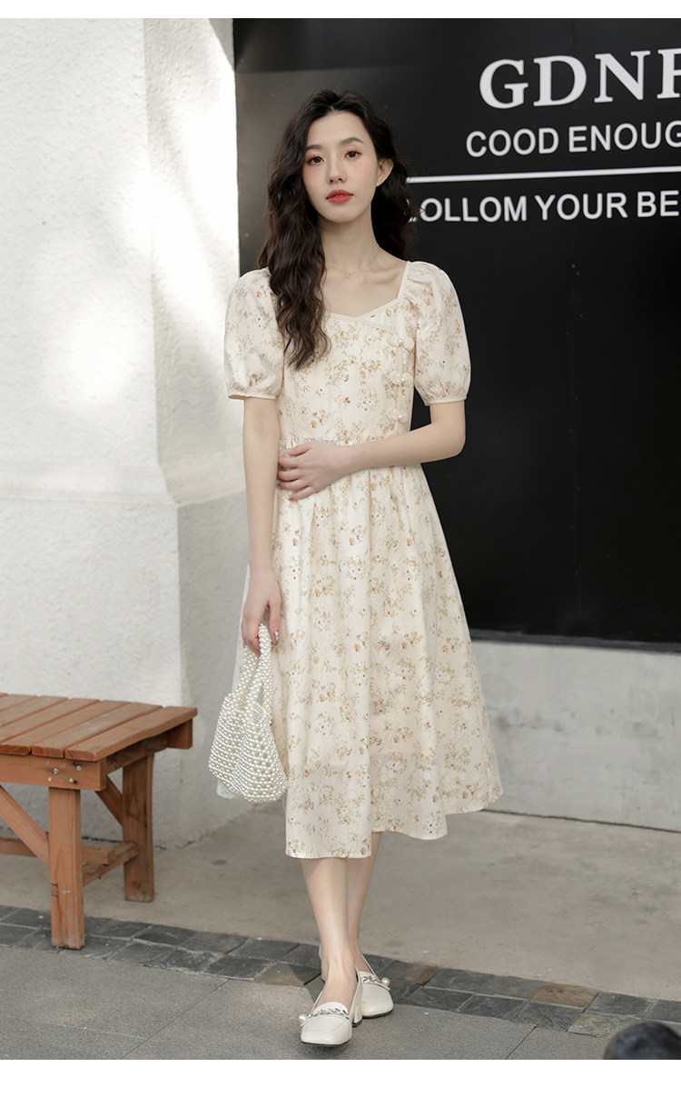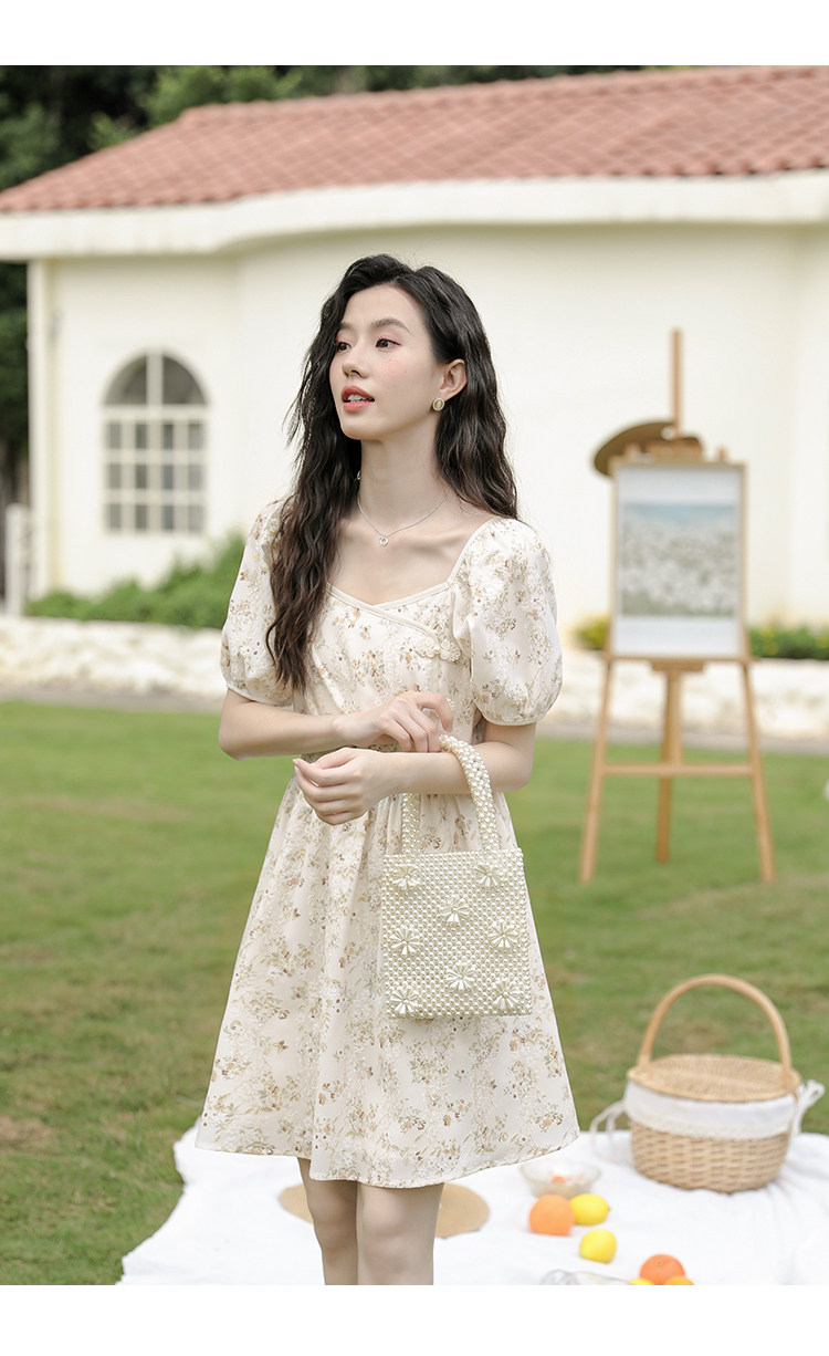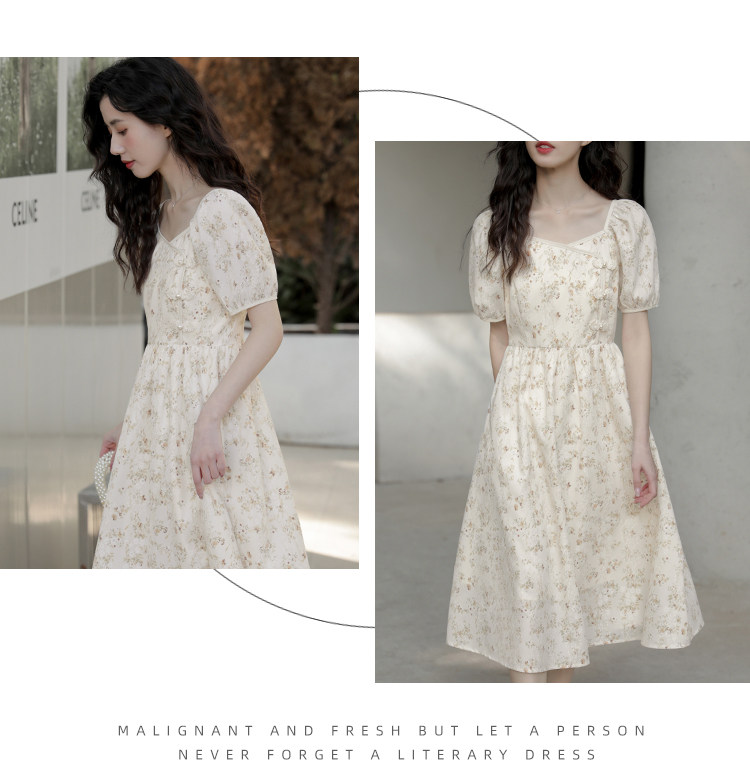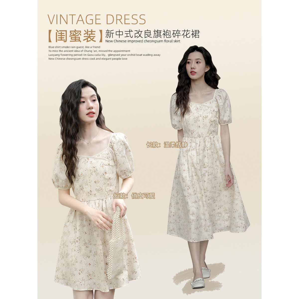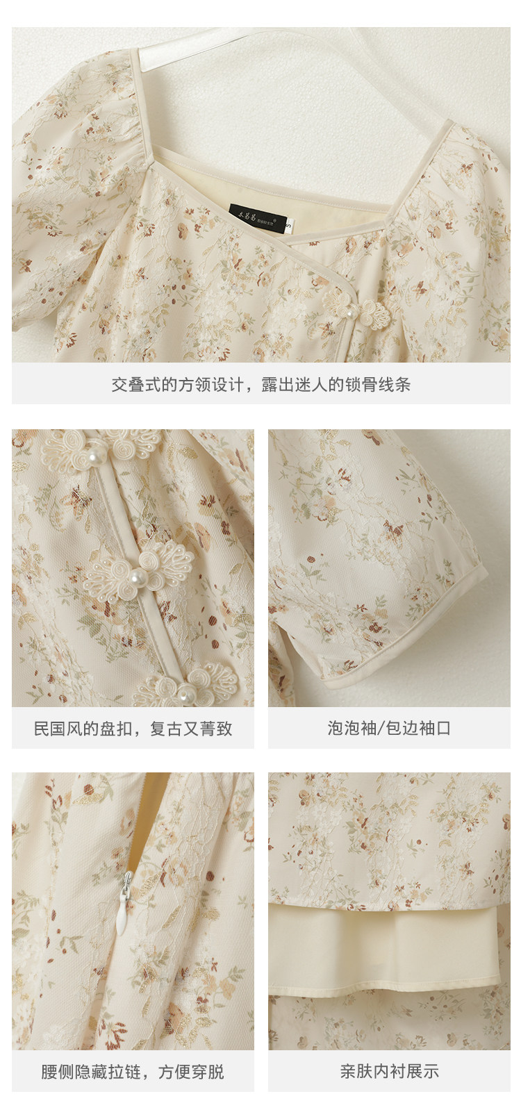 Ципао, небольшое дизайнерское платье, китайский стиль, французский стиль, квадратный вырез, в цветочек