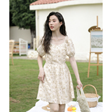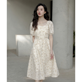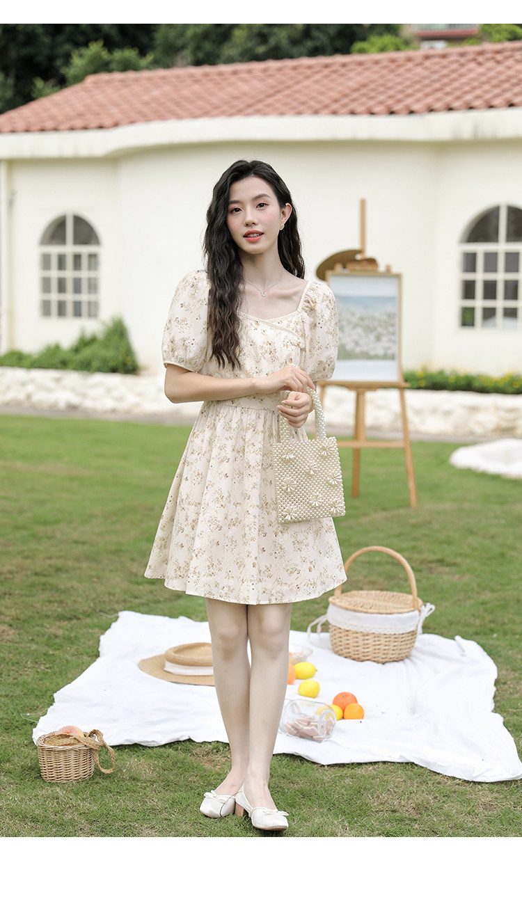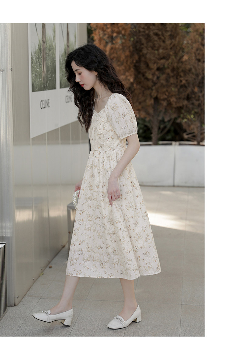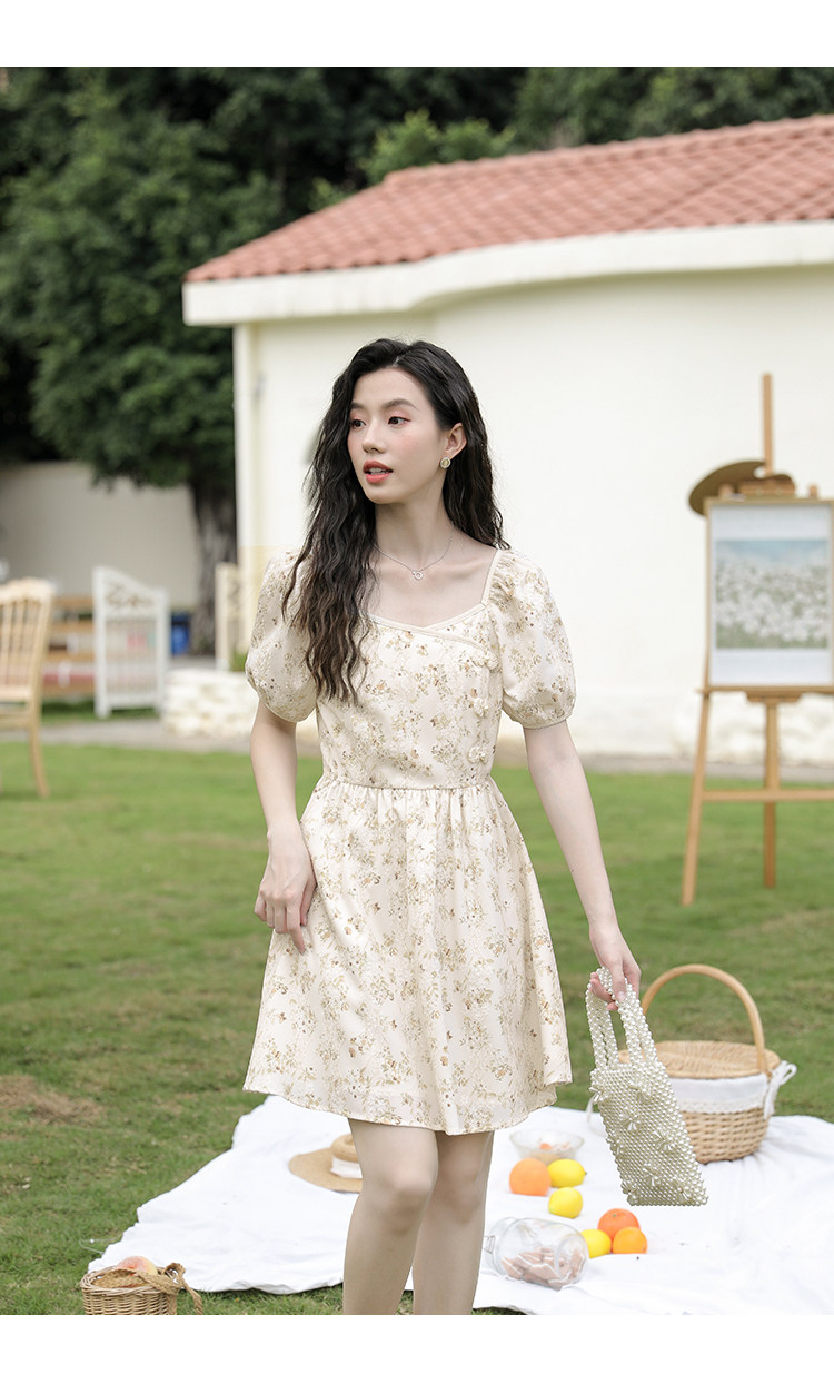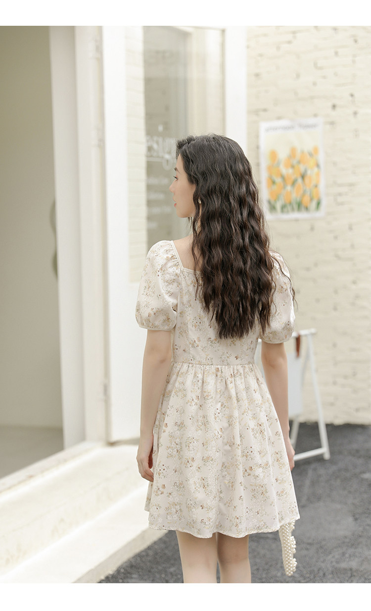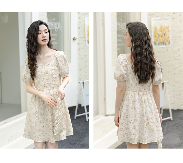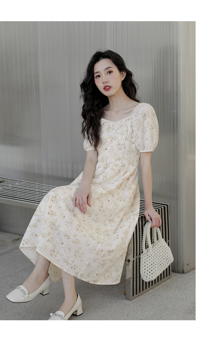 Ципао, небольшое дизайнерское платье, китайский стиль, французский стиль, квадратный вырез, в цветочек