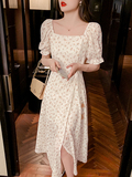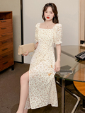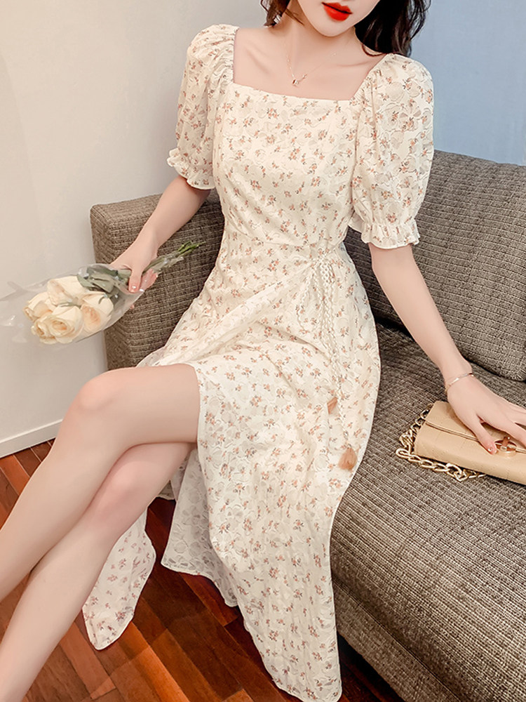 Шифоновое сексуальное летнее платье, юбка, французский стиль, А-силуэт, в цветочек