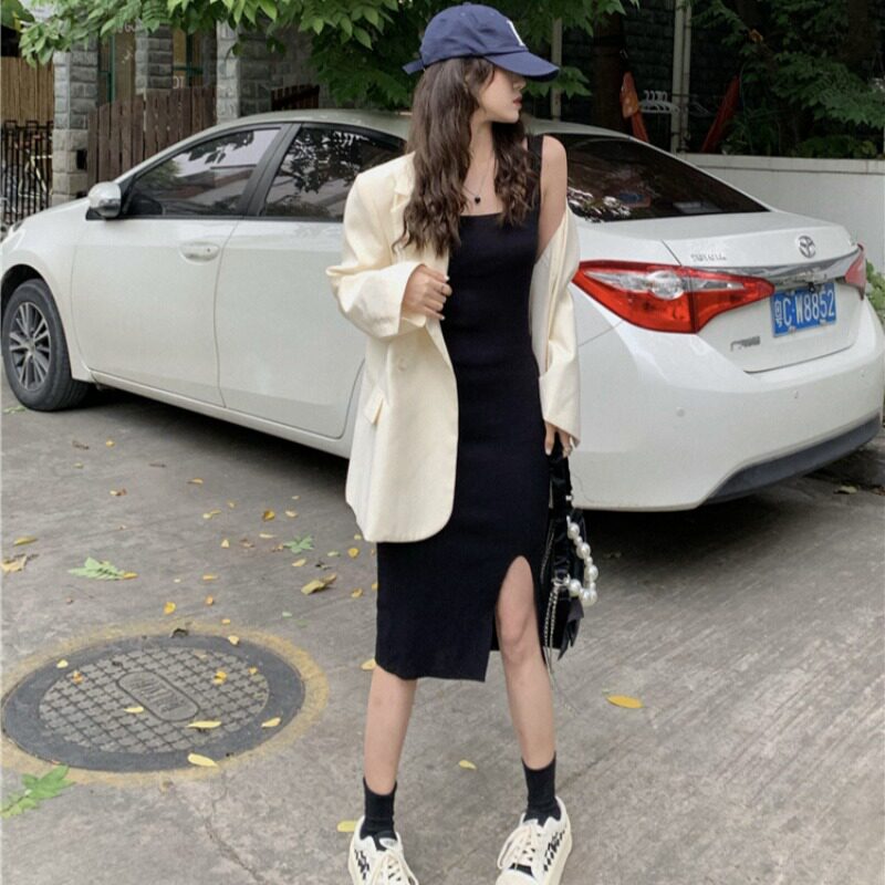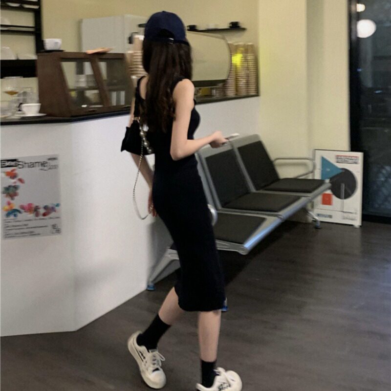 Сексуальное осеннее трикотажное платье, короткое платье-комбинация, подходит для подростков, квадратный вырез, в западном стиле