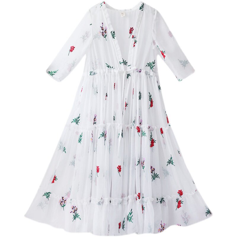 Белое шифоновое летнее платье, длинная юбка, оверсайз, V-образный вырез