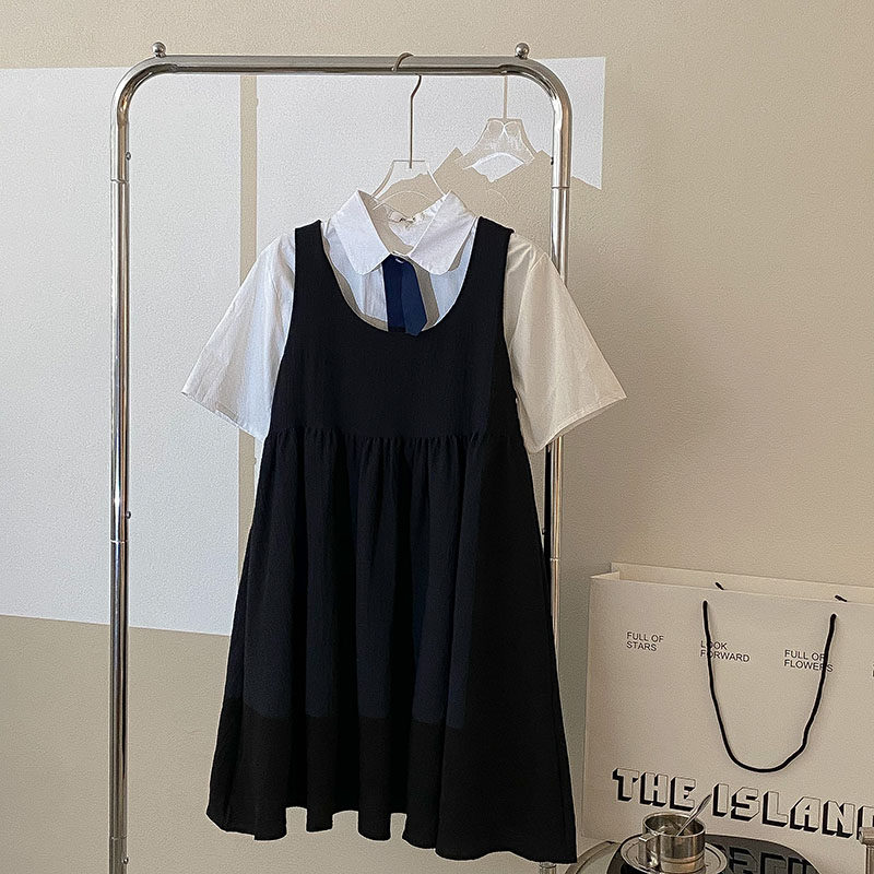 Черное милое летнее платье, высокая талия, свободный крой