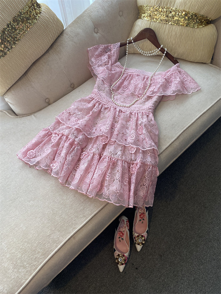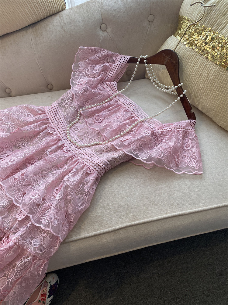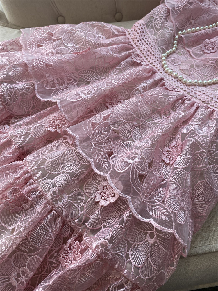 Элегантное милое розовое платье, французский стиль, высокая талия