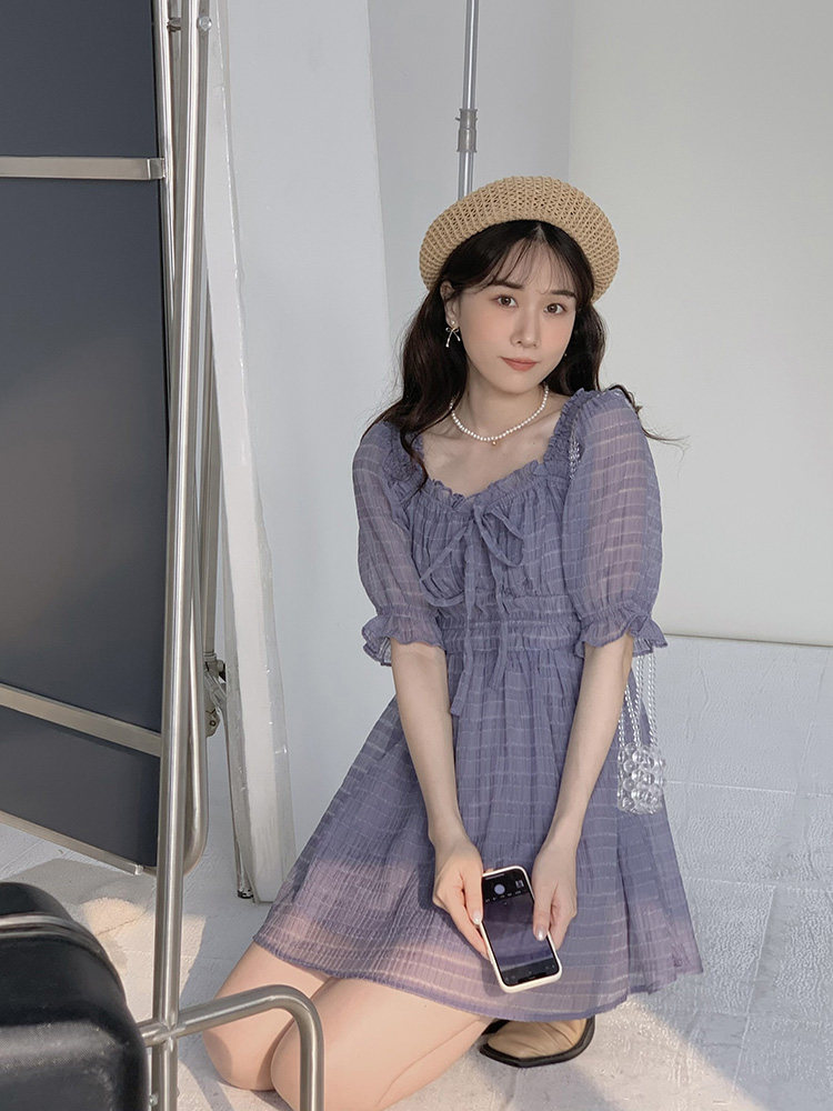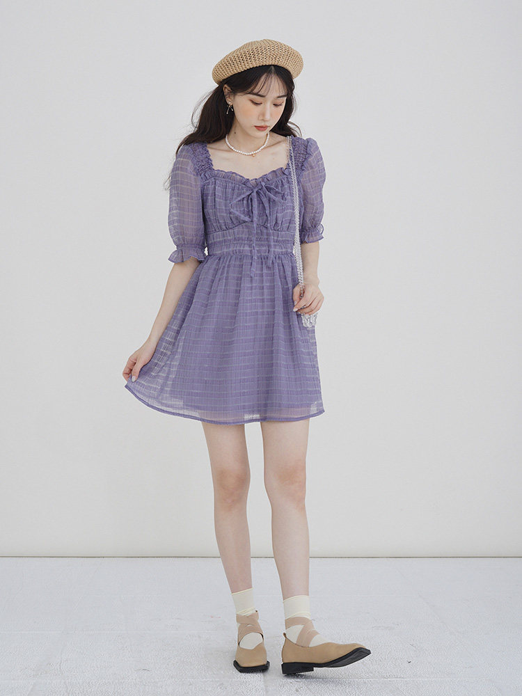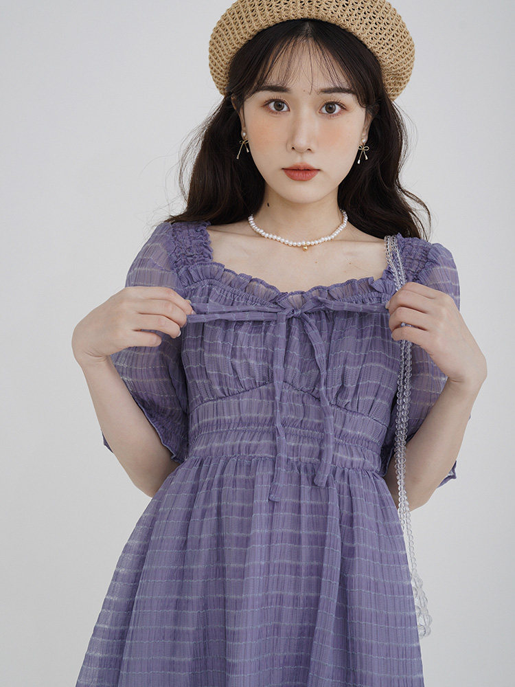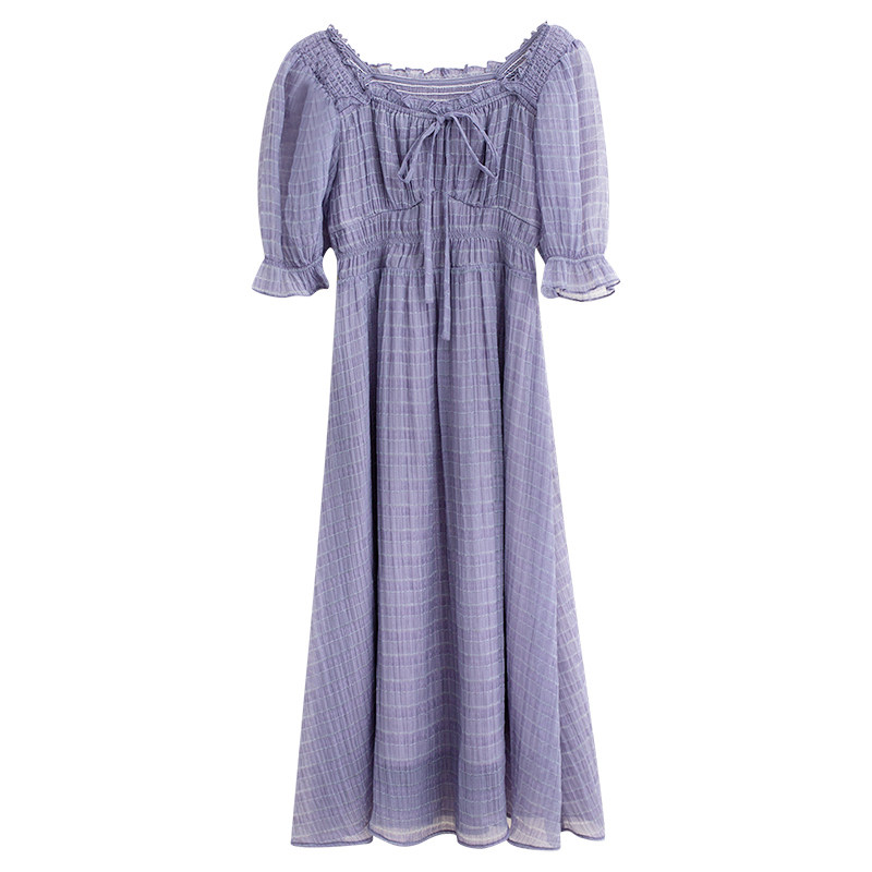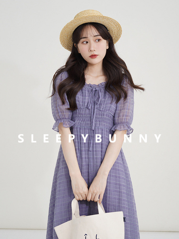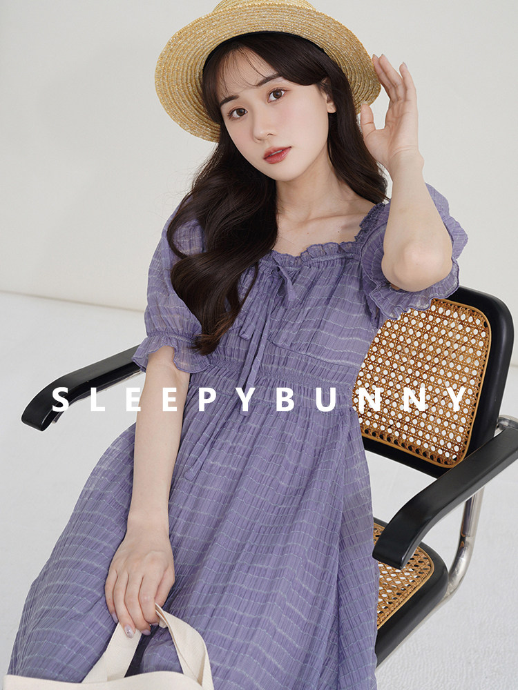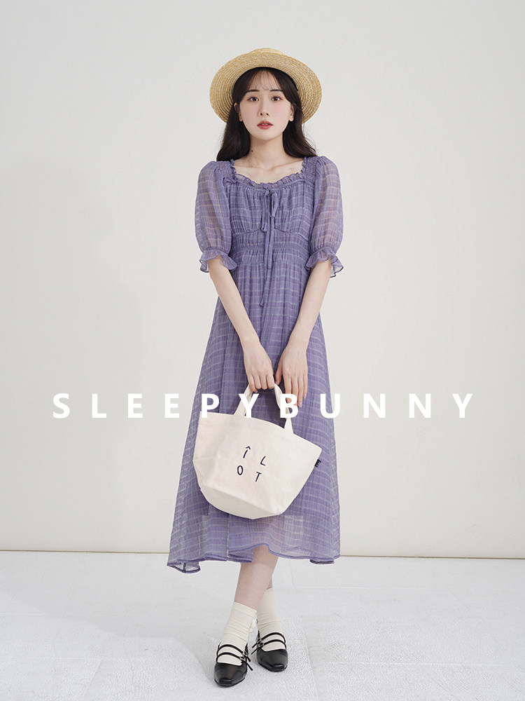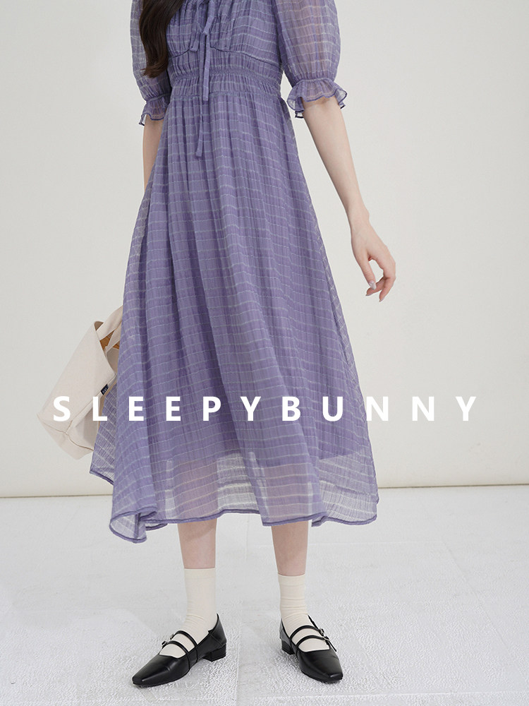 Спящий кролик нежный туман, фиолетовое пузырьковое платье рукава, летняя ярмарка сетей, талия