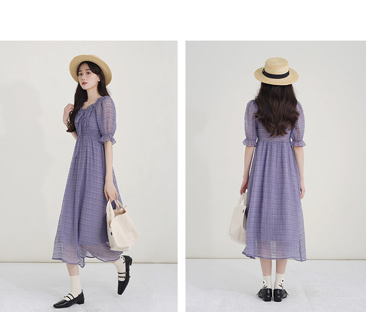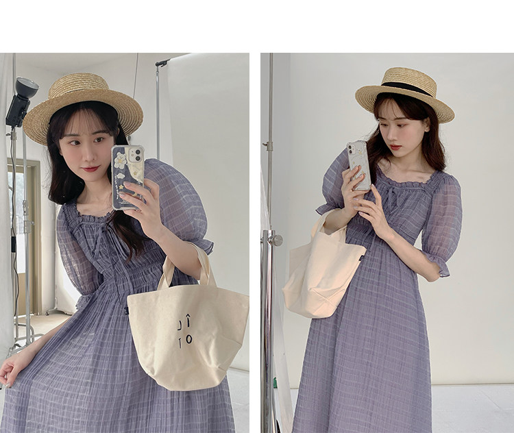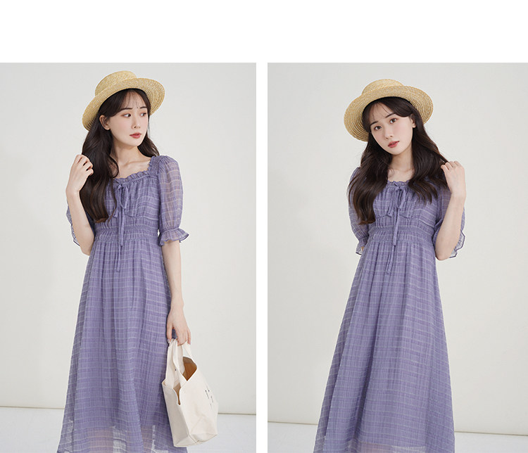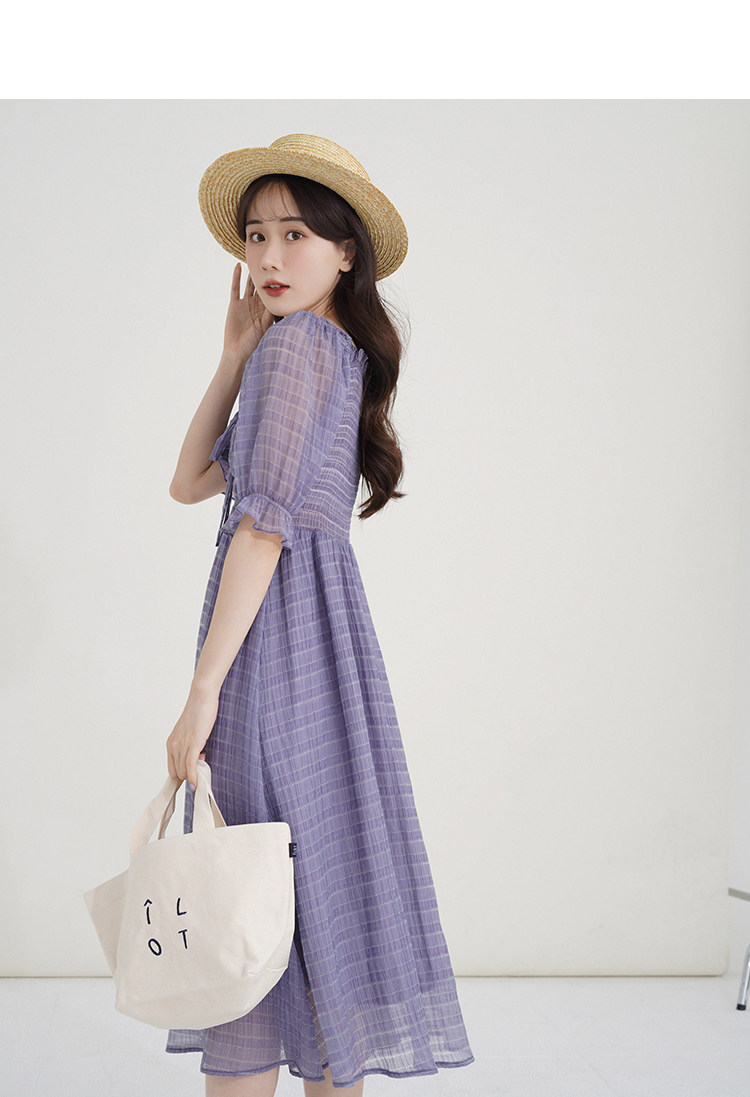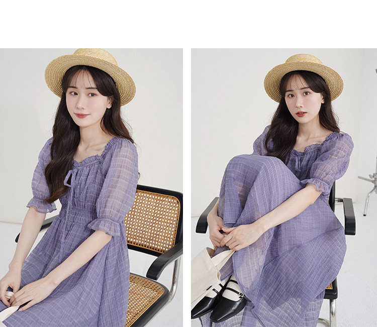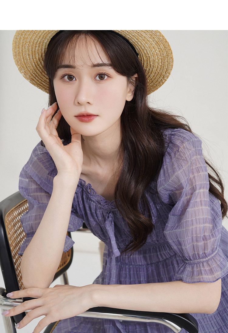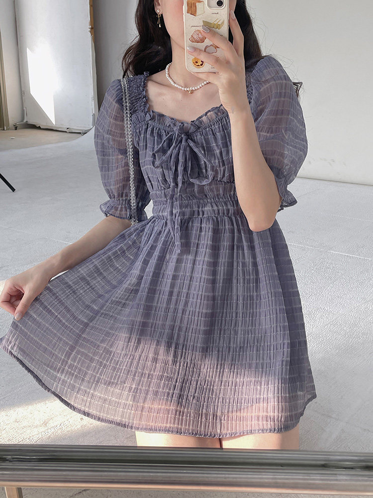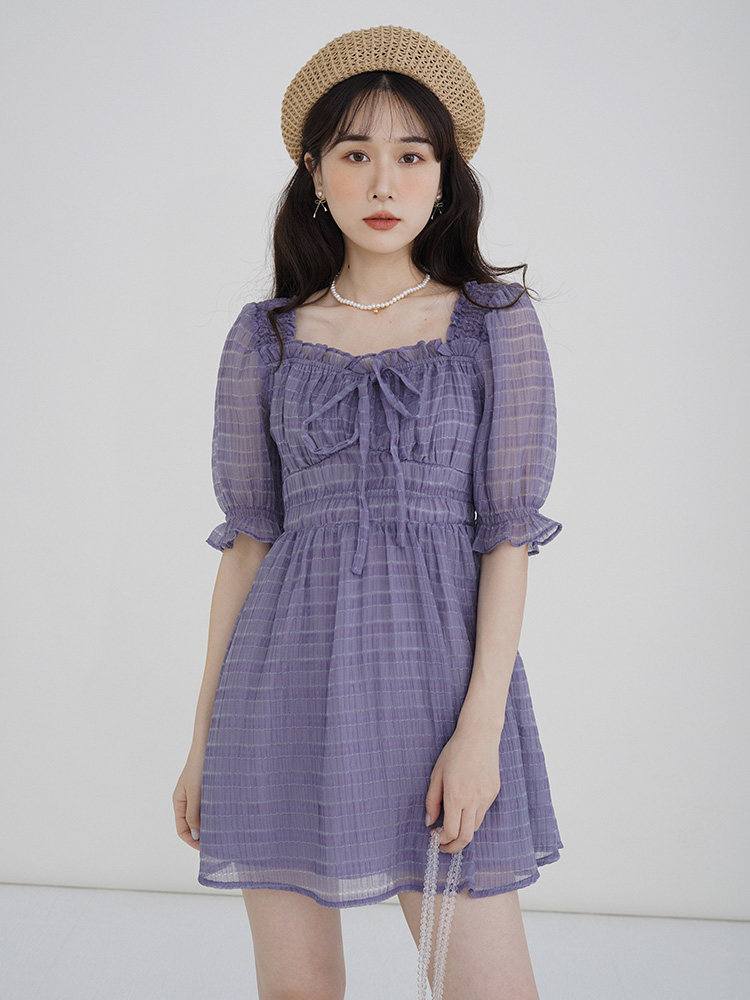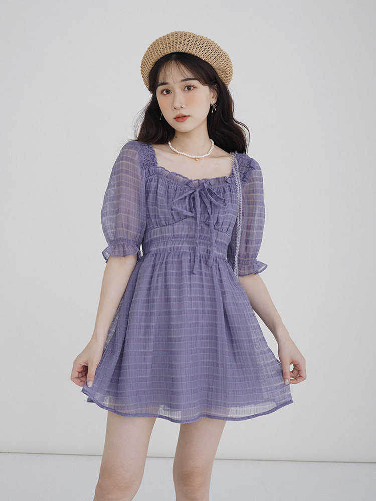 Спящий кролик нежный туман, фиолетовое пузырьковое платье рукава, летняя ярмарка сетей, талия