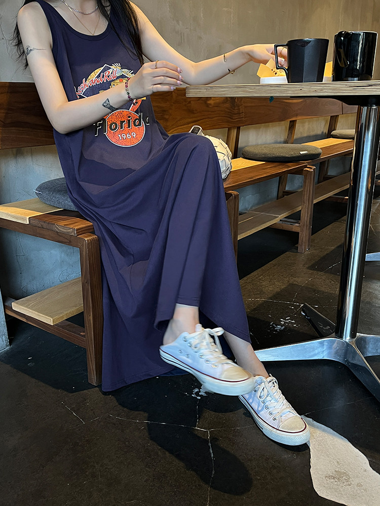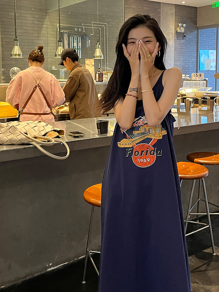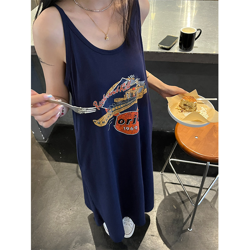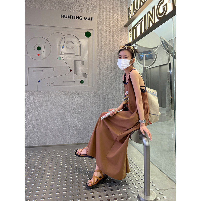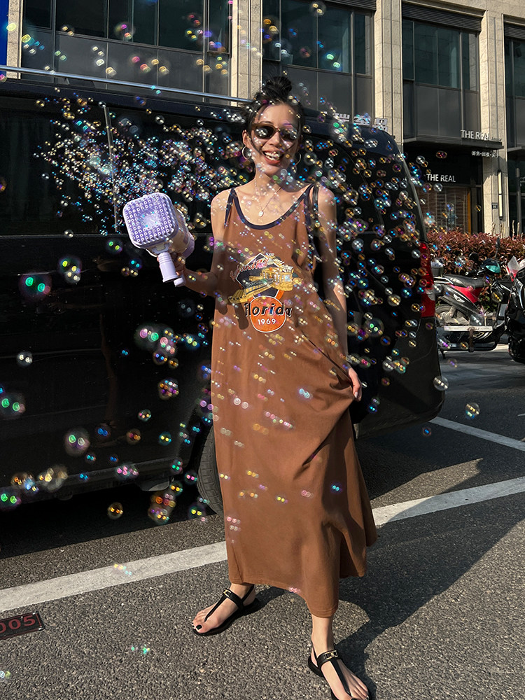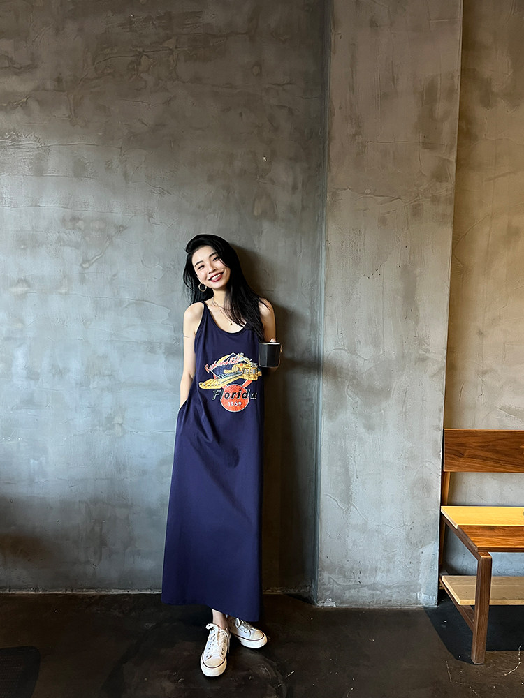 Ретро платье-комбинация, летнее платье с рукавами без рукавов, юбка, в американском стиле, в цветочек, оверсайз