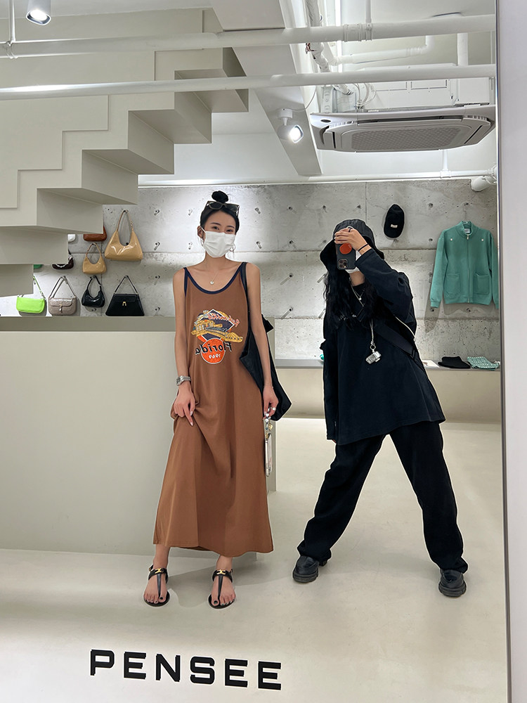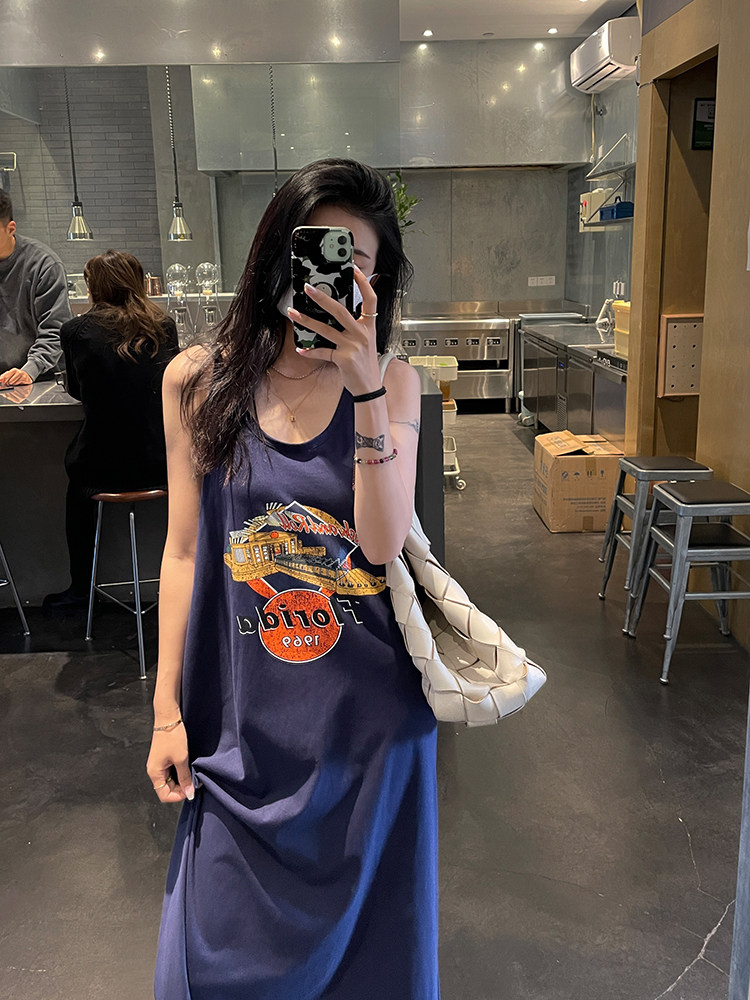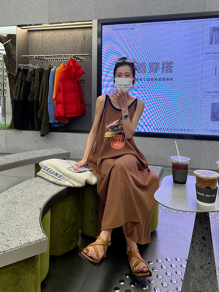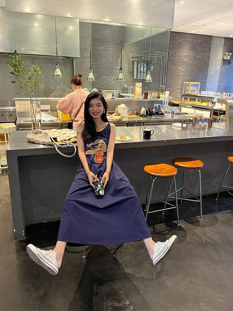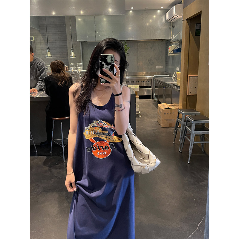 Ретро платье-комбинация, летнее платье с рукавами без рукавов, юбка, в американском стиле, в цветочек, оверсайз