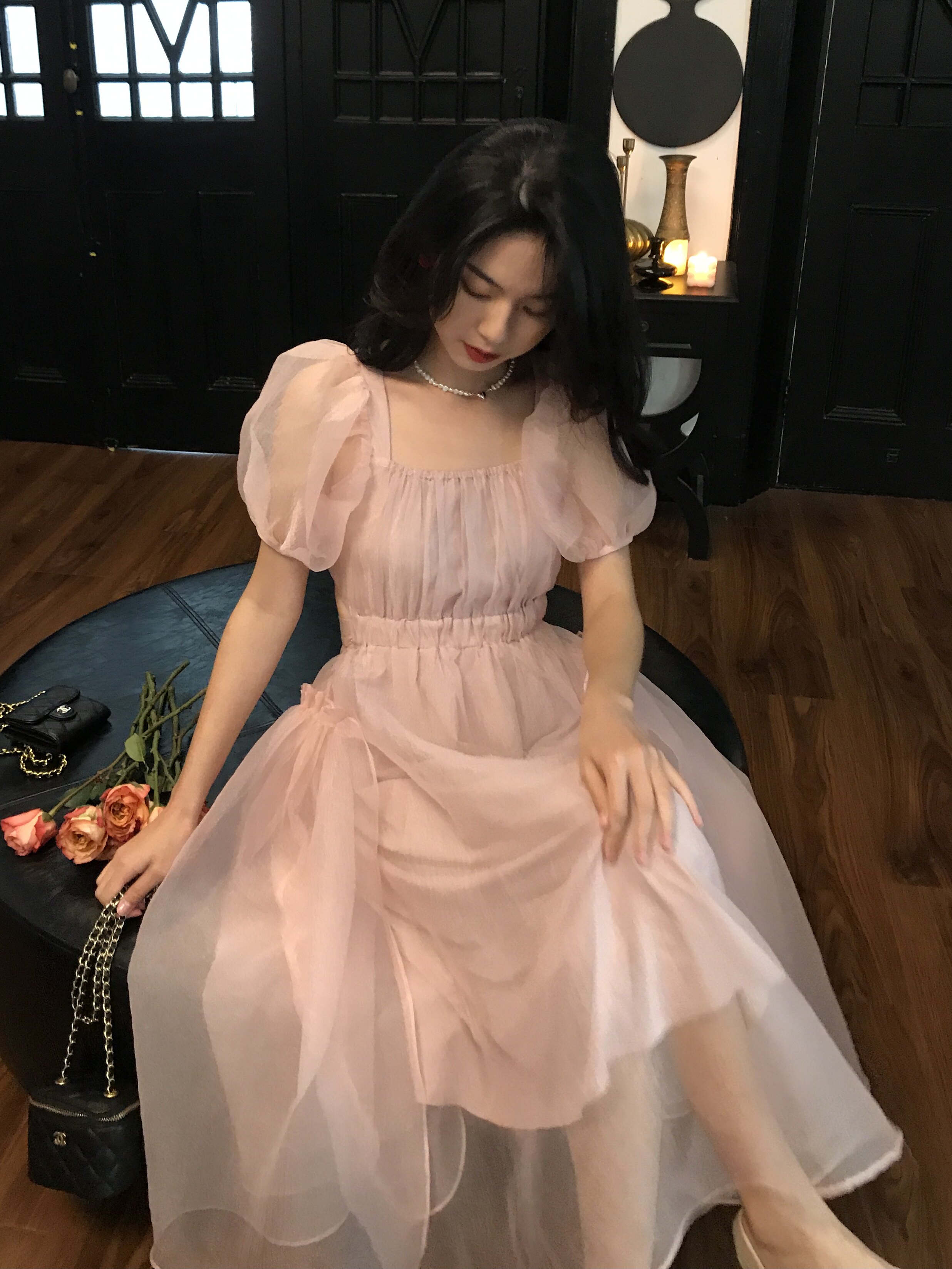 Ретро платье, дизайнерская юбка, наряд маленькой принцессы, французский стиль, тренд сезона, рукава фонарики