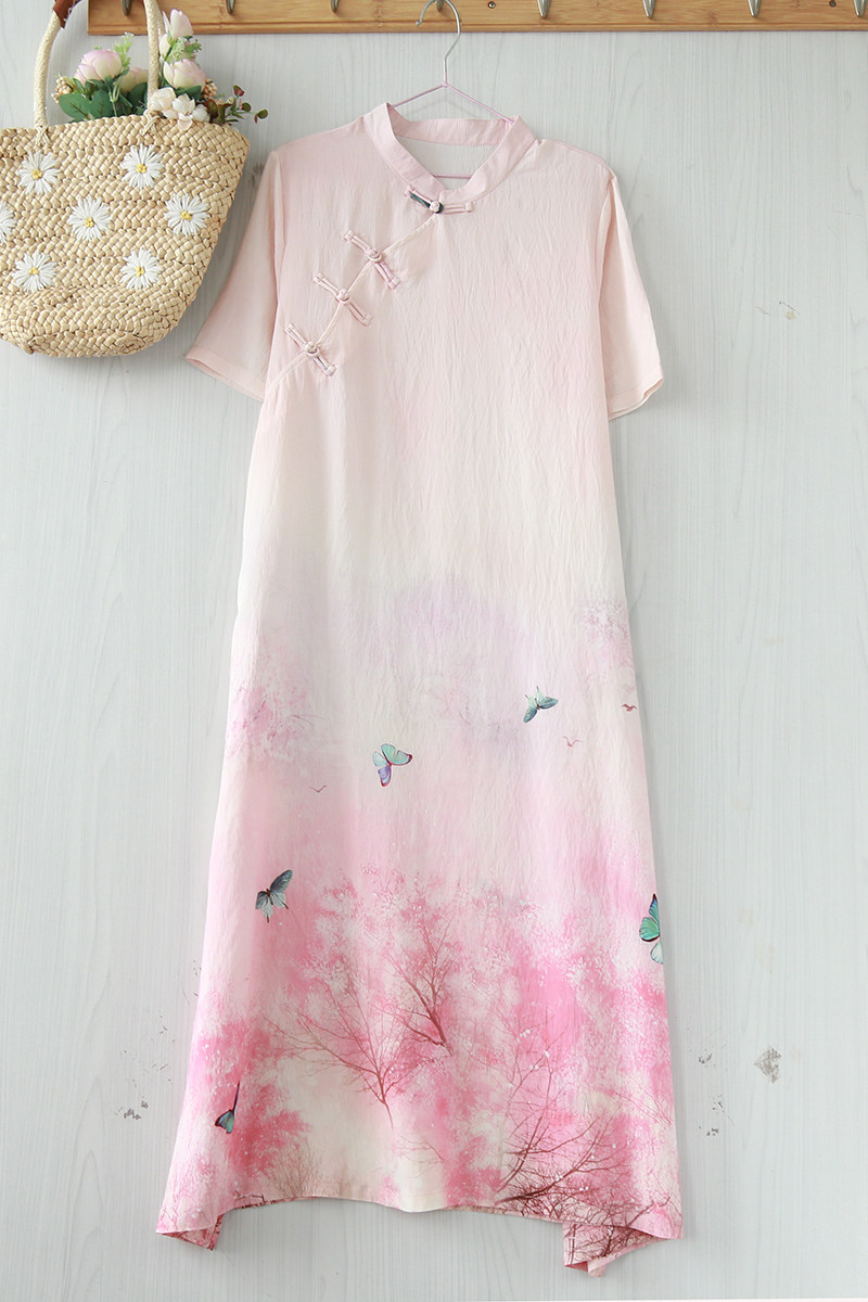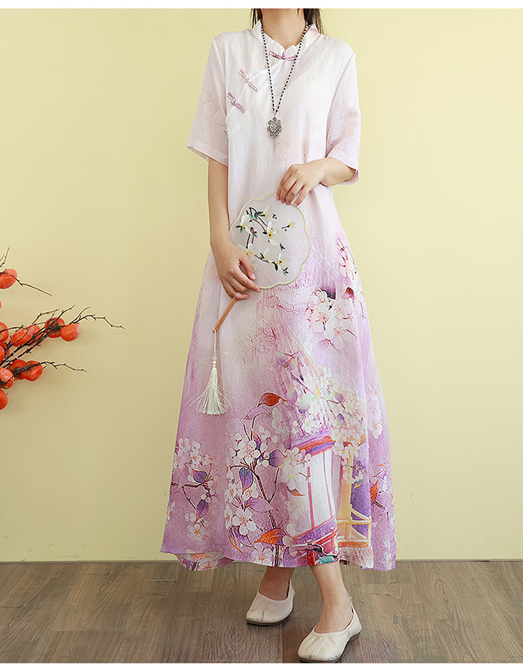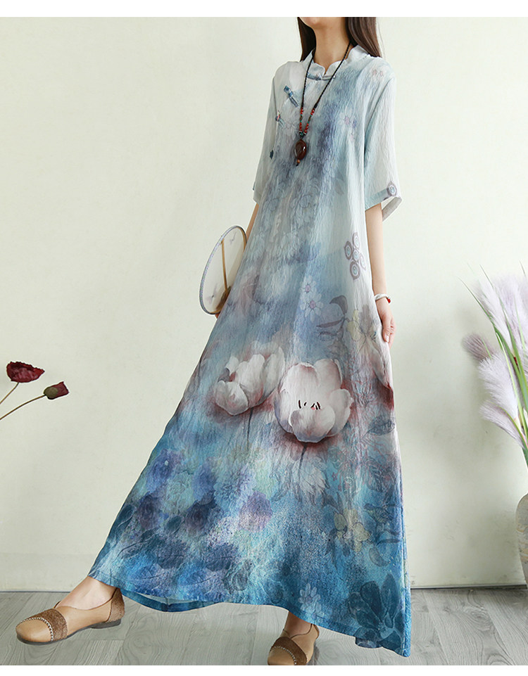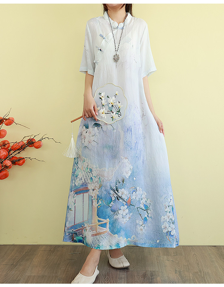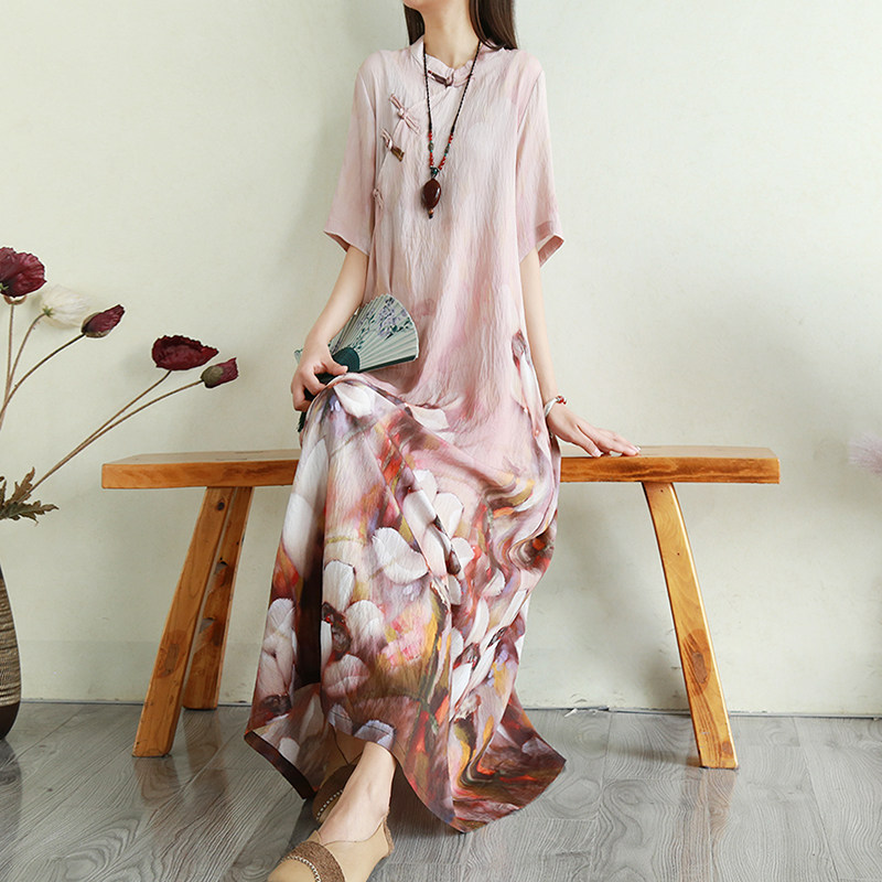 Летнее ципао, длинная юбка, китайский стиль, свободный крой