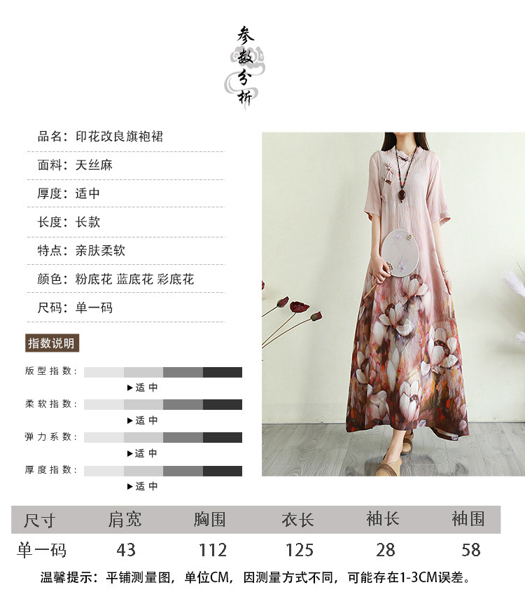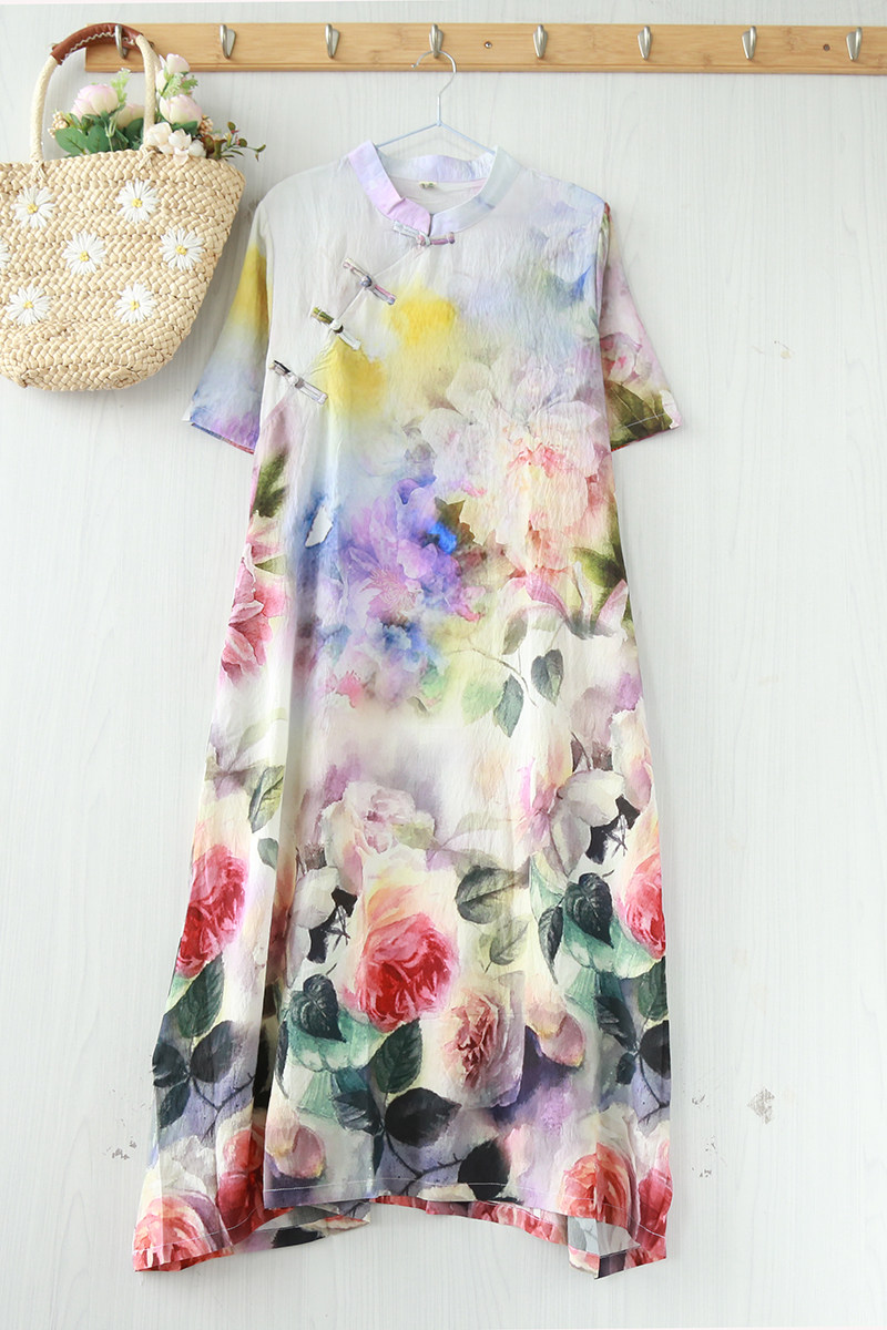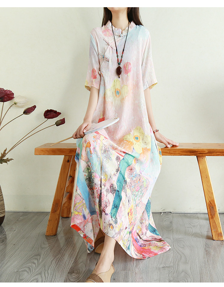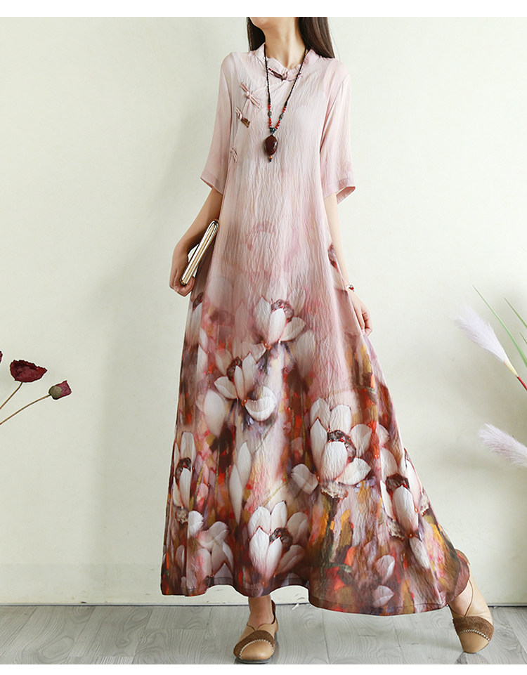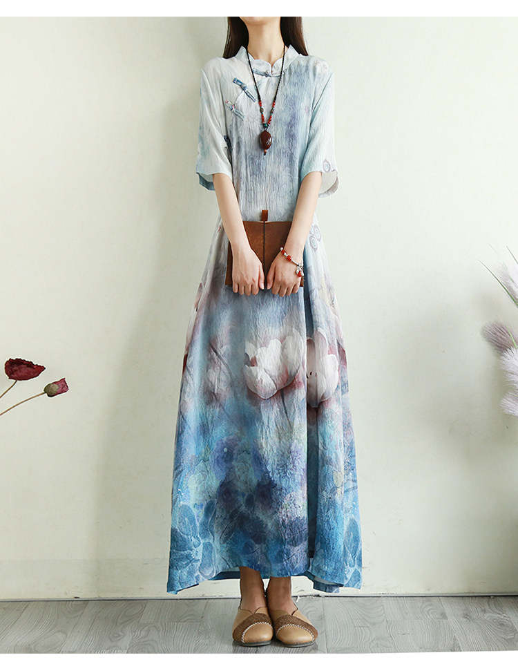 Летнее ципао, длинная юбка, китайский стиль, свободный крой
