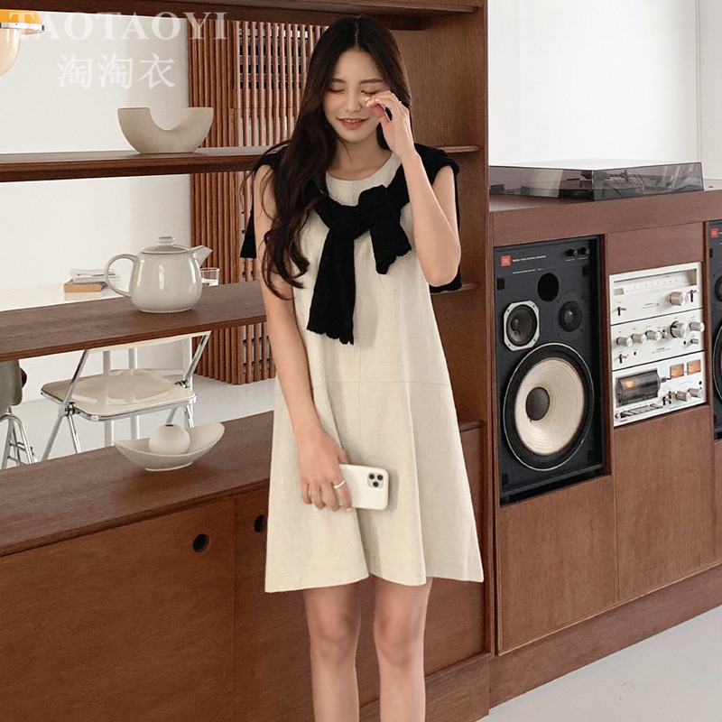 Ретро платье без рукавов без рукавов, дизайнерская юбка, французский ретро стиль, свободный крой, с рукавом, тренд сезона, подходит для подростков, А-силуэт
