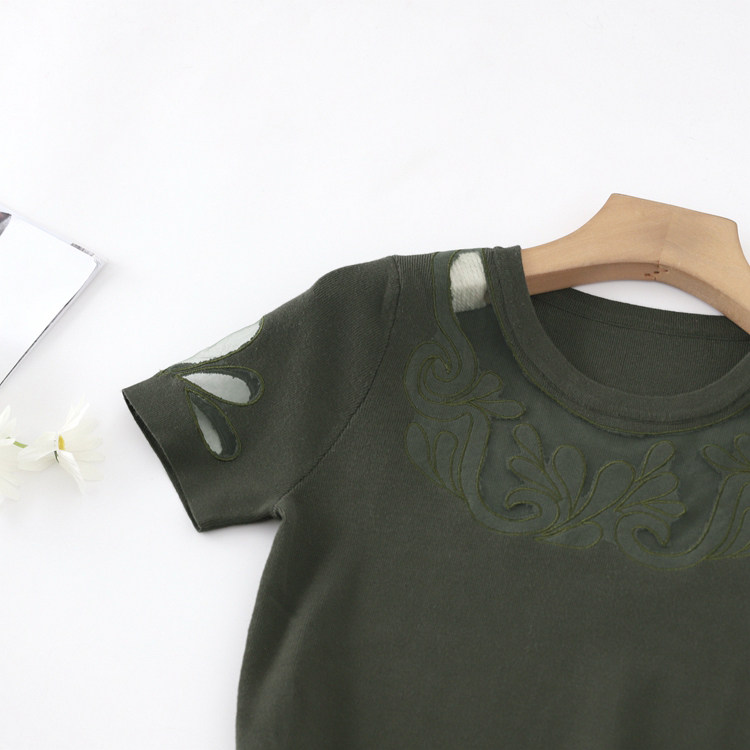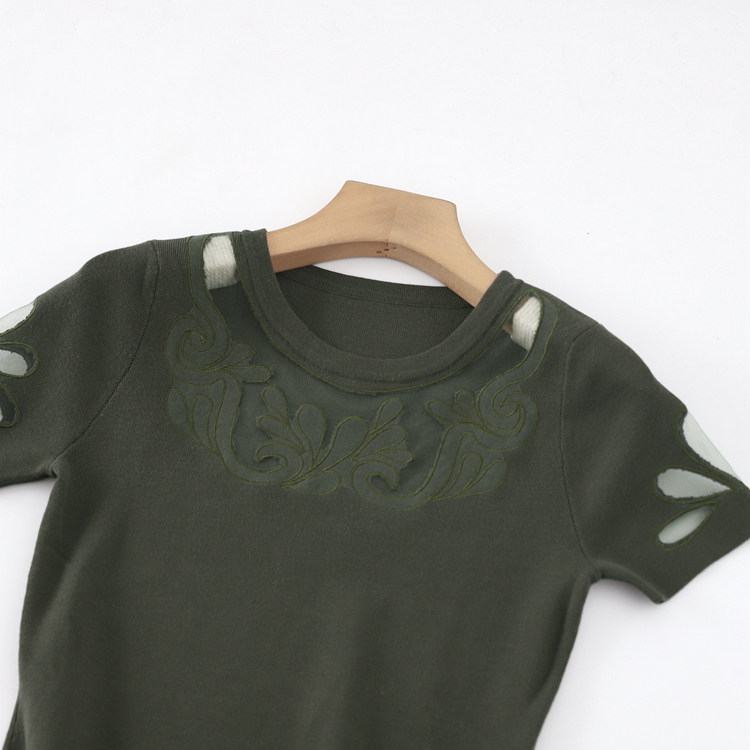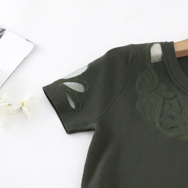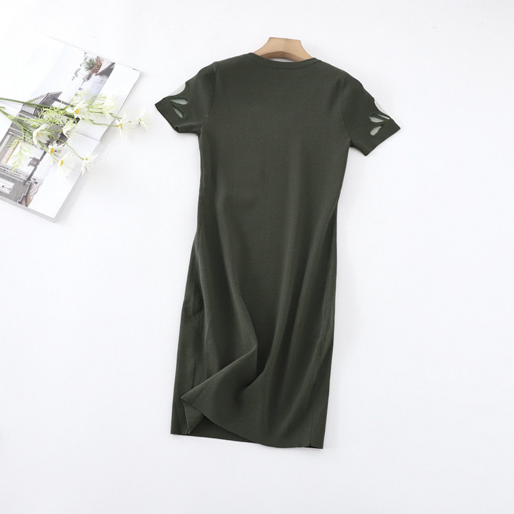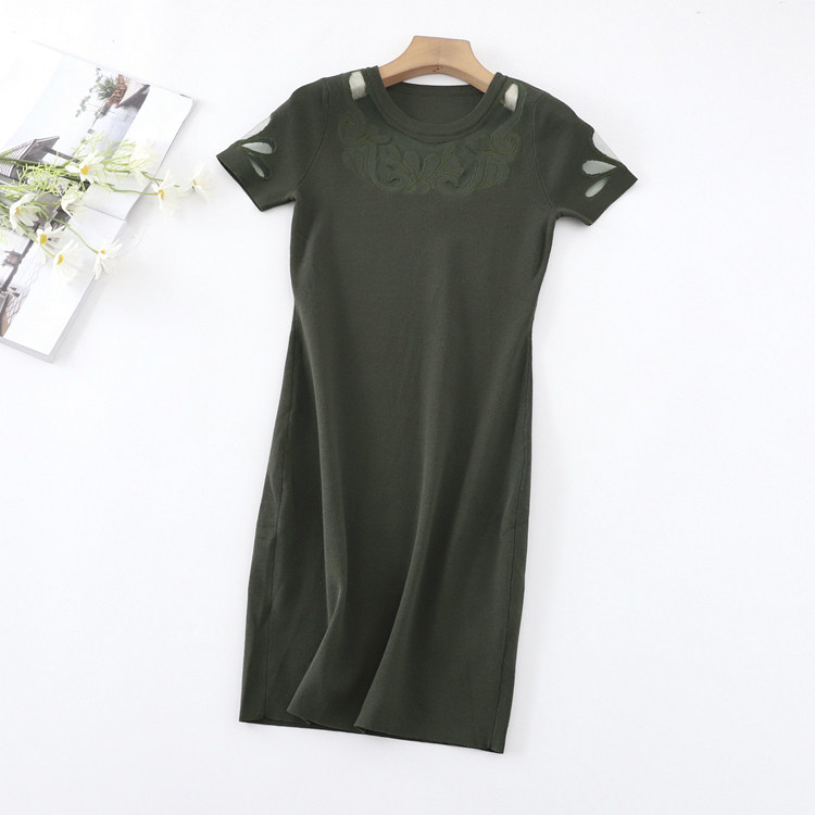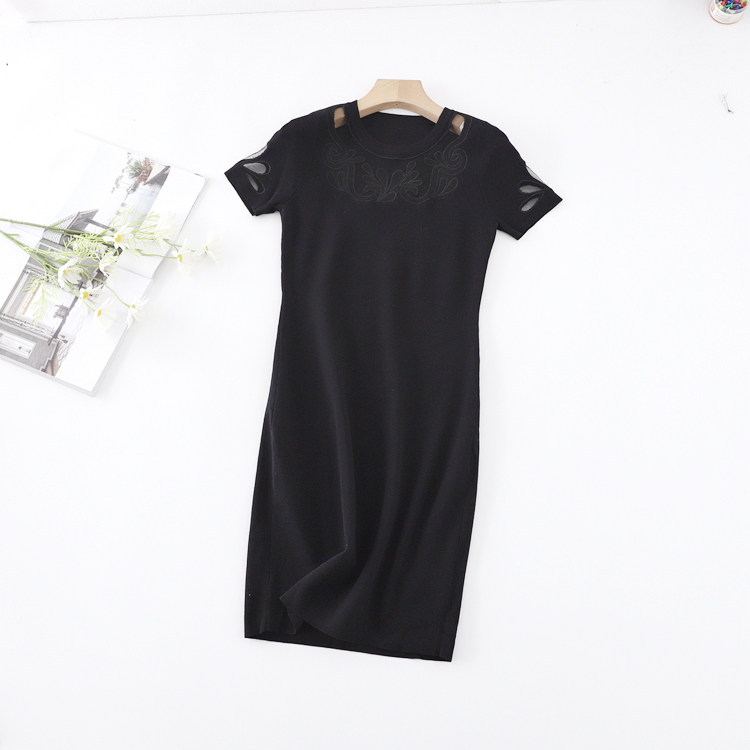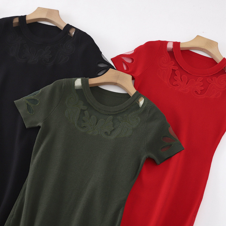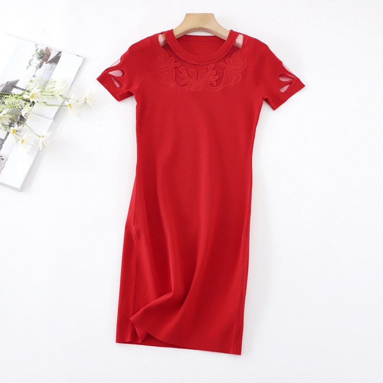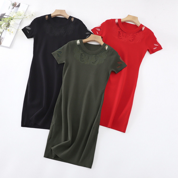 Эластичная трикотажная приталенная юбка, платье, короткий рукав, с акцентом на бедрах