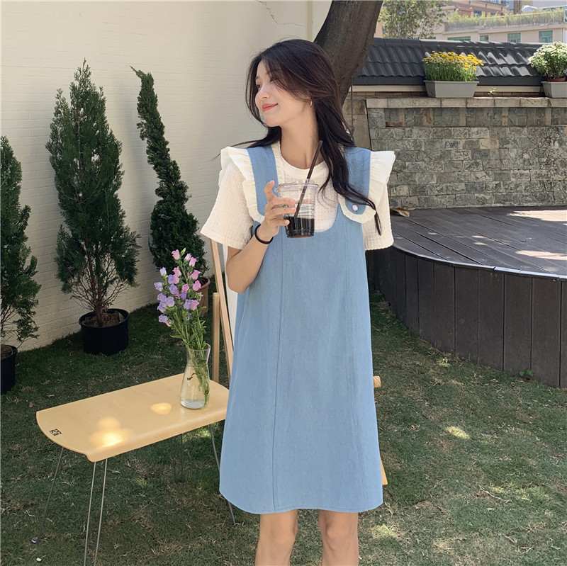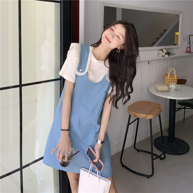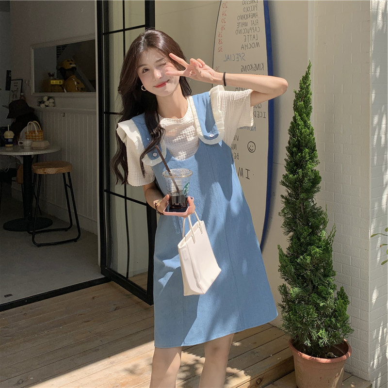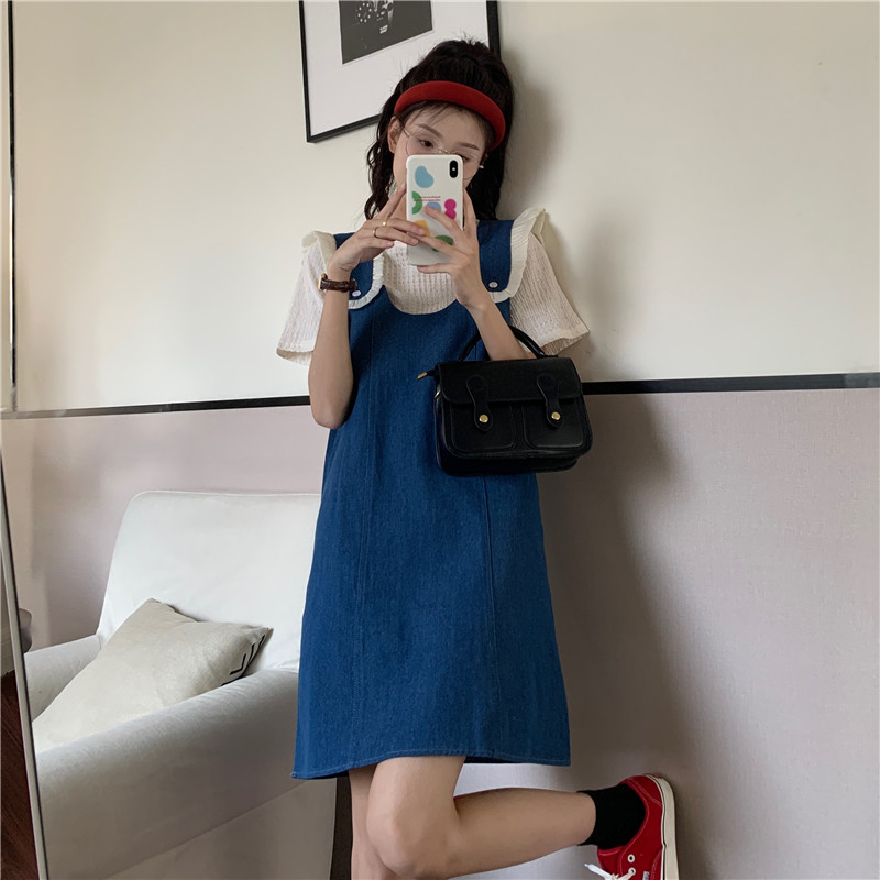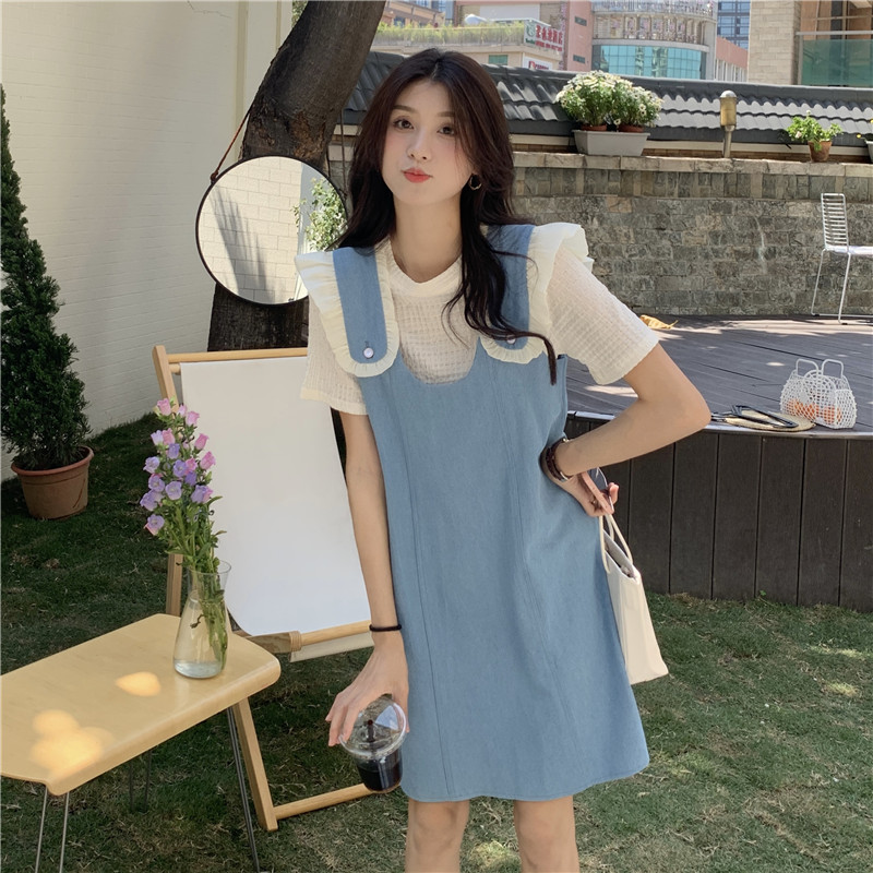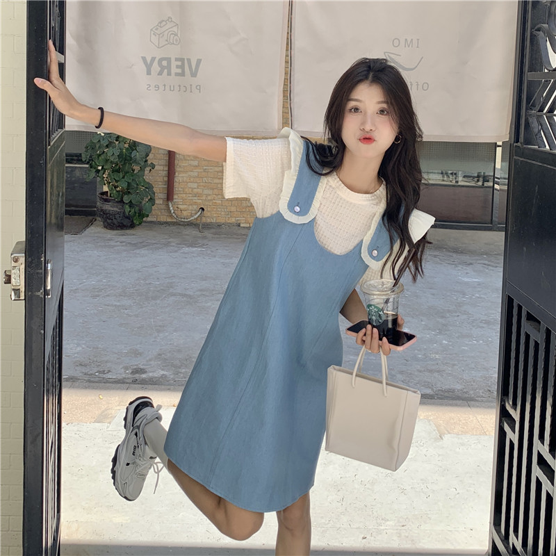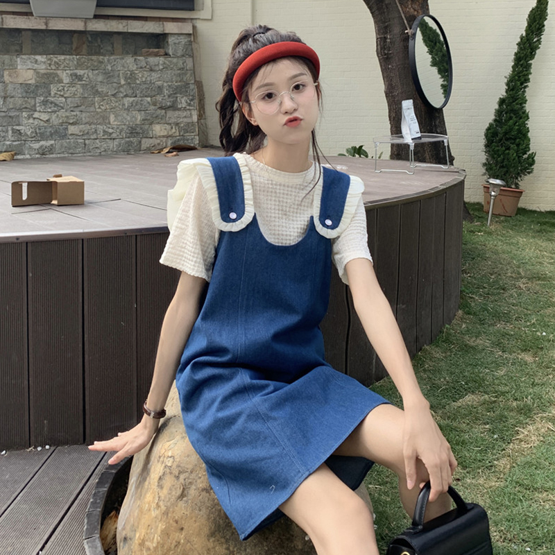 Летние джинсовые подтяжки, платье, комплект, коллекция 2023, изысканный стиль