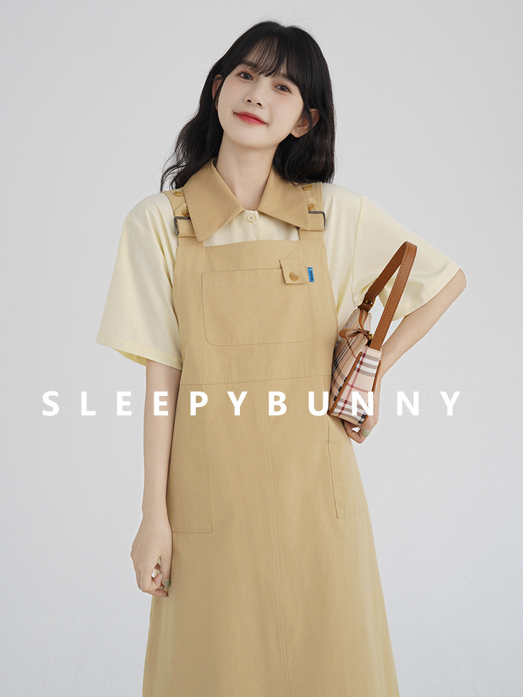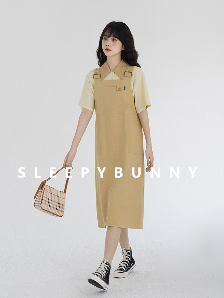 Летнее платье, милая свежая длинная юбка для отдыха, свободный прямой крой, простой и элегантный дизайн, оверсайз, средней длины