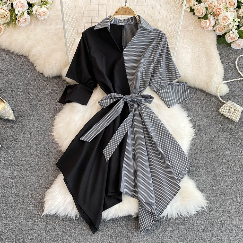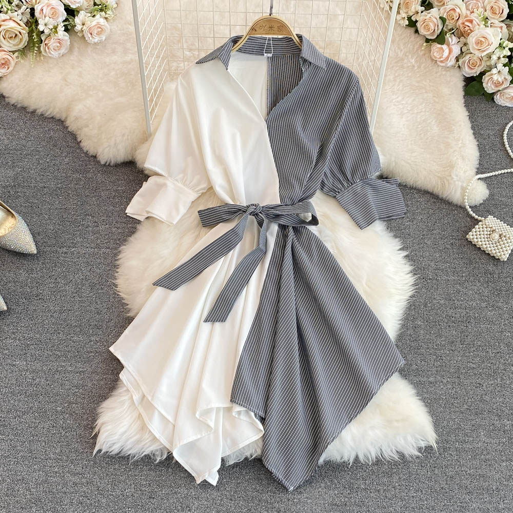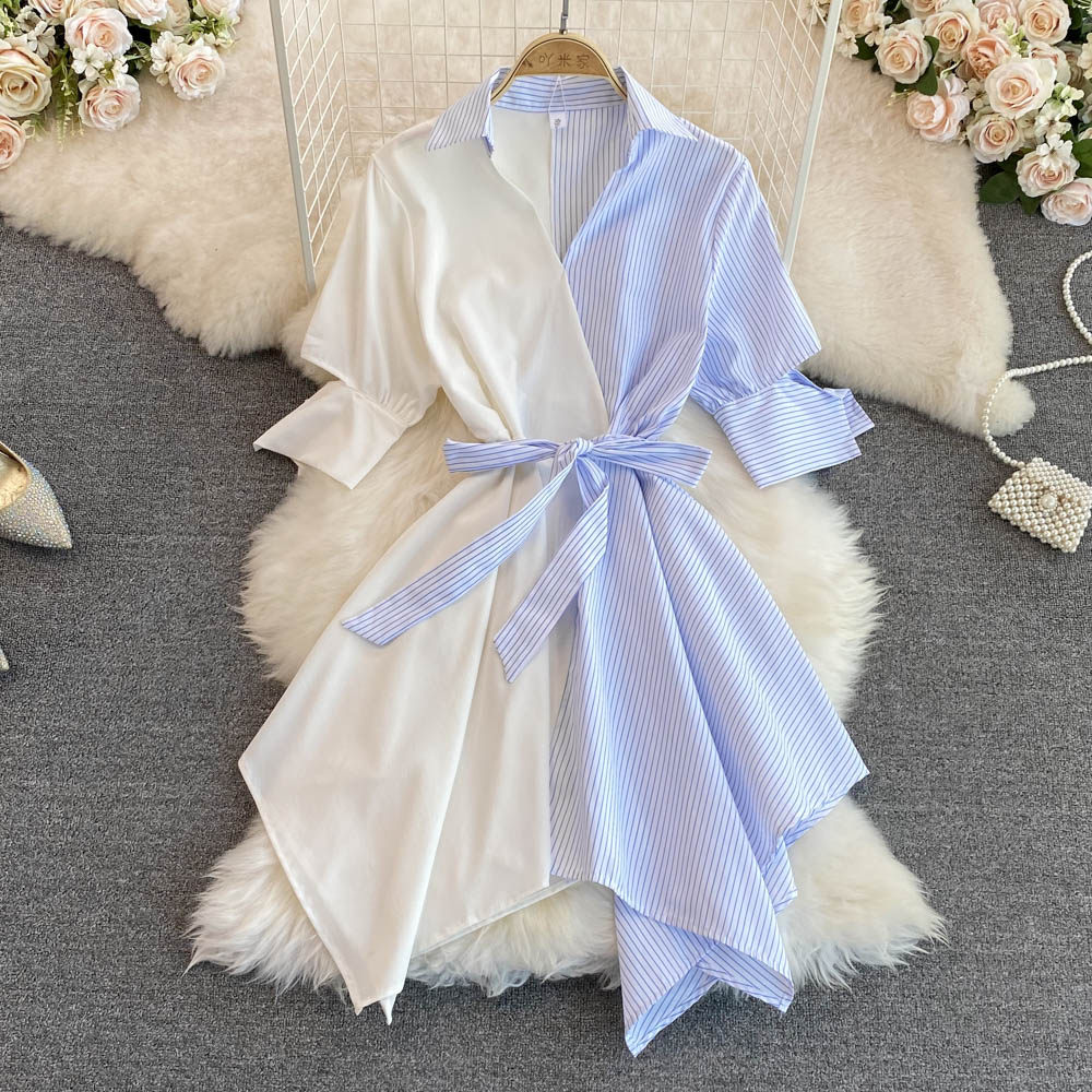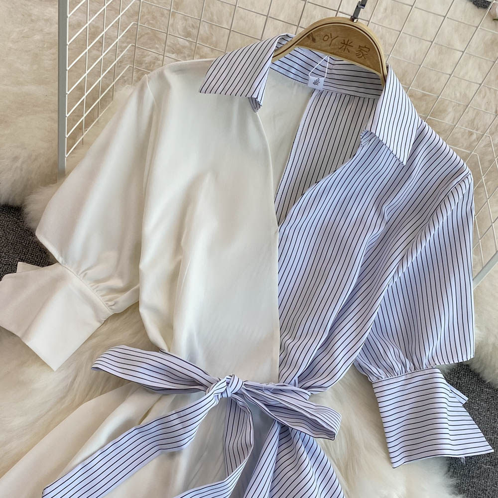 Платье, юбка, летняя одежда, приталенный корсет, длинная рубашка, в корейском стиле, средней длины