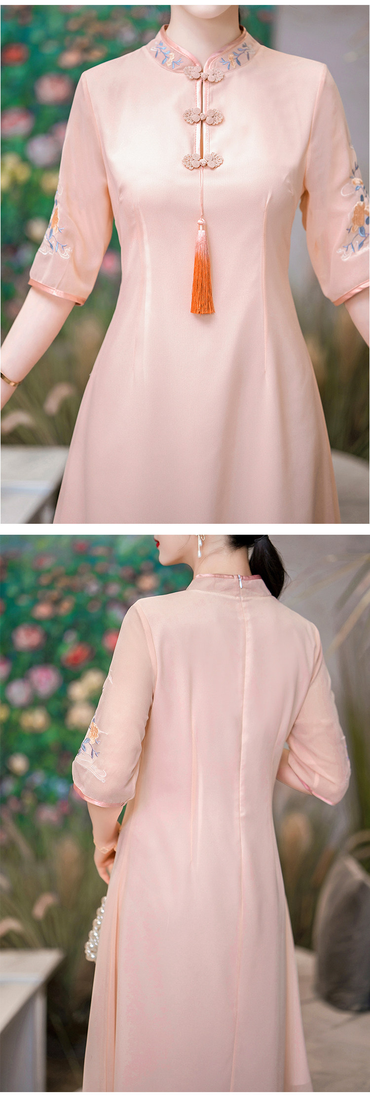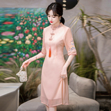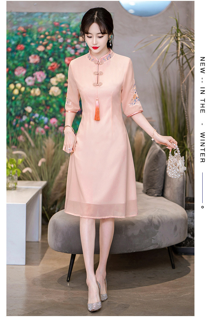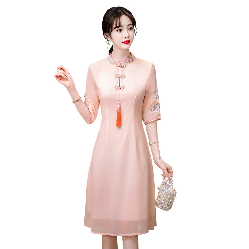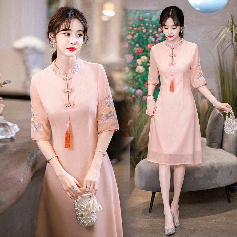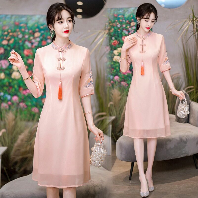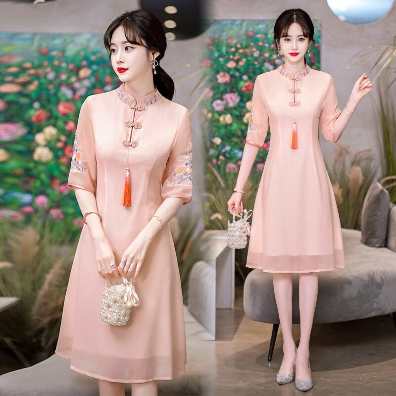 Летнее шифоновое ципао, цветное платье большого размера, цветная длинная юбка, с вышивкой, облегающий крой, по фигуре, А-силуэт