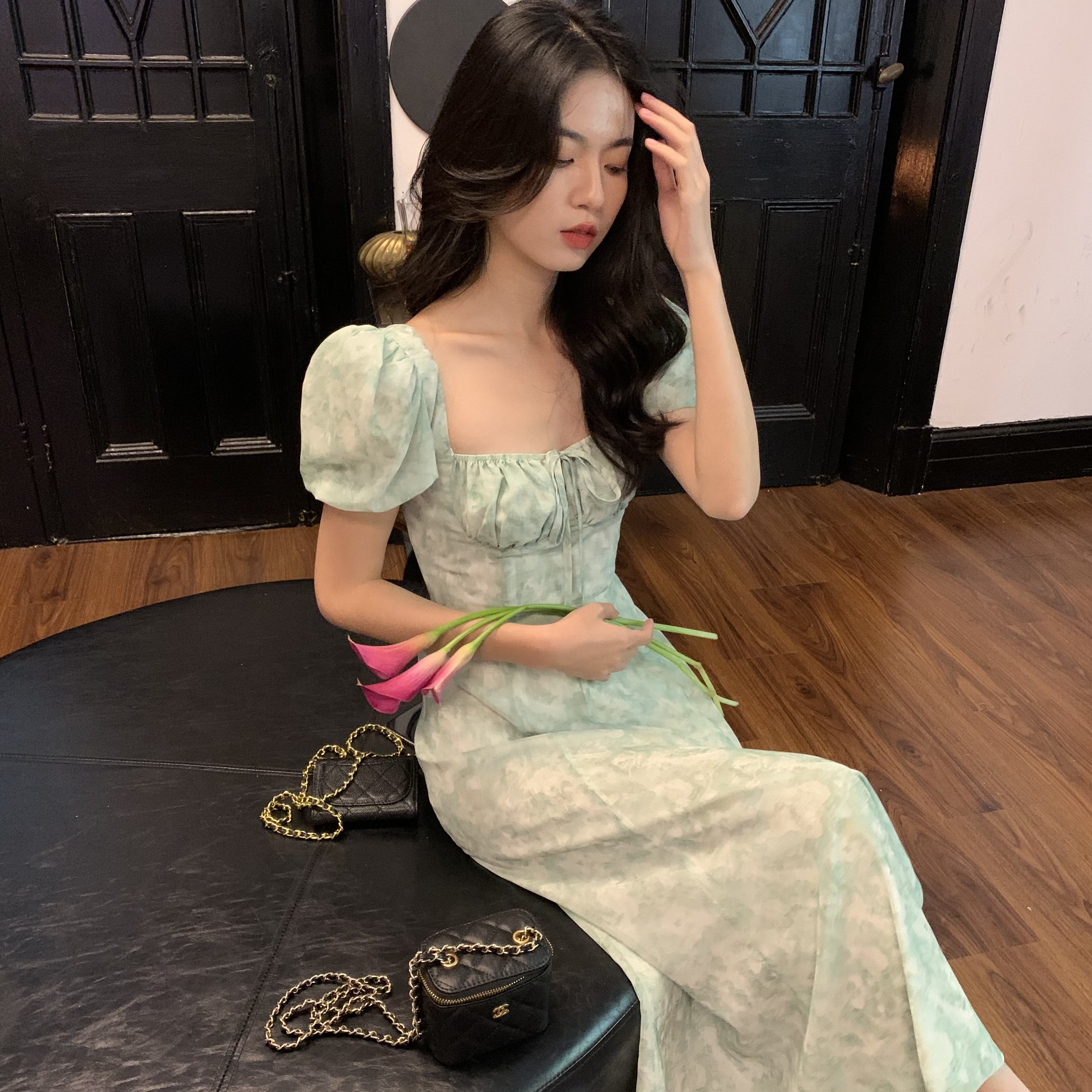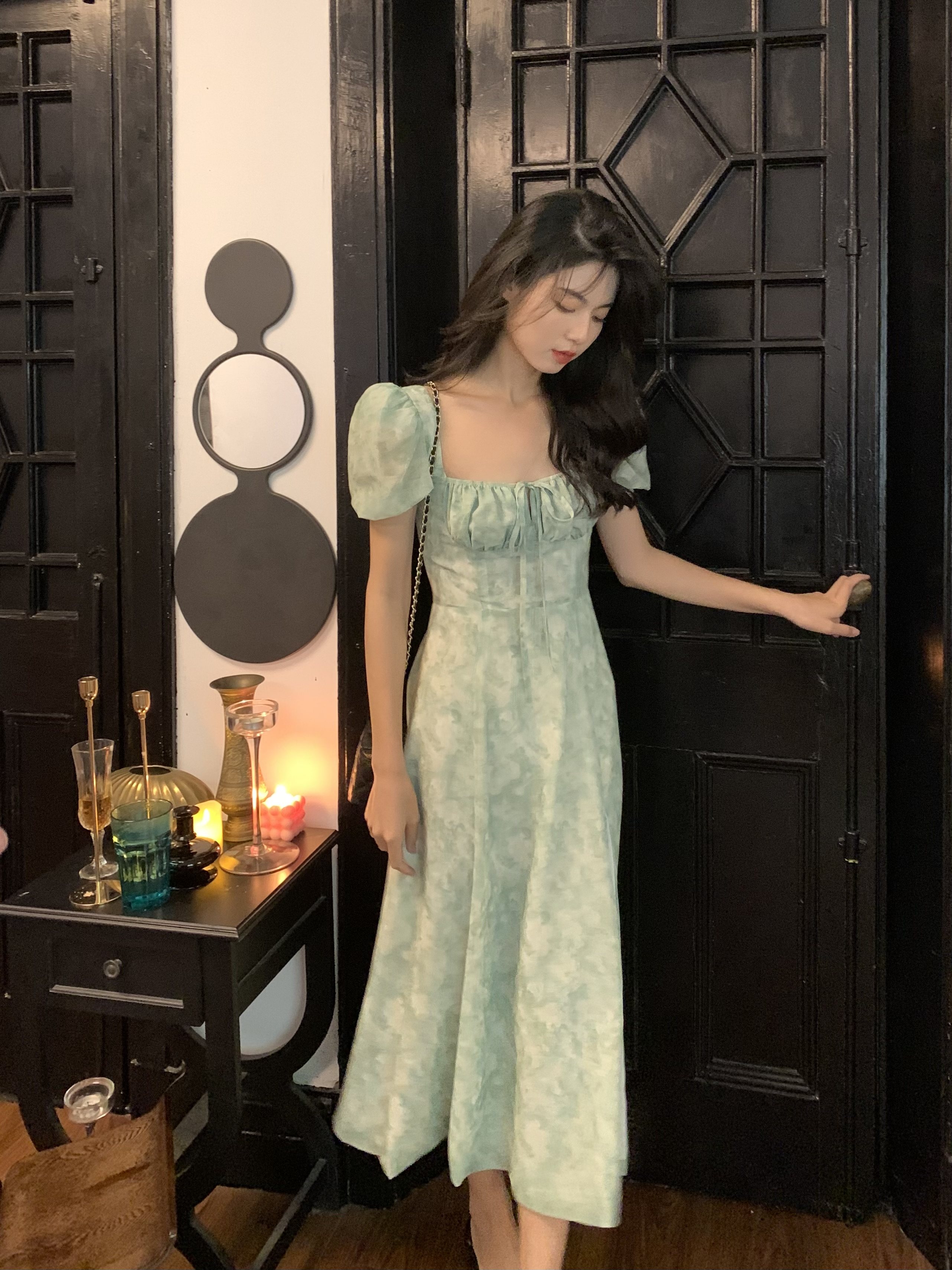 Ретро приталенное платье, корсет, длинная юбка, французский стиль, квадратный вырез