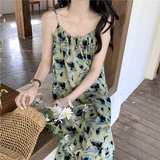 Ретро осеннее платье, длинная юбка, французский ретро стиль, в цветочек, свободный крой