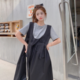 Комплект, подтяжки, летнее платье, юбка для беременных, большой размер, свободный крой, А-силуэт