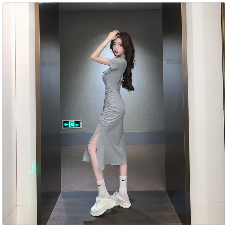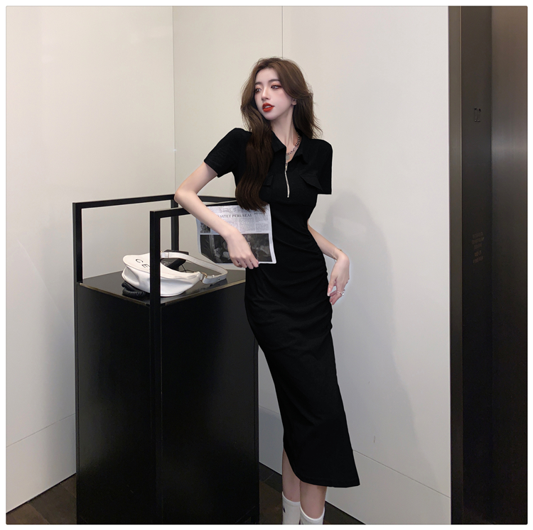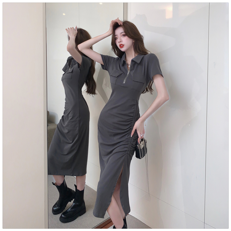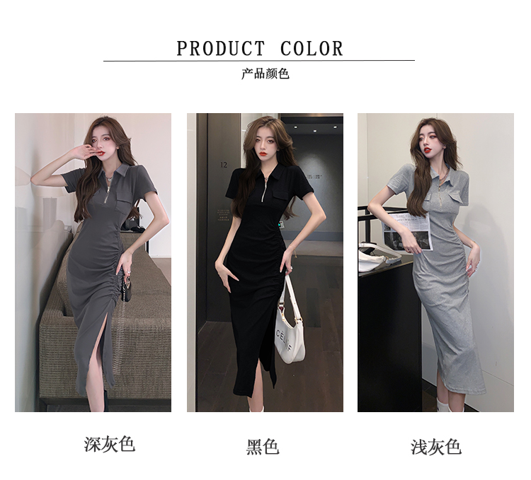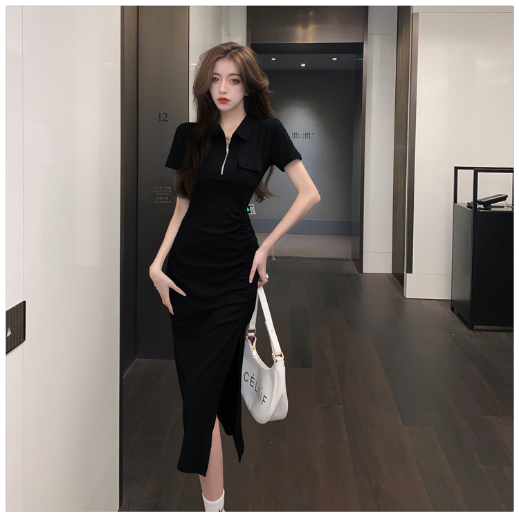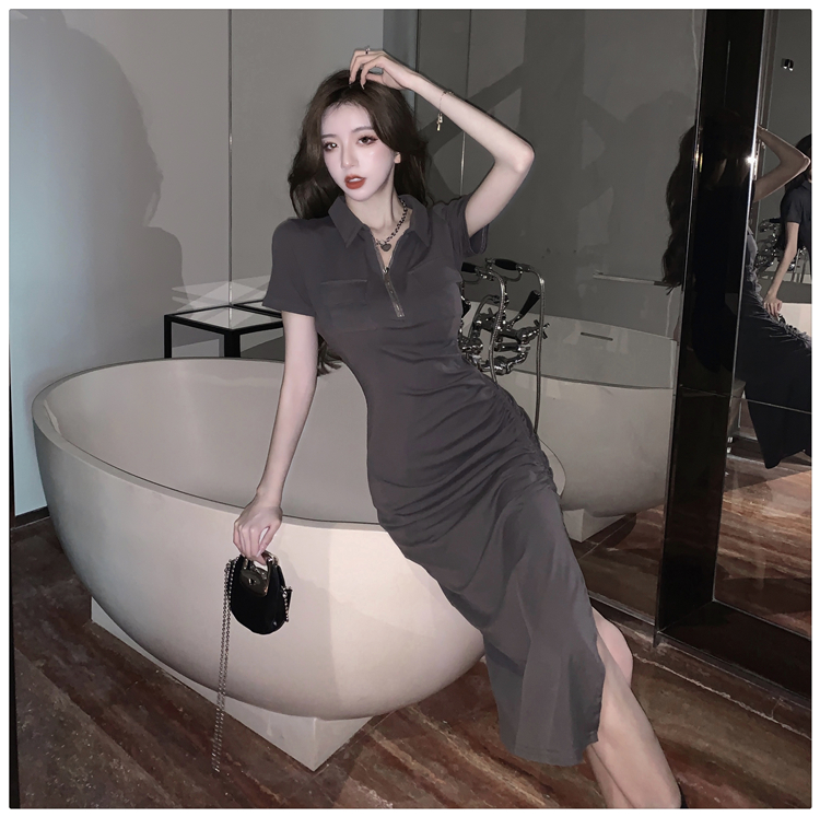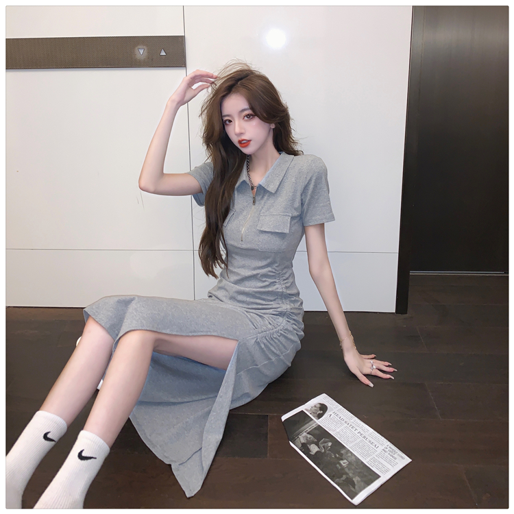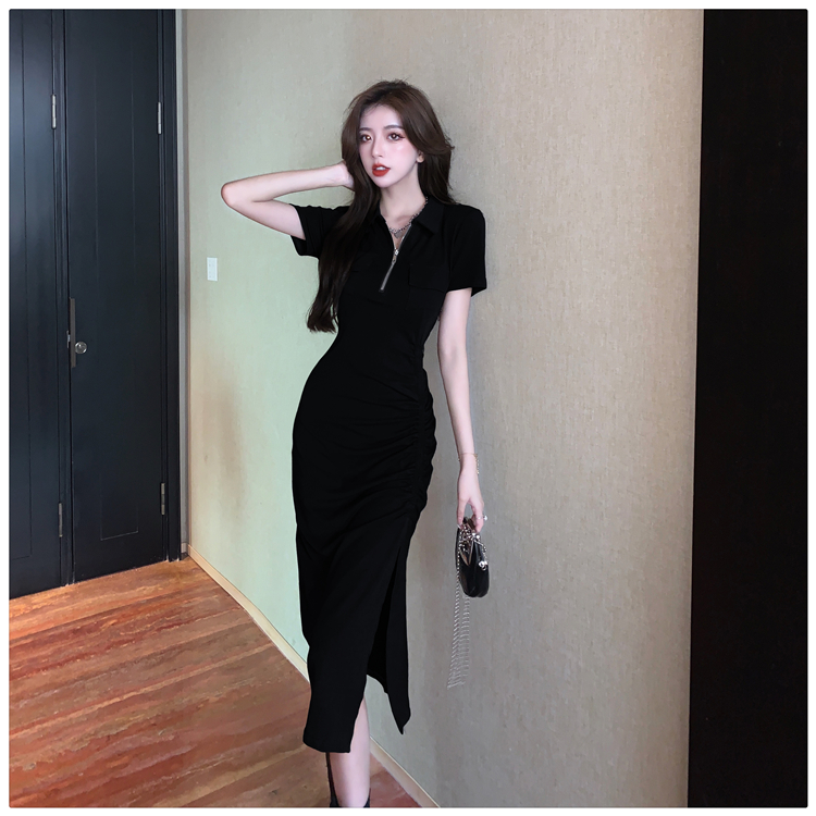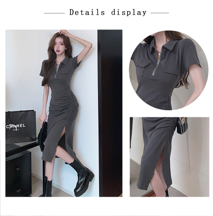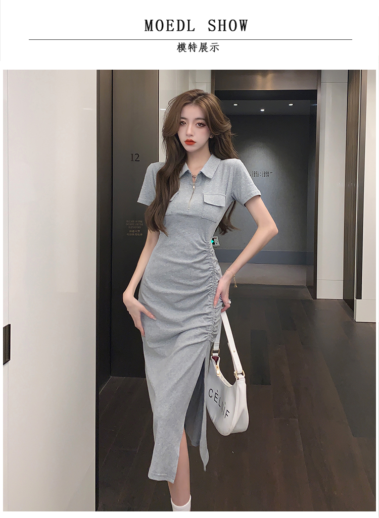 Дизайнерское летнее платье с молнией, сексуальная юбка, тренд сезона, воротник поло, на шнурках, с акцентом на бедрах