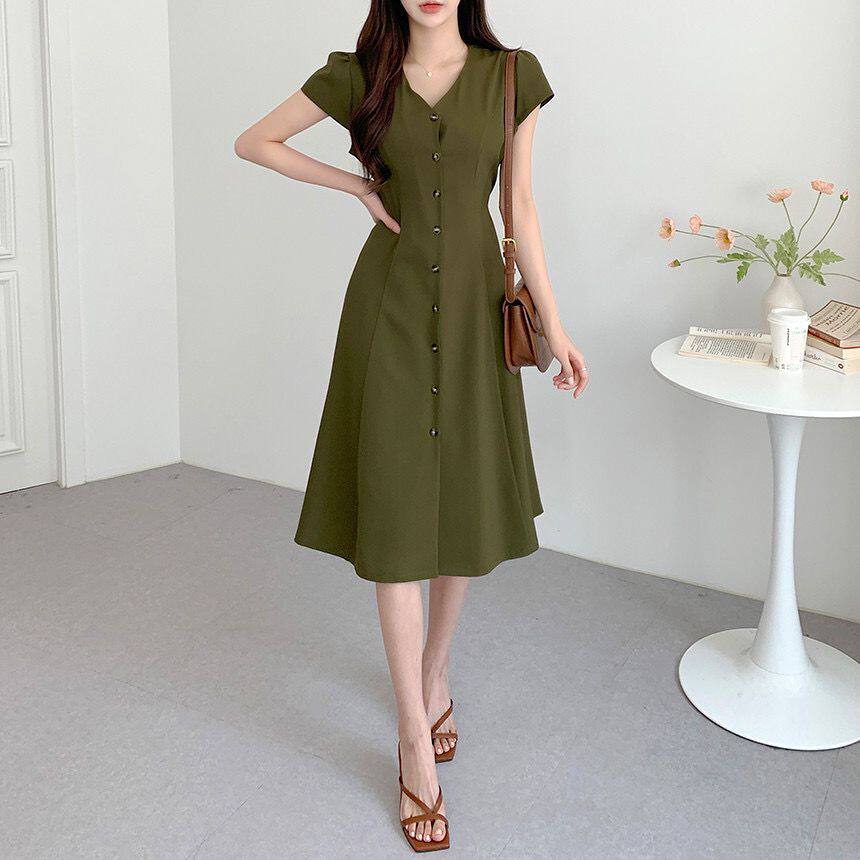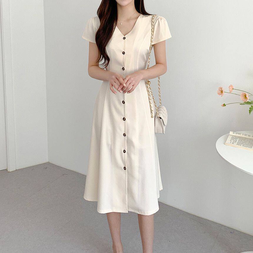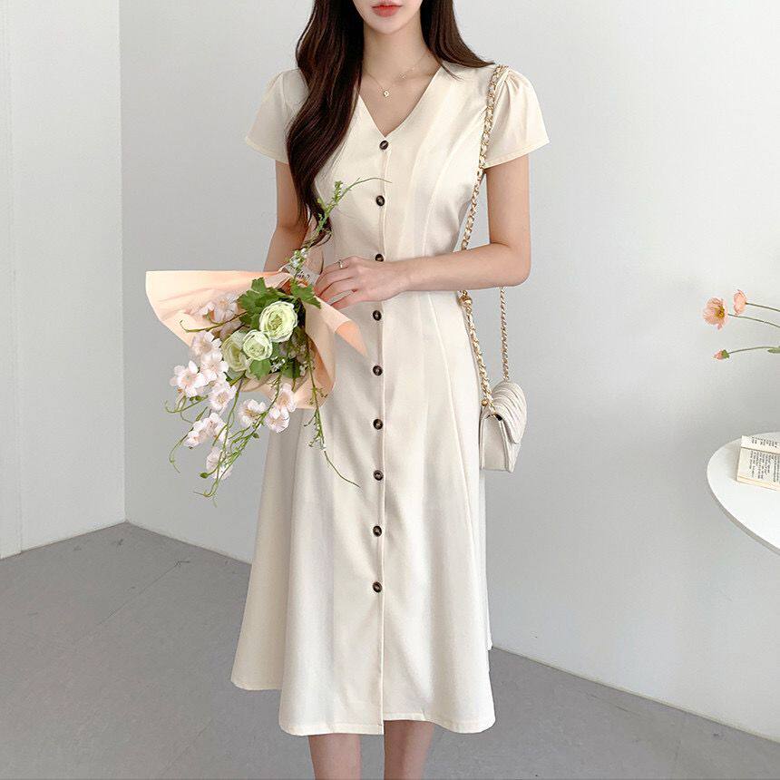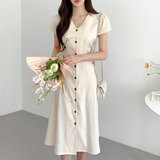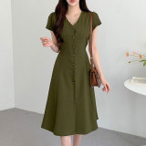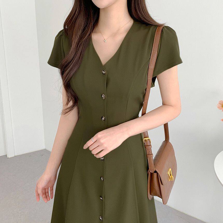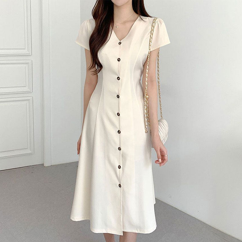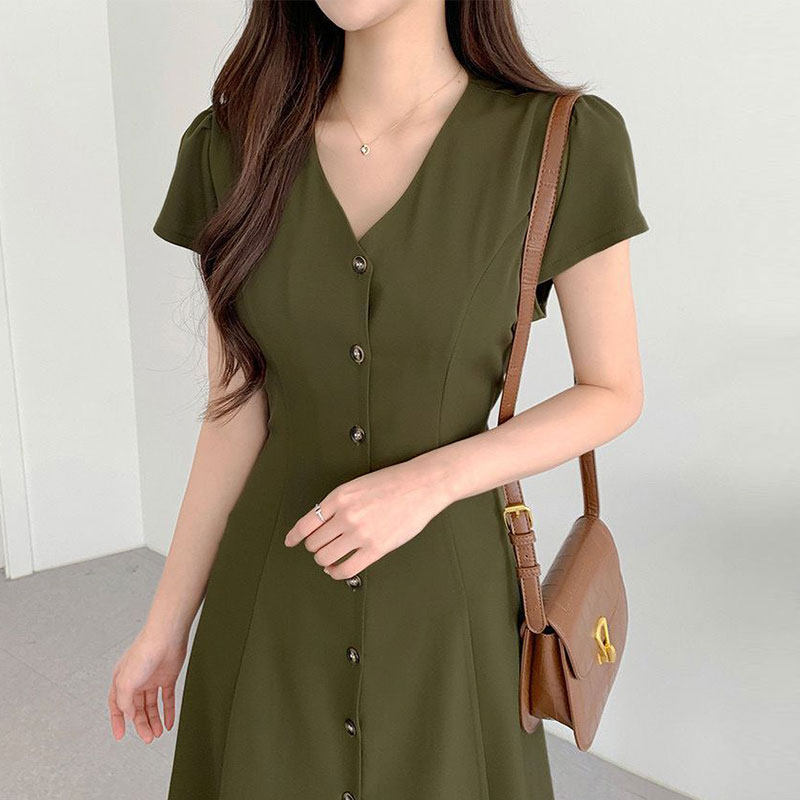 Летний минималистичный приталенный корсет, в корейском стиле, V-образный вырез, А-силуэт