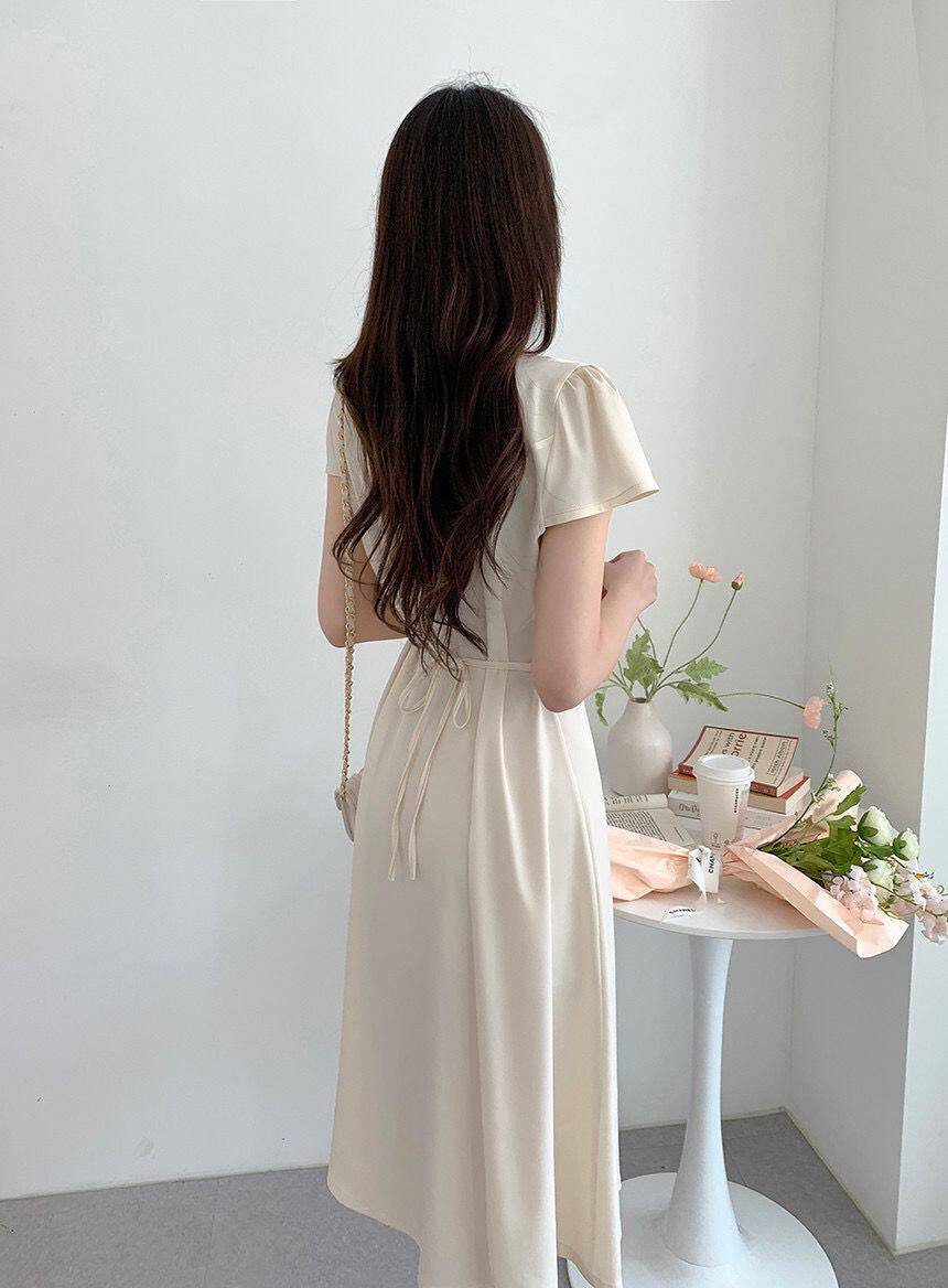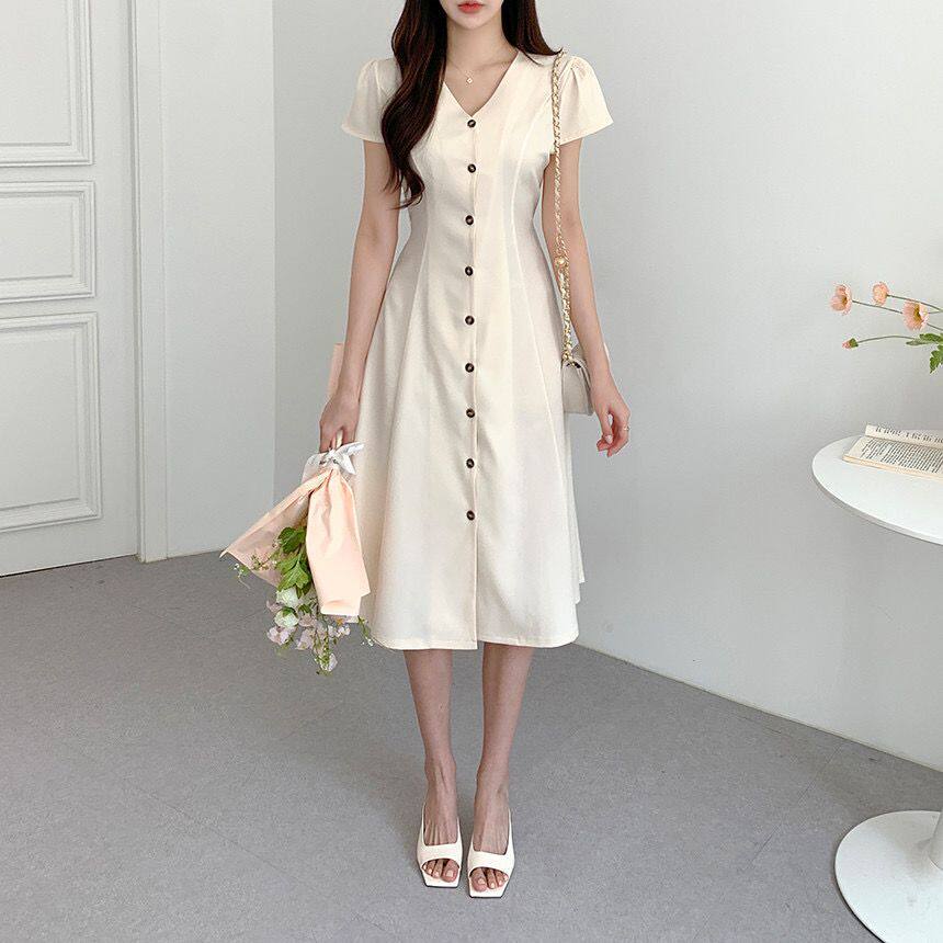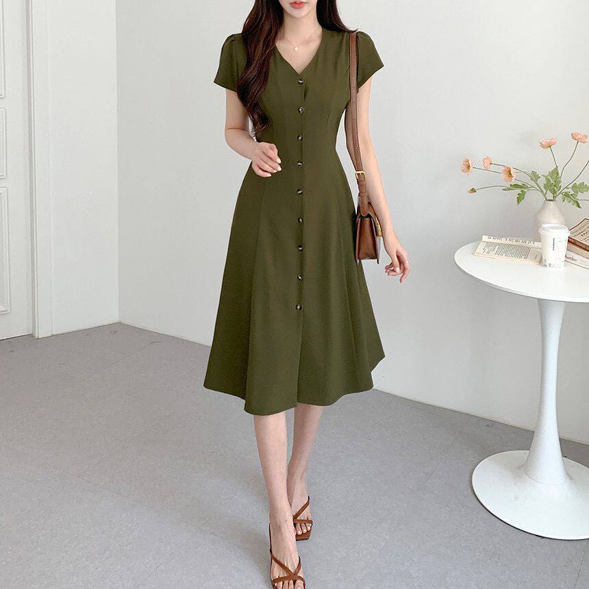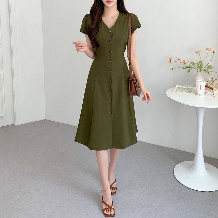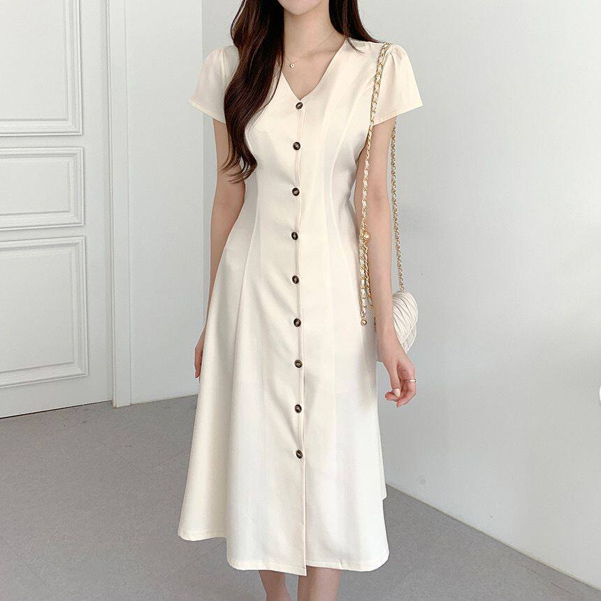 Летний минималистичный приталенный корсет, в корейском стиле, V-образный вырез, А-силуэт