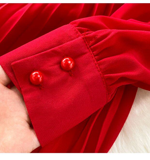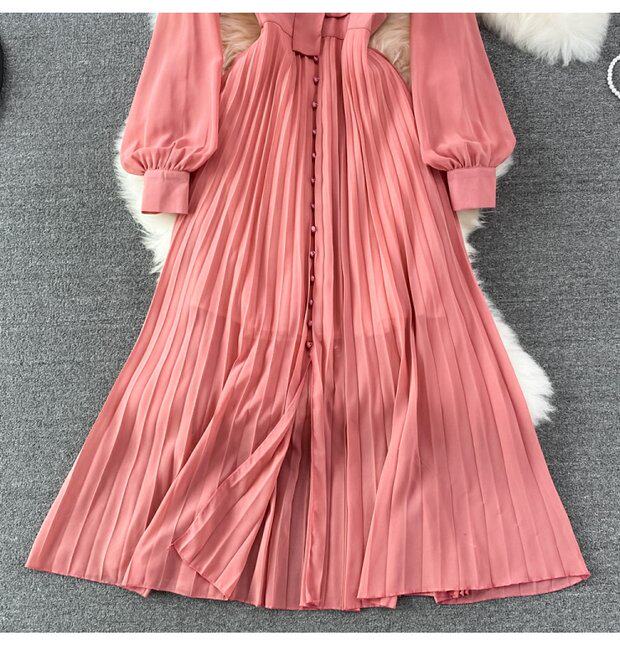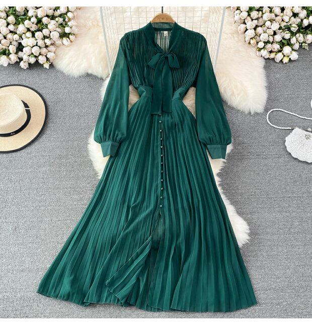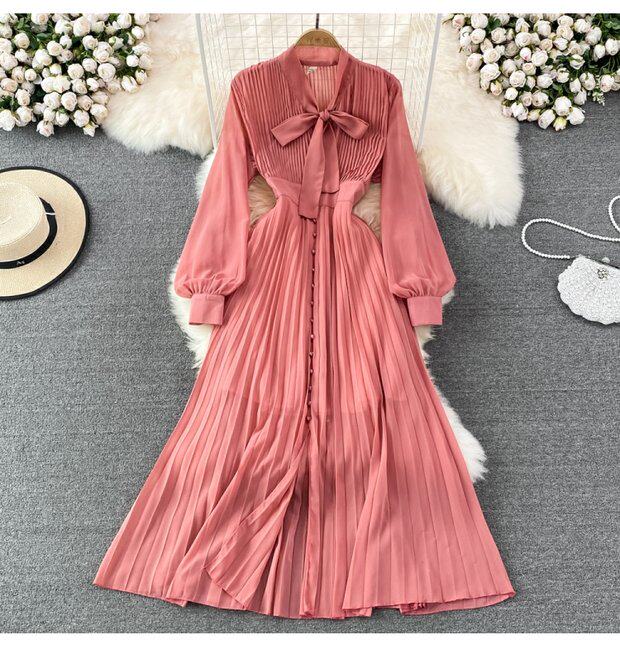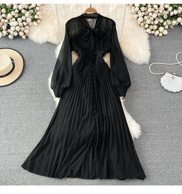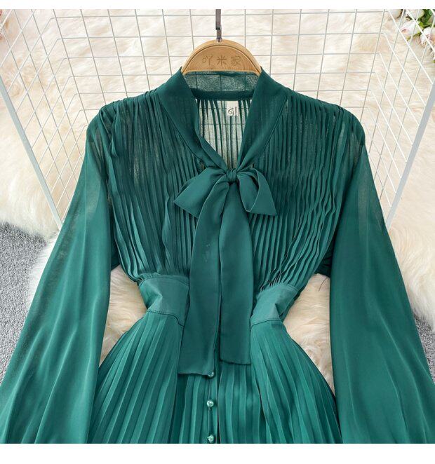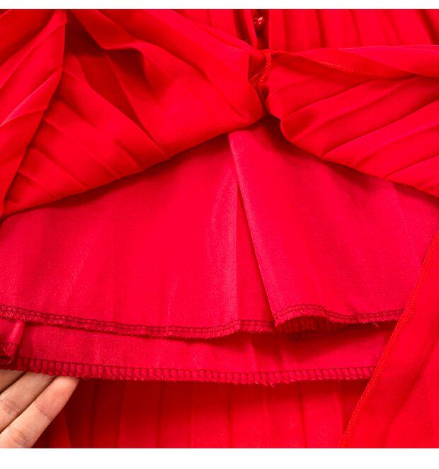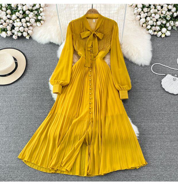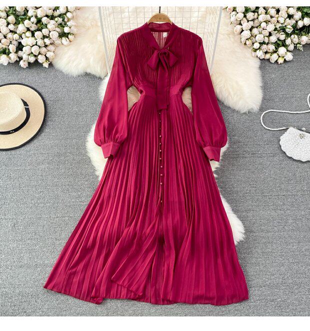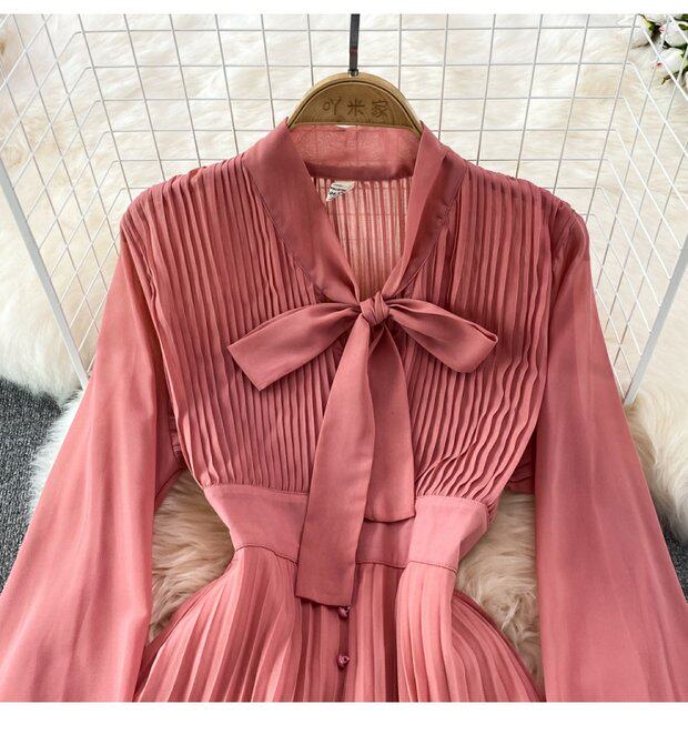 Элегантная галстук-бабочка, весенняя длинная юбка, легкий роскошный стиль, V-образный вырез, А-силуэт, плиссированная юбка
