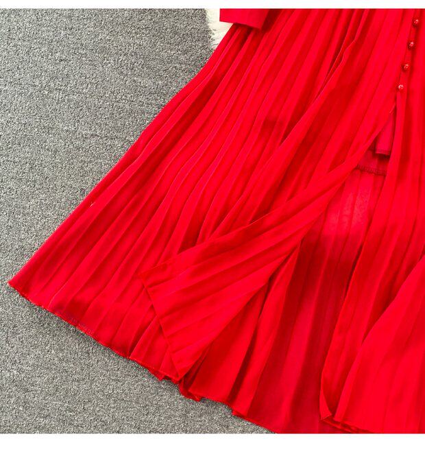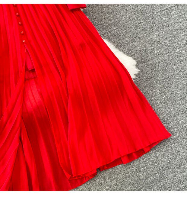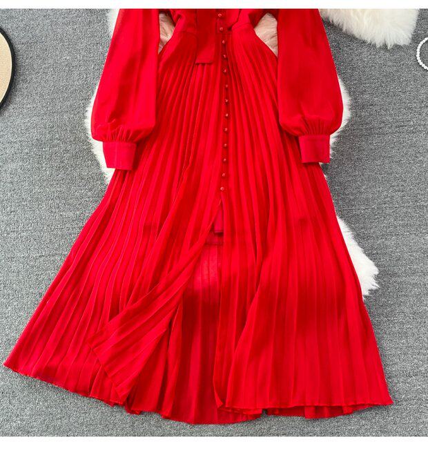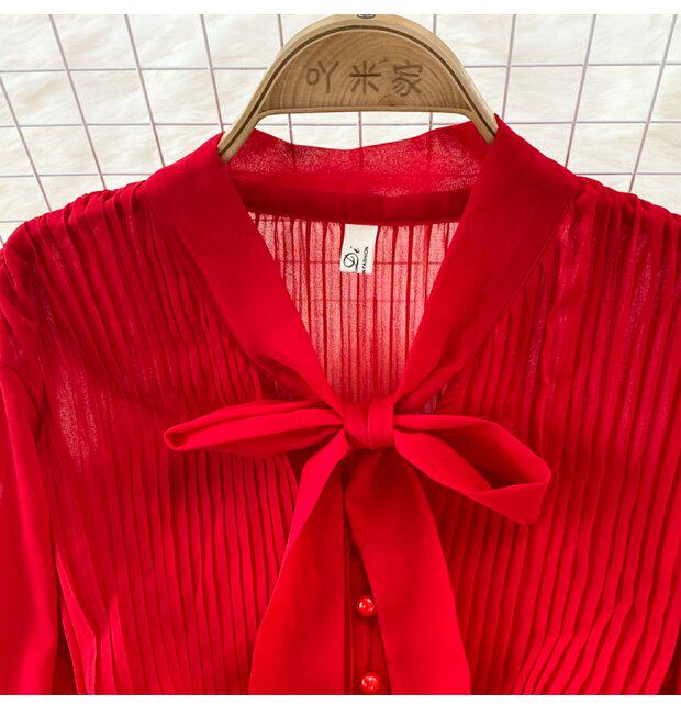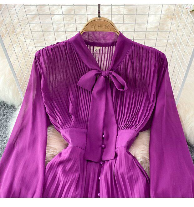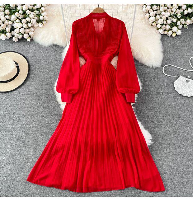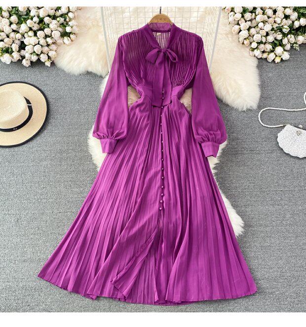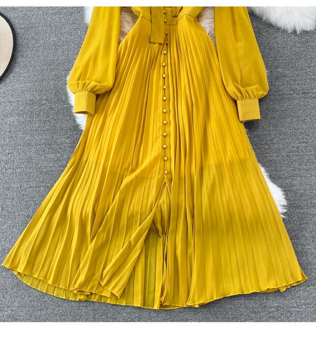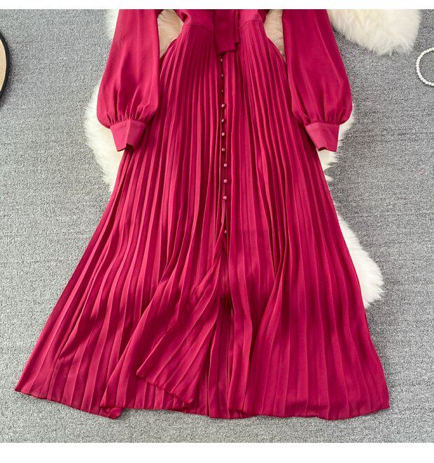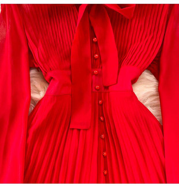 Элегантная галстук-бабочка, весенняя длинная юбка, легкий роскошный стиль, V-образный вырез, А-силуэт, плиссированная юбка