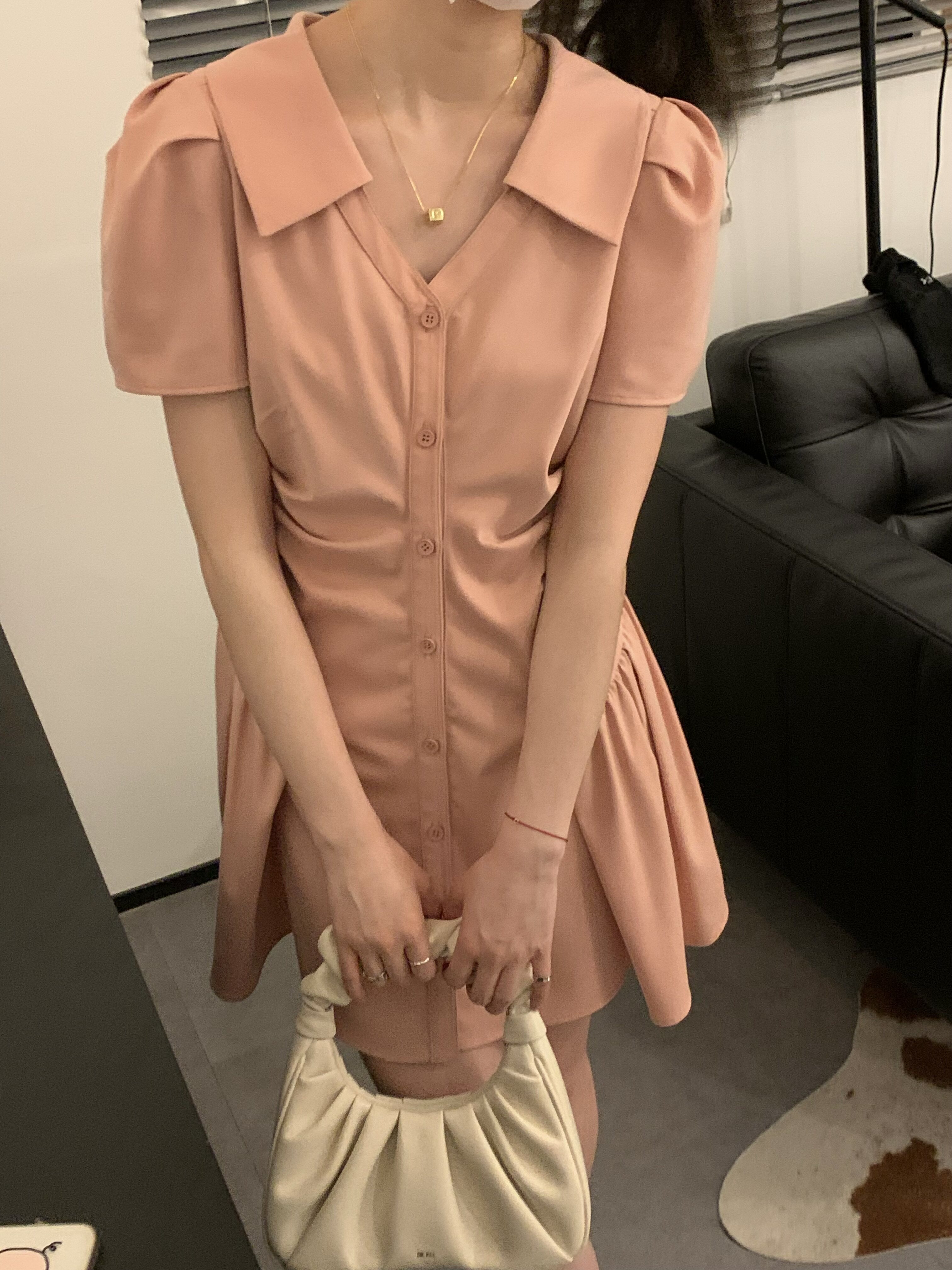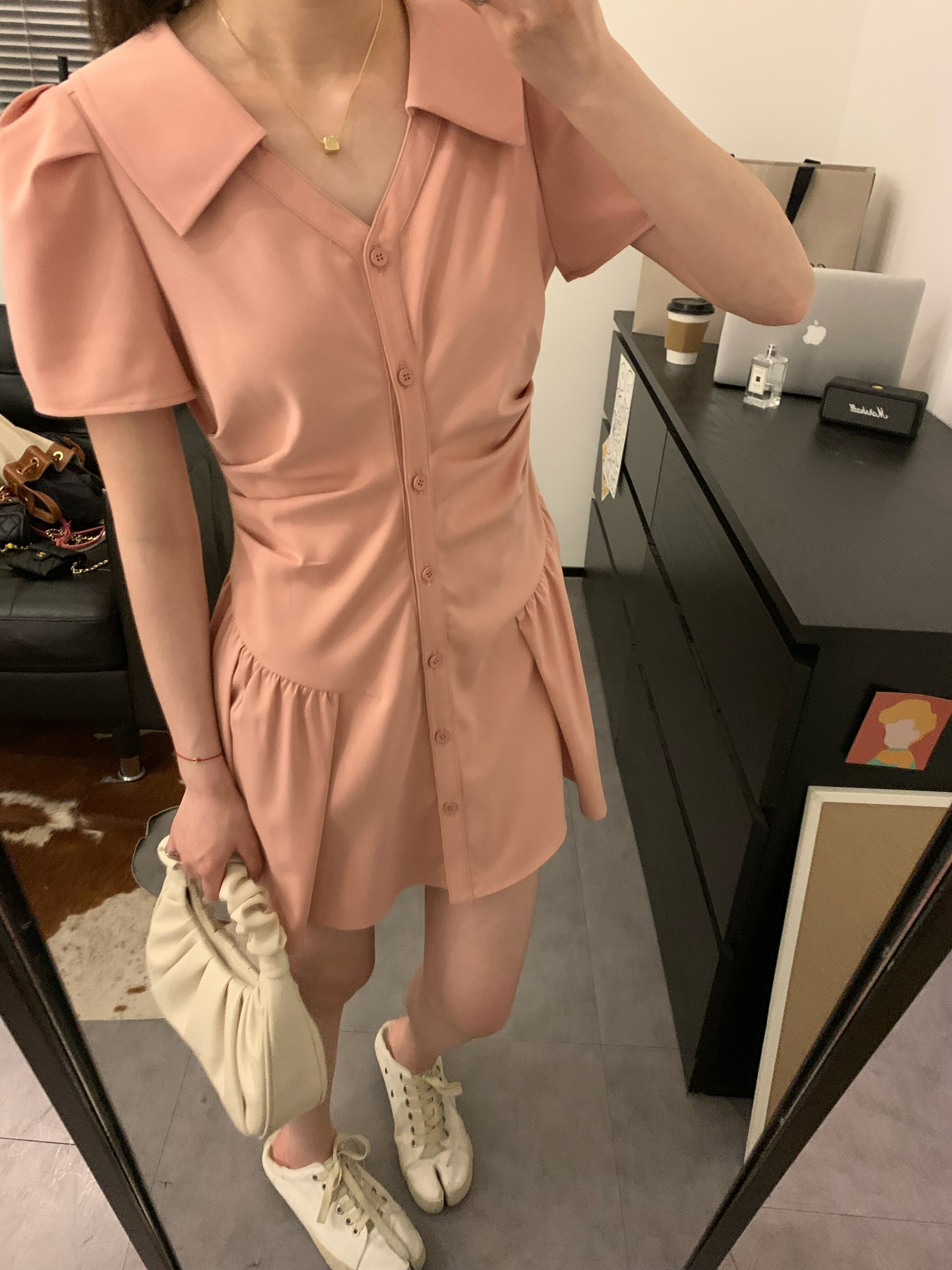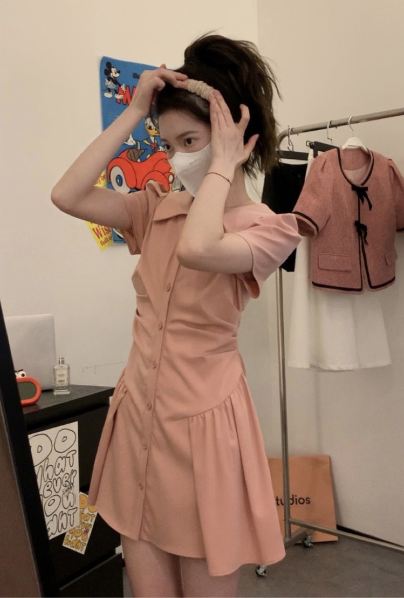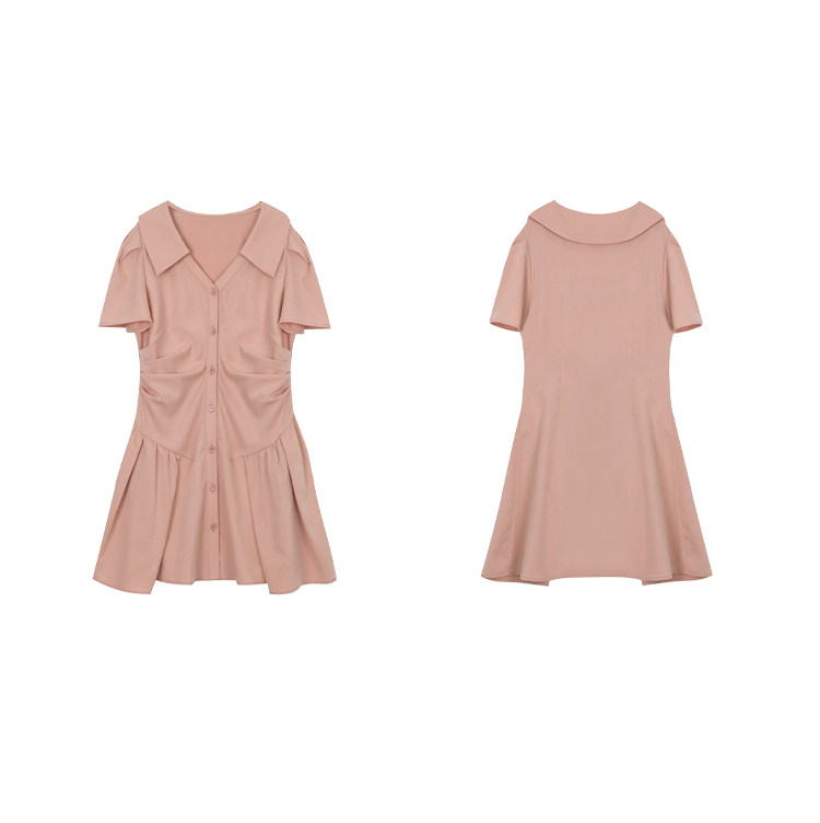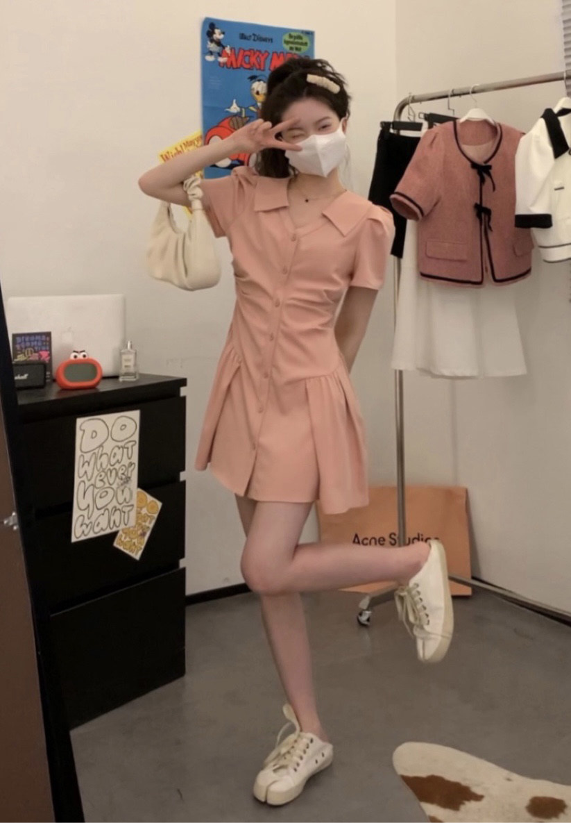 Розовая рубашка, юбка, летнее короткое платье, воротник поло, А-силуэт
